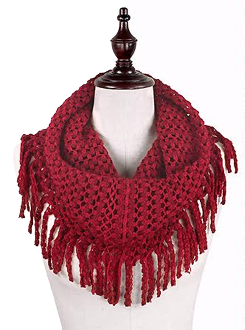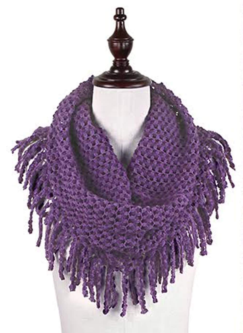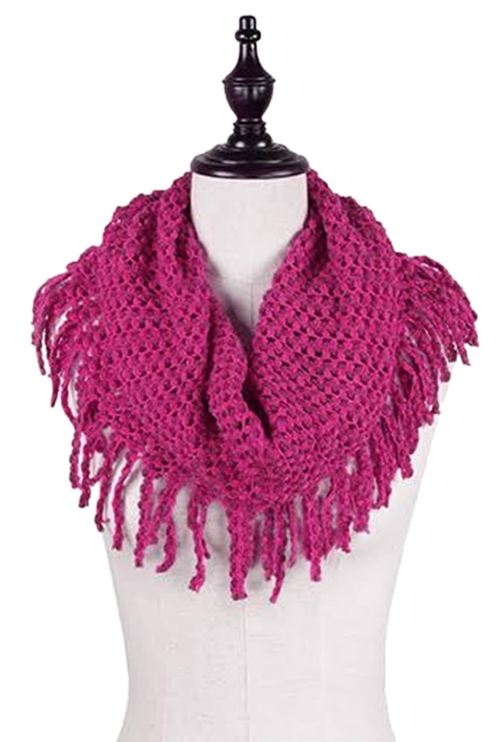 This comfortable scarf features a tube look available in various bold colors. Complete and versatile, this cute scarf is the perfect accessory for any outfit. Approx. Twenty-four inches in width and 27 inches in length (including fringe), one size fits all! Made of acrylic. Care: Machine wash.