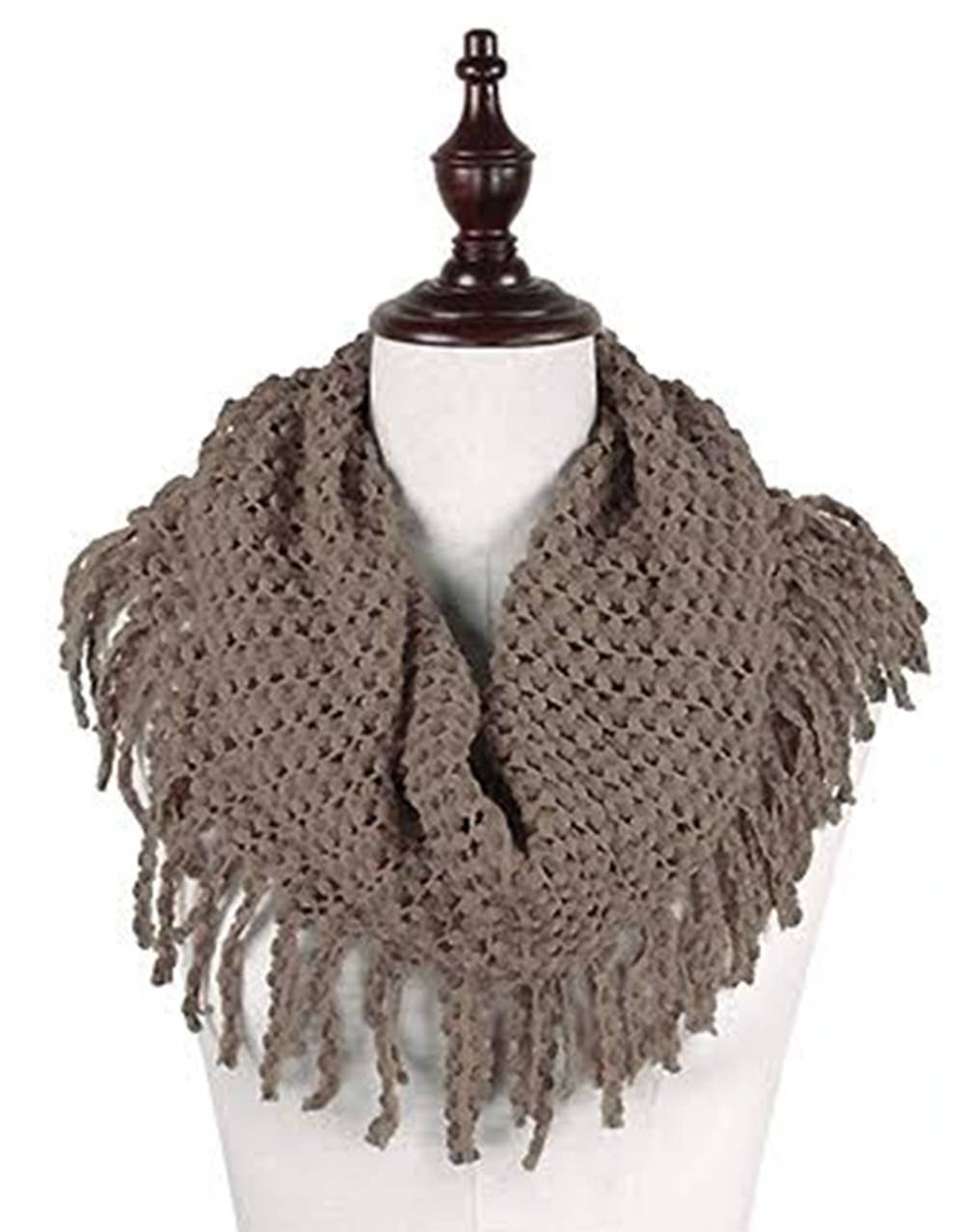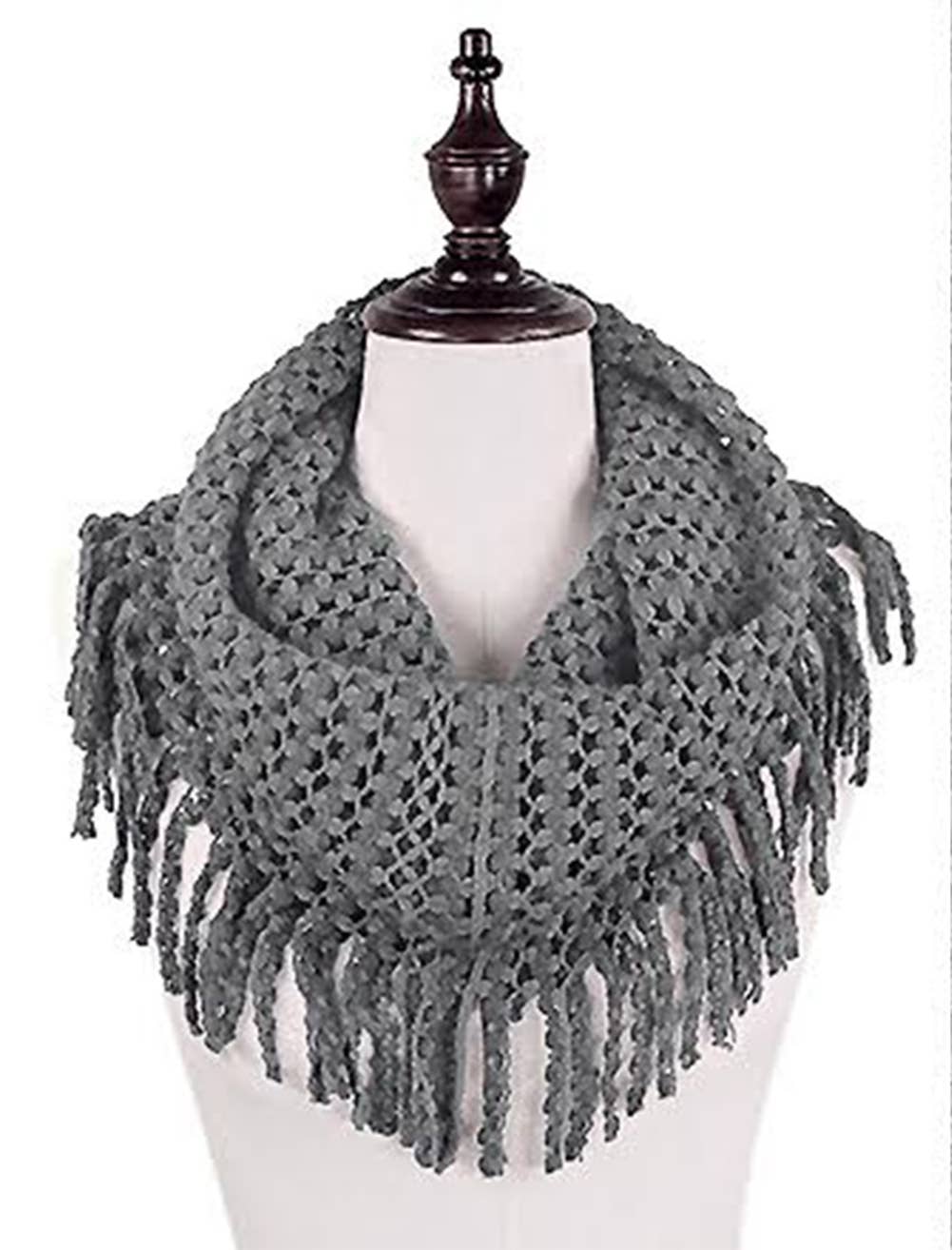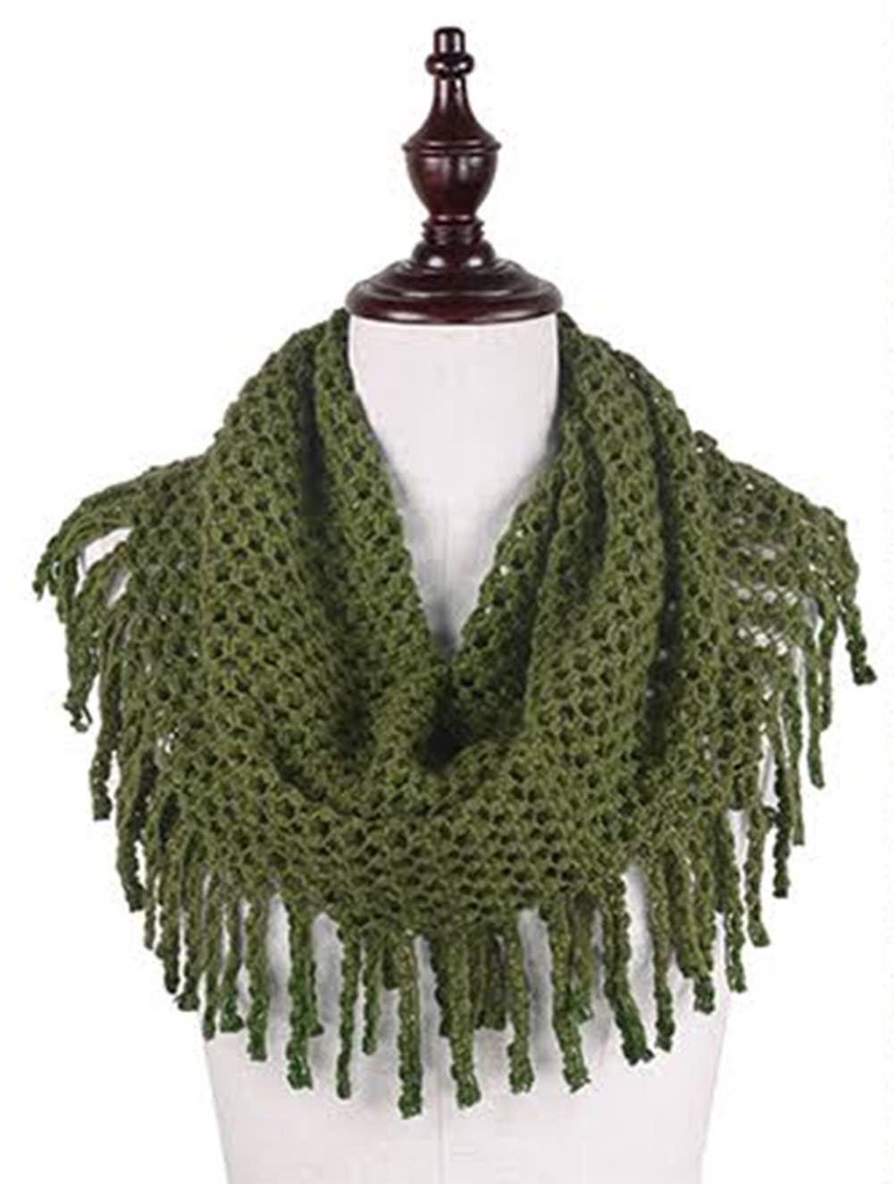 This comfortable scarf features a tube look available in various bold colors. Complete and versatile, this cute scarf is the perfect accessory for any outfit. Approx. Twenty-four inches in width and 27 inches in length (including fringe), one size fits all! Made of acrylic. Care: Machine wash.