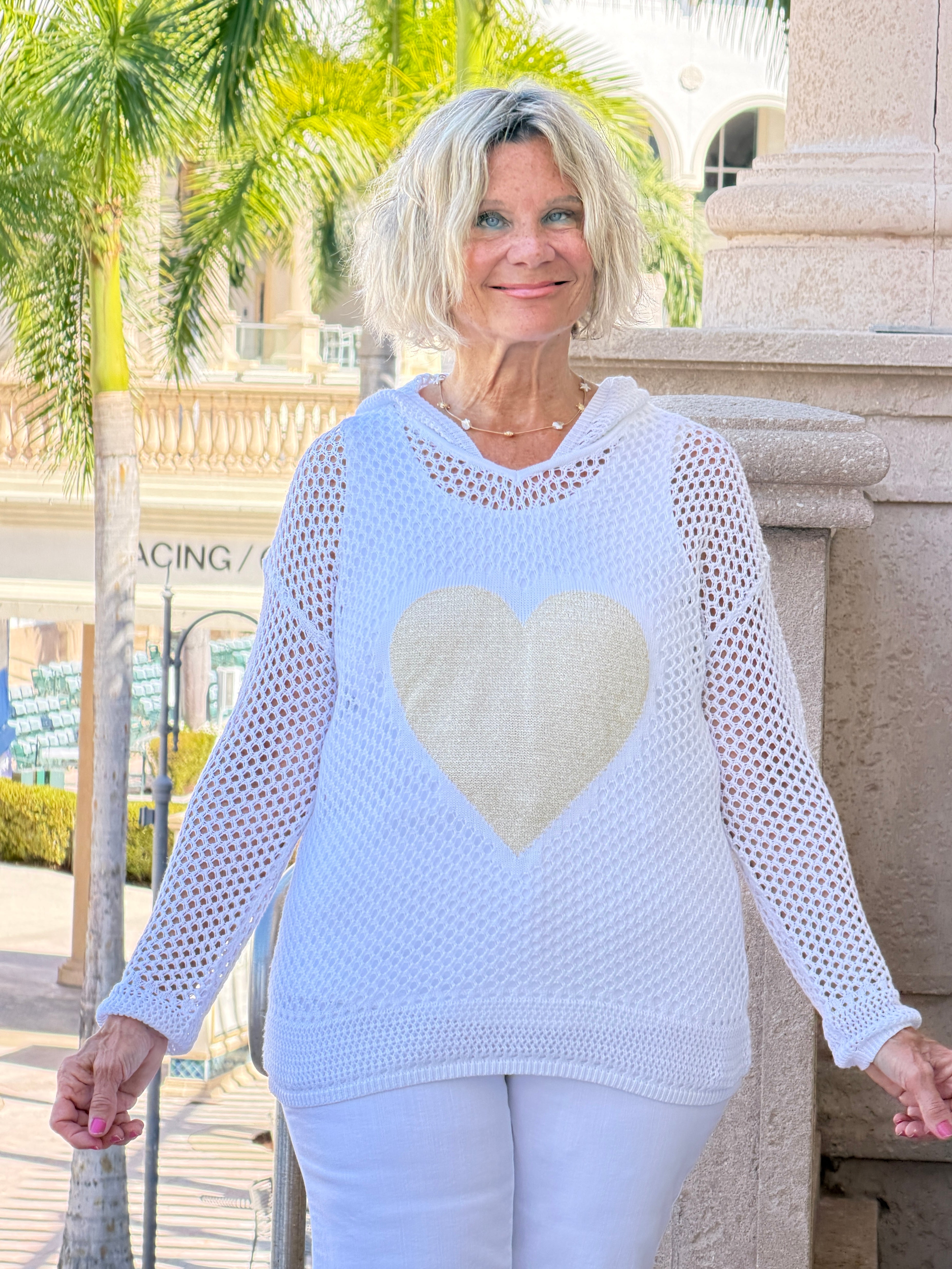 Long Sleeve Fishnet Hoodie Sweater With Lurex Heart