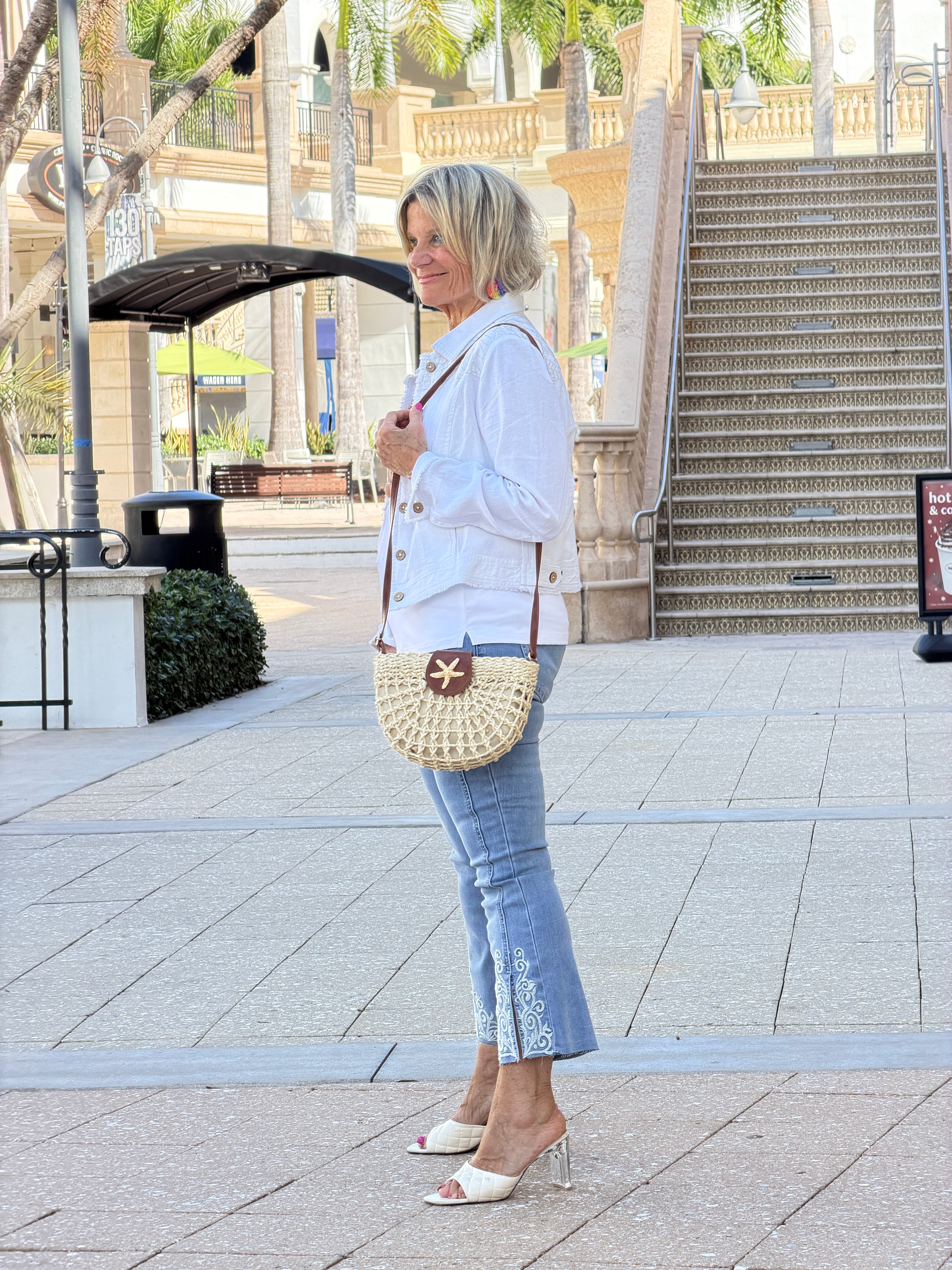 he Scroll detail at the bottom of these crop jeans sets the stage for wardrobe magic. Our exclusive cotton and Tencel blend creates a soft fabric with stretch that will sculpt your curves for a flattering silhouette.