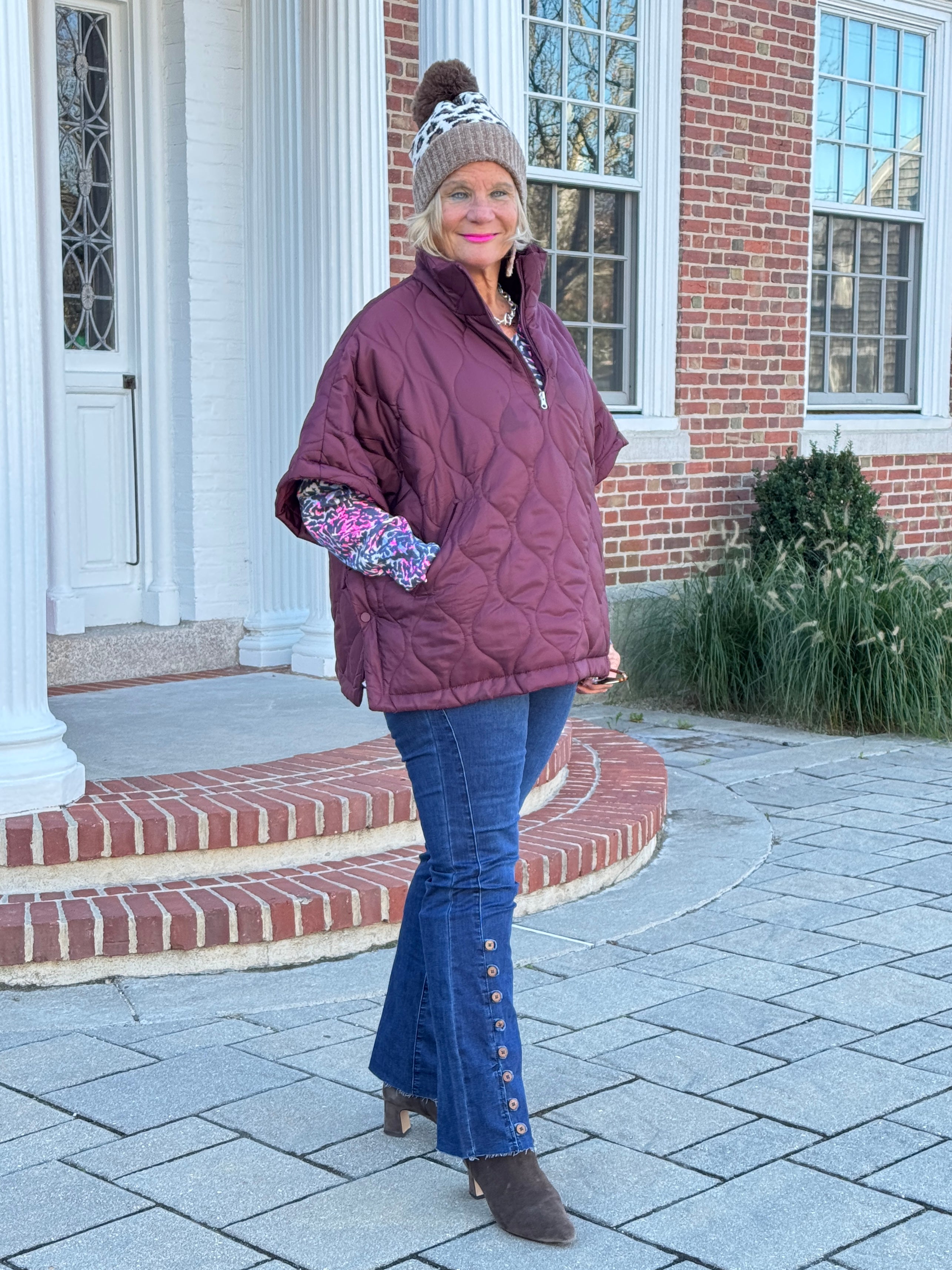 • Stay cozy and stylish with this quilted pullover jacket featuring short sleeves, a high zip neck, and roomy pockets. Perfect for layering in cooler weather, it combines warmth with a modern silhouette for everyday wear, travel, or casual outings. Relaxed fit for comfort.