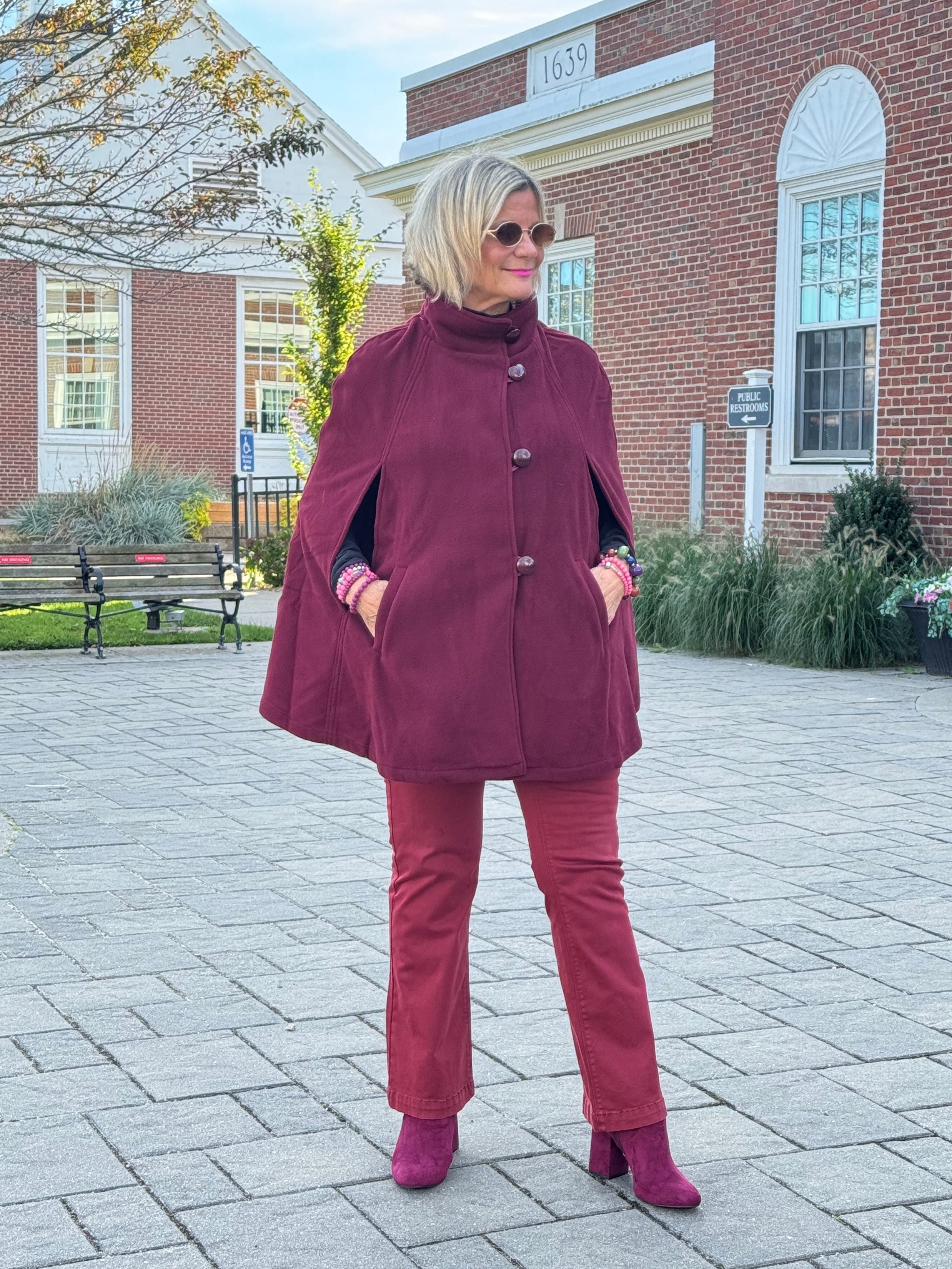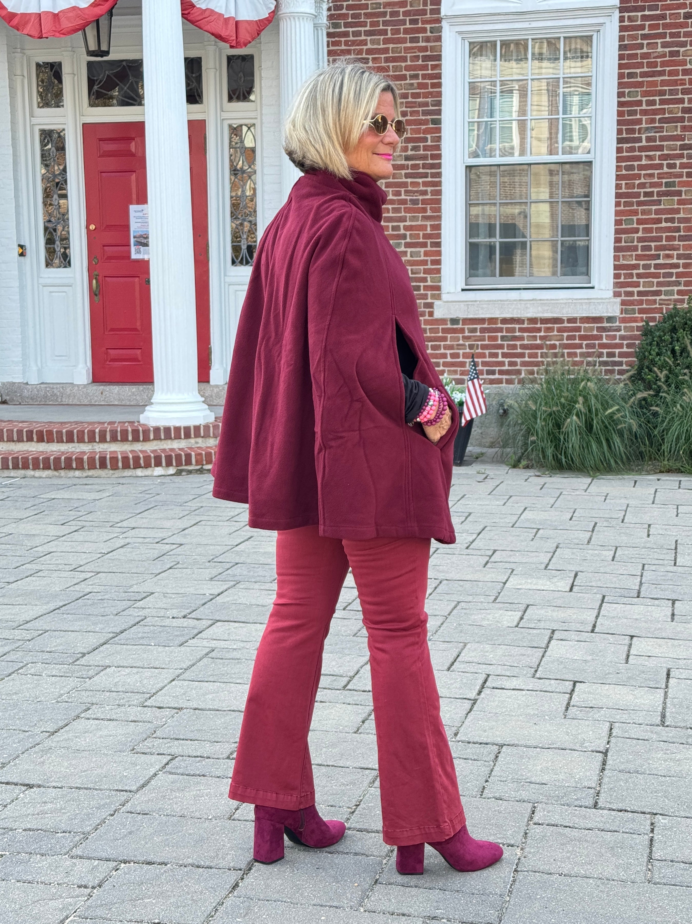 FASHIONABLE womens fleece PONCHO with high collar for Fall and early Winter SHORT cover up - NO SLEEVES, with OPEN SIDES to accommodate different body sizes RELAXED GENEROUS FIT for easy cold weather layering. Not for petites. Model is 5 feet 6.5 inches DESIGNER inspired and a cozy must have in any wardrobe BUTTON CLOSURE to keep you warm. Exclusive Luxing Look guarantee only when bought through Accessory Necessary Fabric type100% Polyester Care instructionsHand wash or machine wash cold with like colors recommended, lay flat to dry OriginImporte