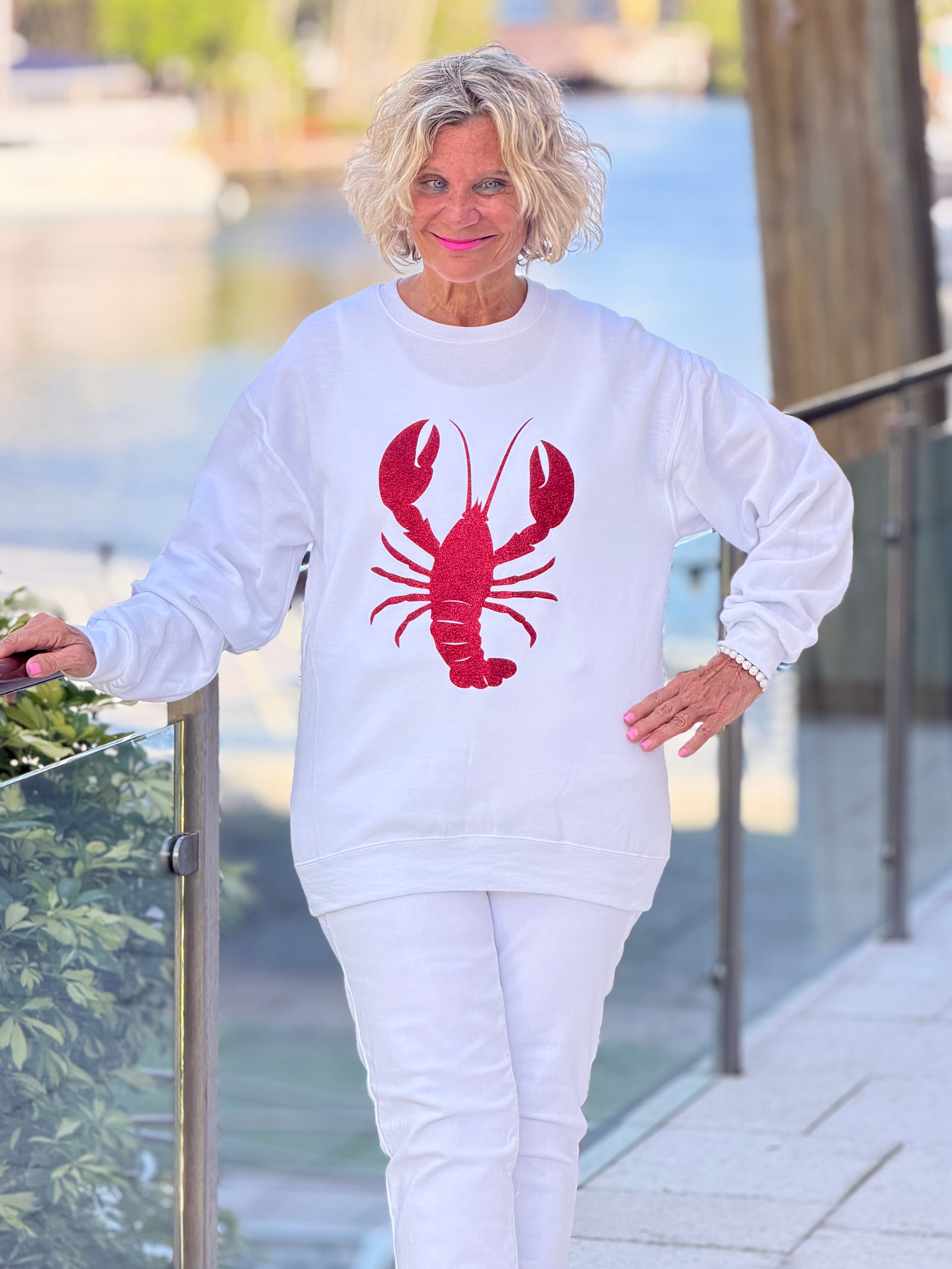 Glitter RED LOBSTER Sweatshirt Beach Outfit -navy anchor This COZY & COMFY sweatshirt is an adult unisex crewneck made from a cotton/poly blend. There are no itchy side seams, it is super soft