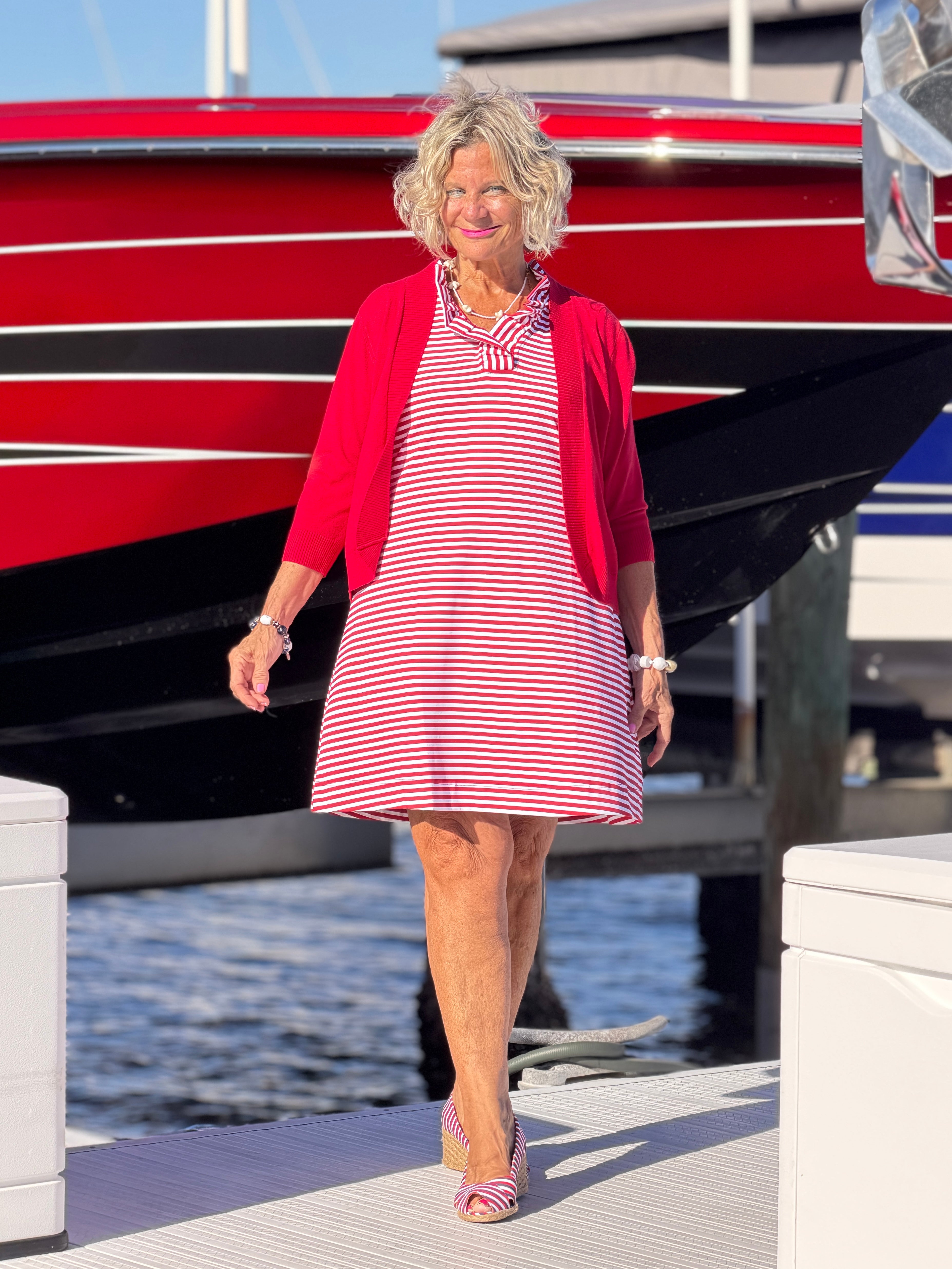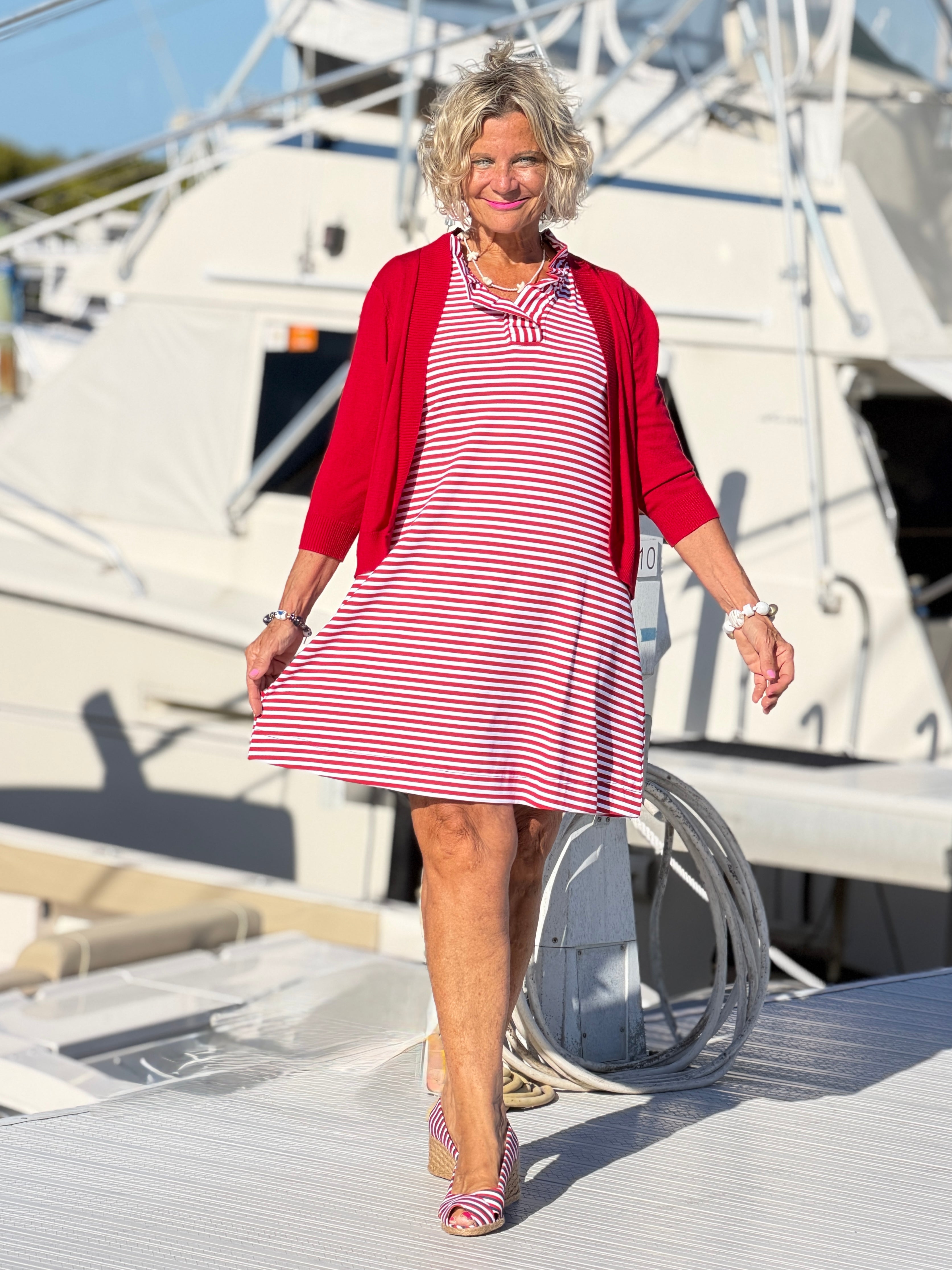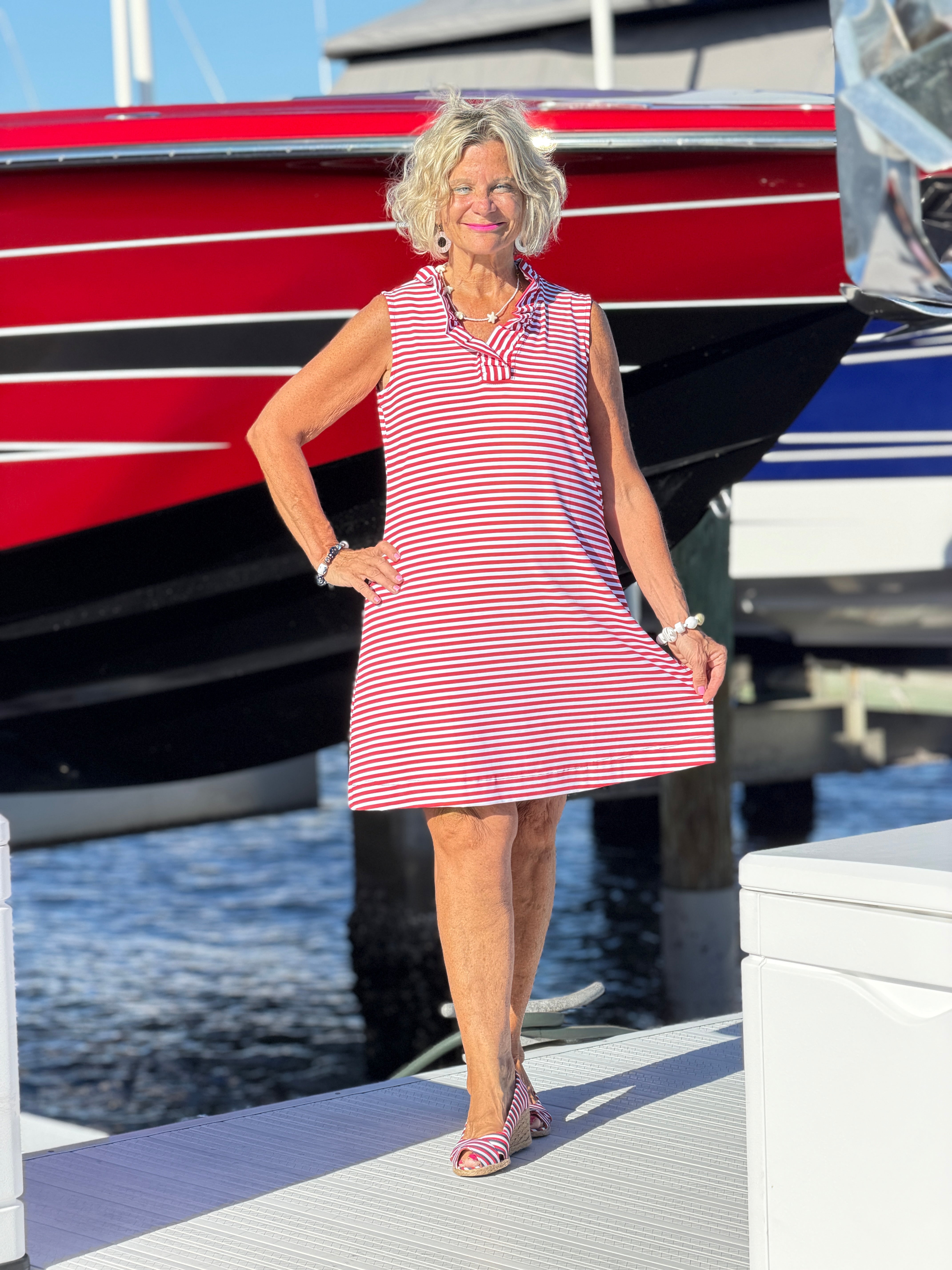 REGATTA RED STRIPE RUFFLE DRESS