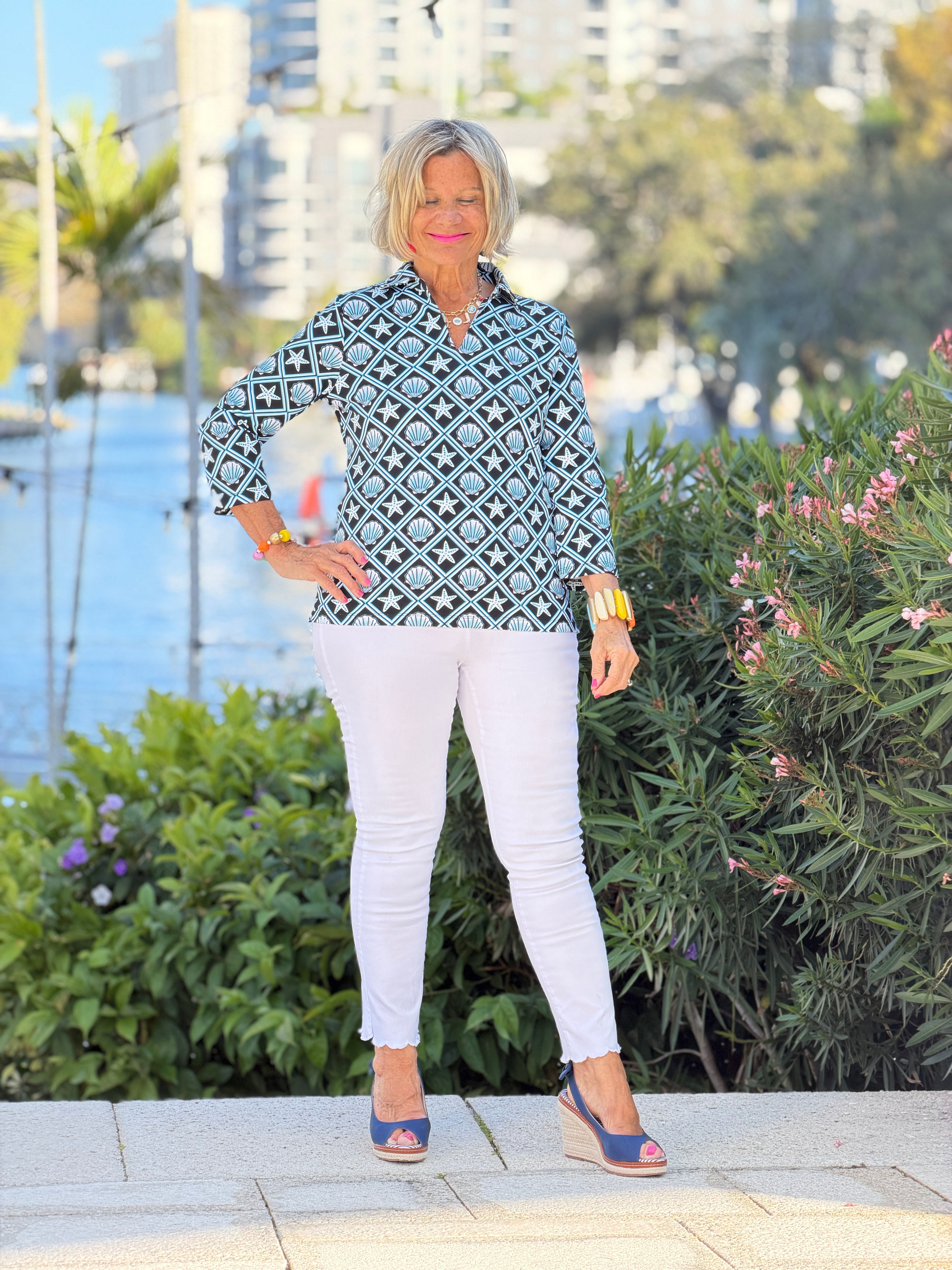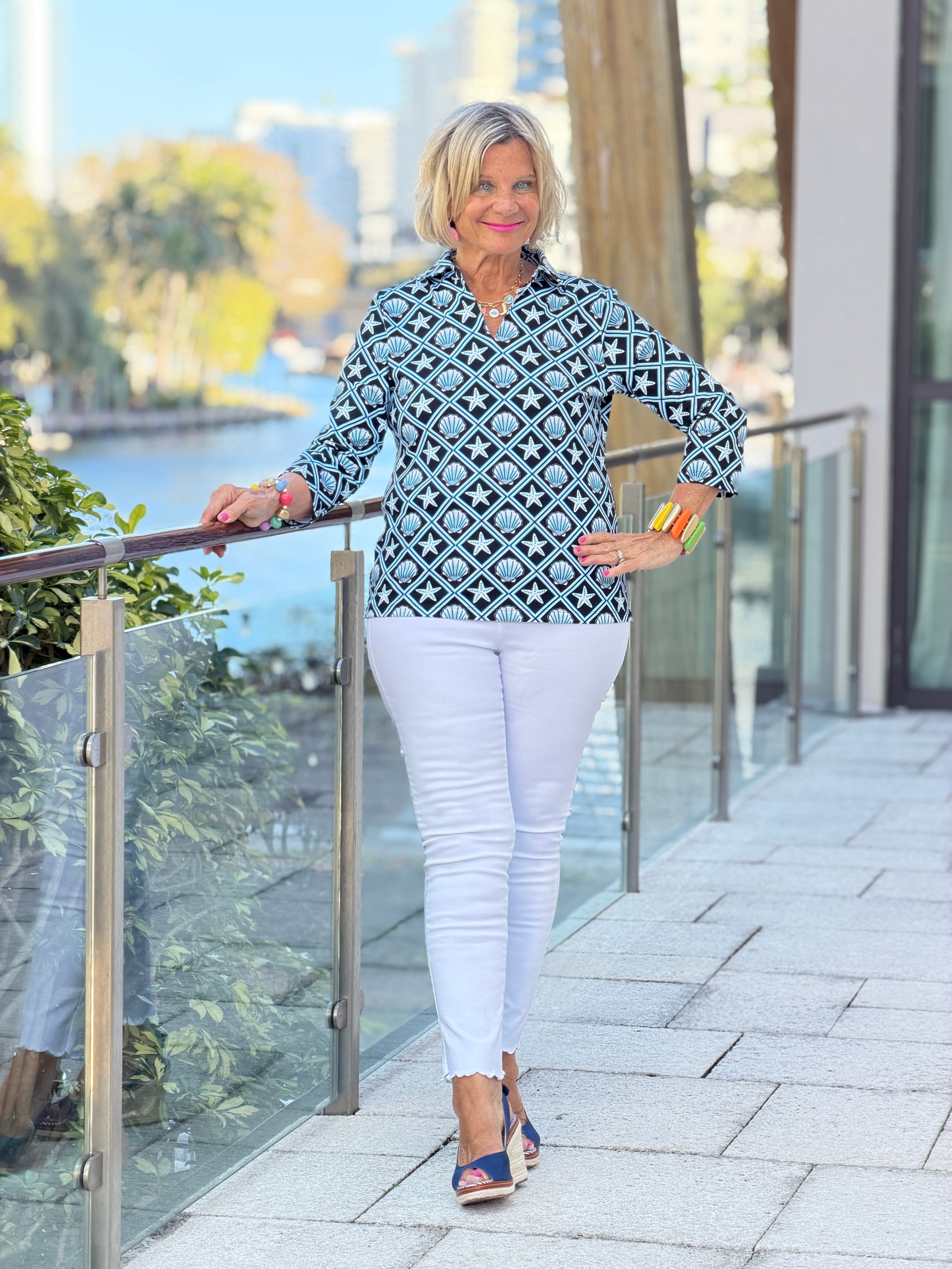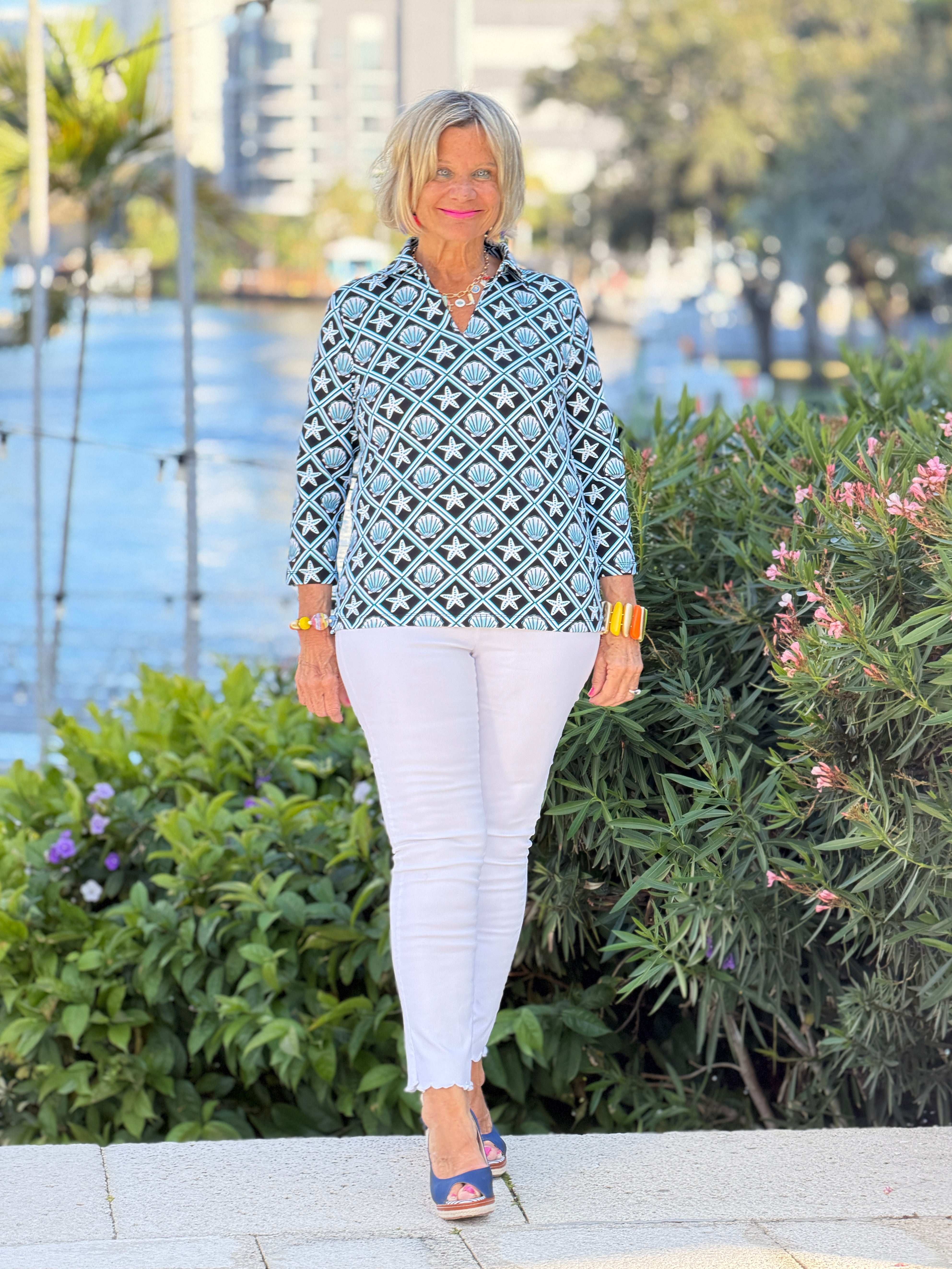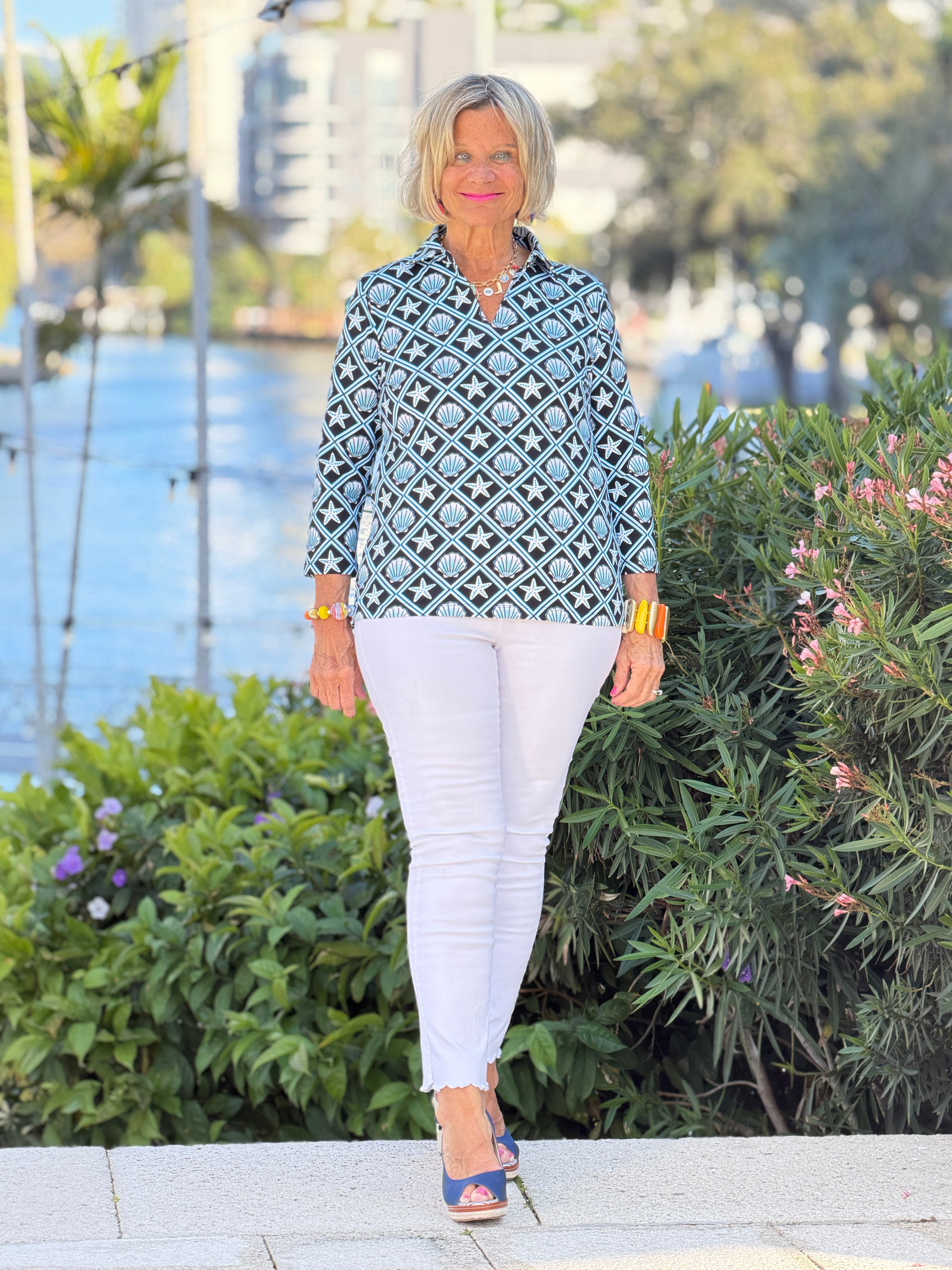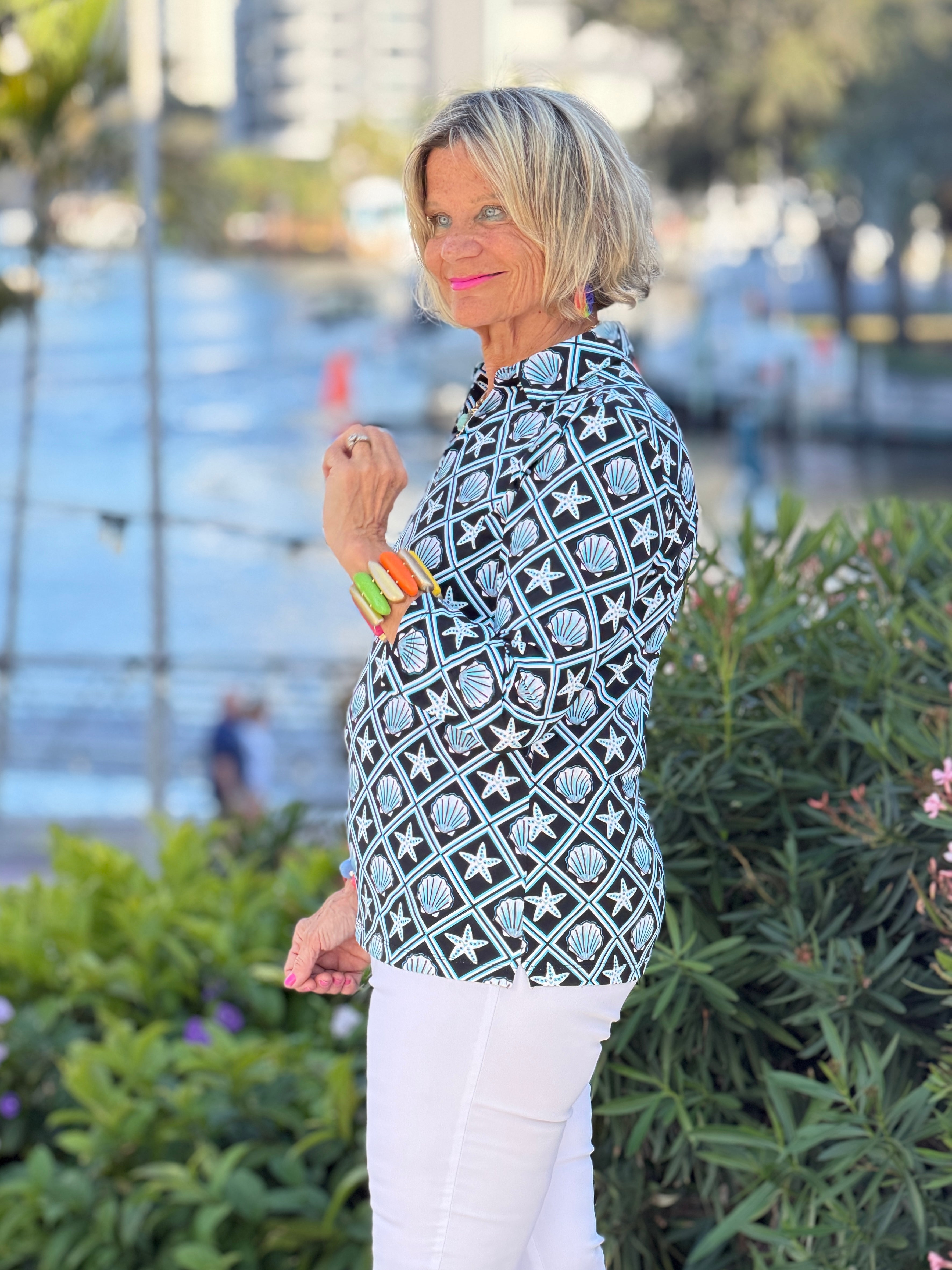 LULU B OCEAN TREASURES COLLAR SLEEVE TOP