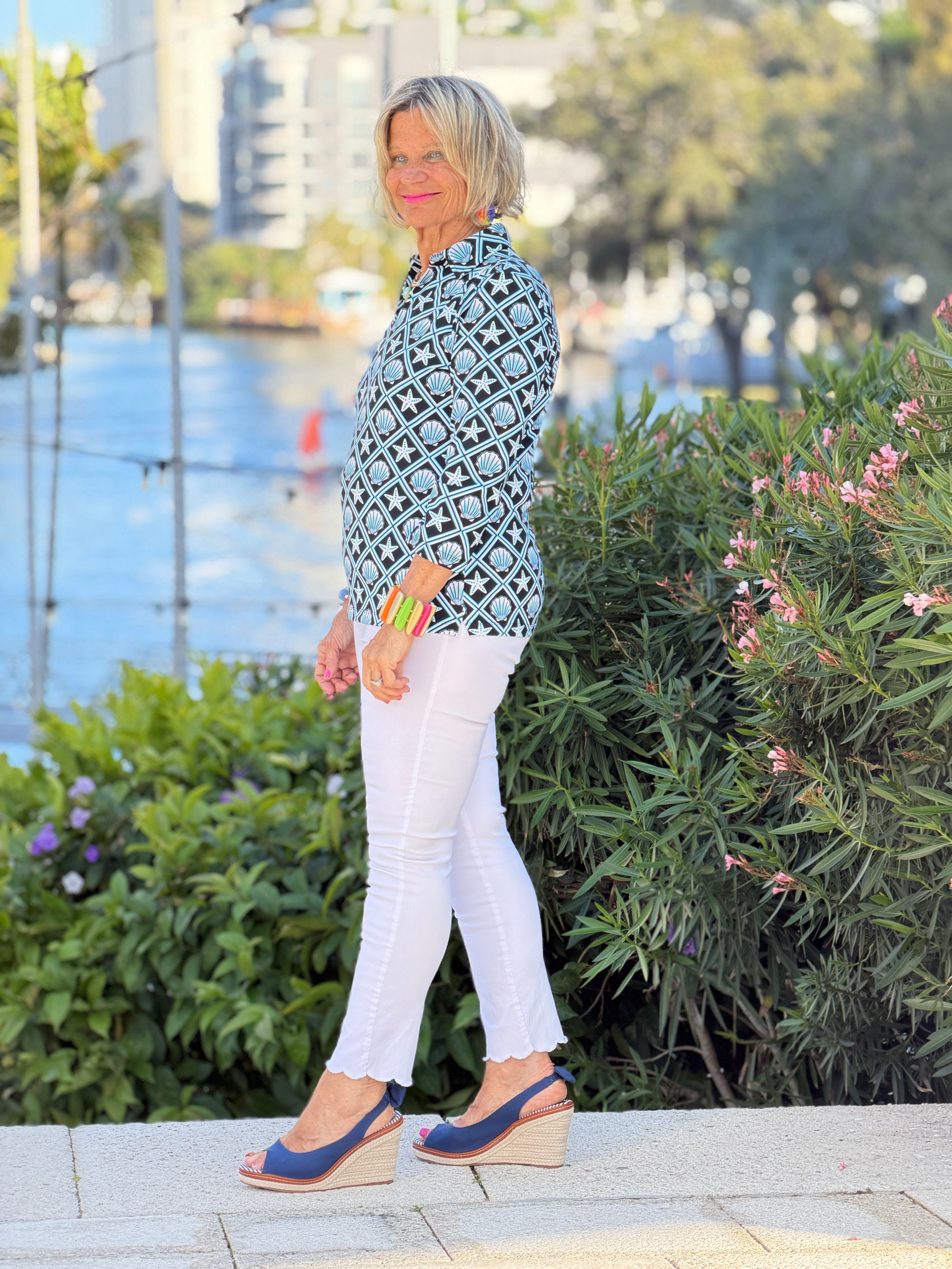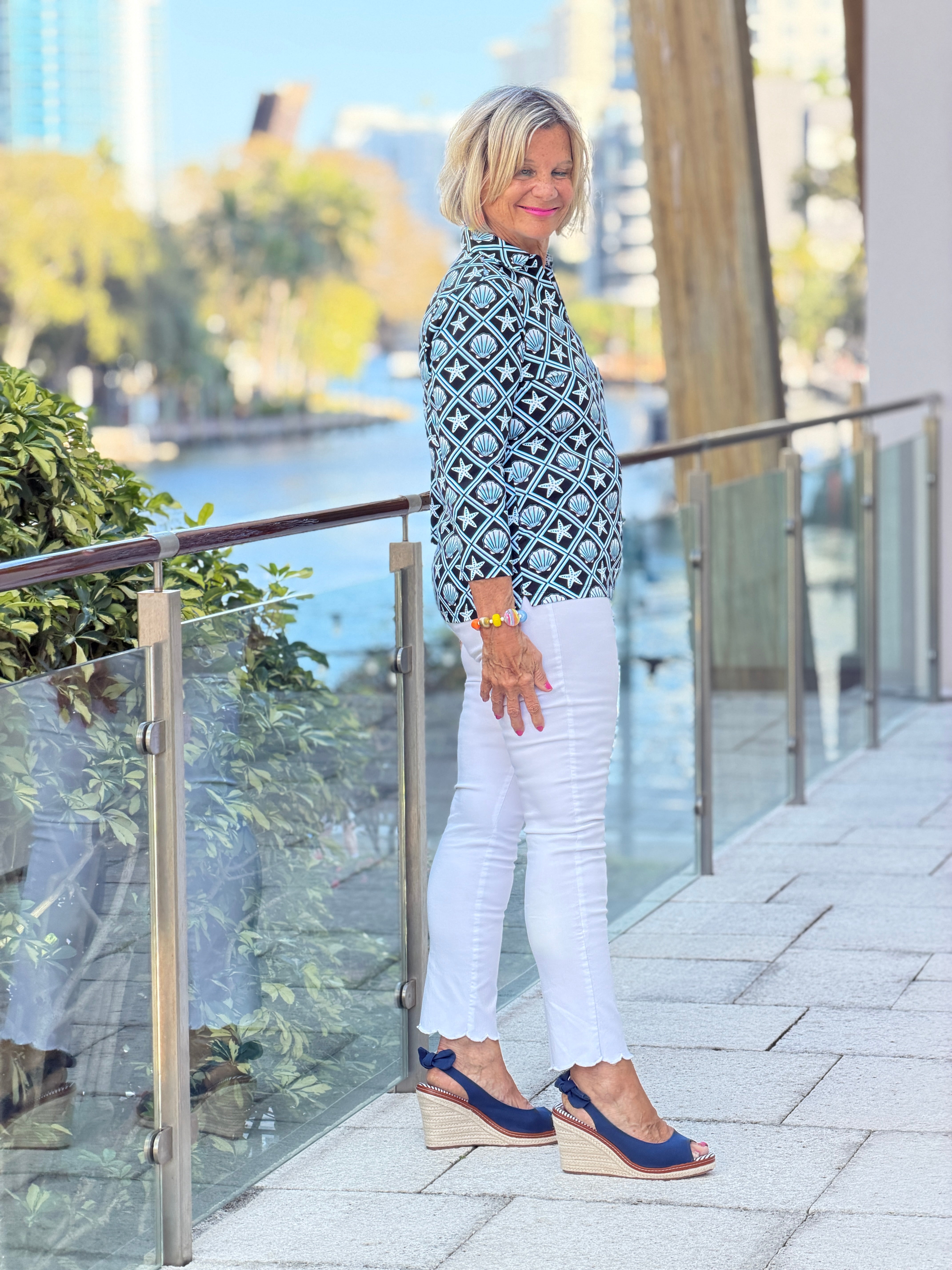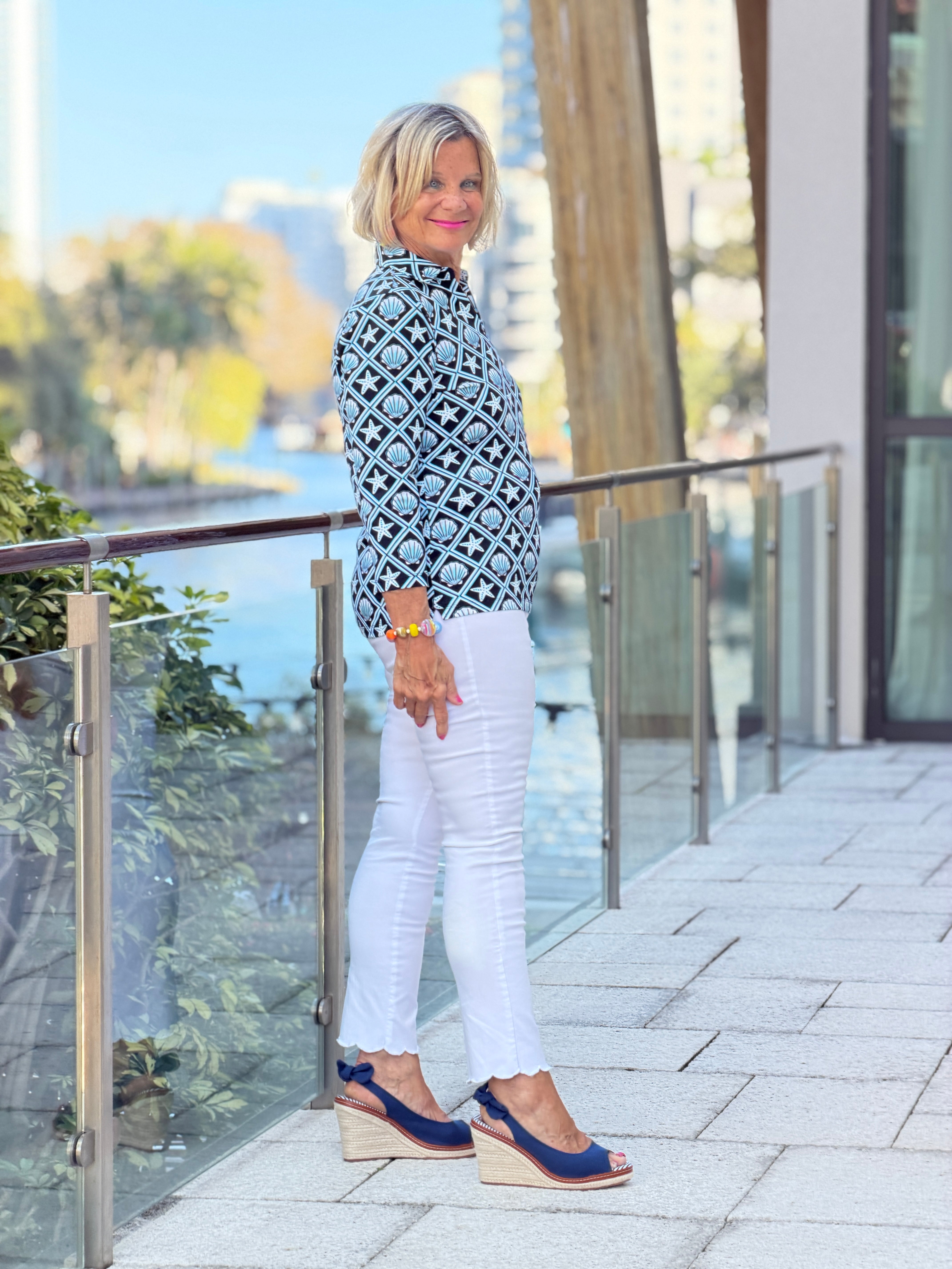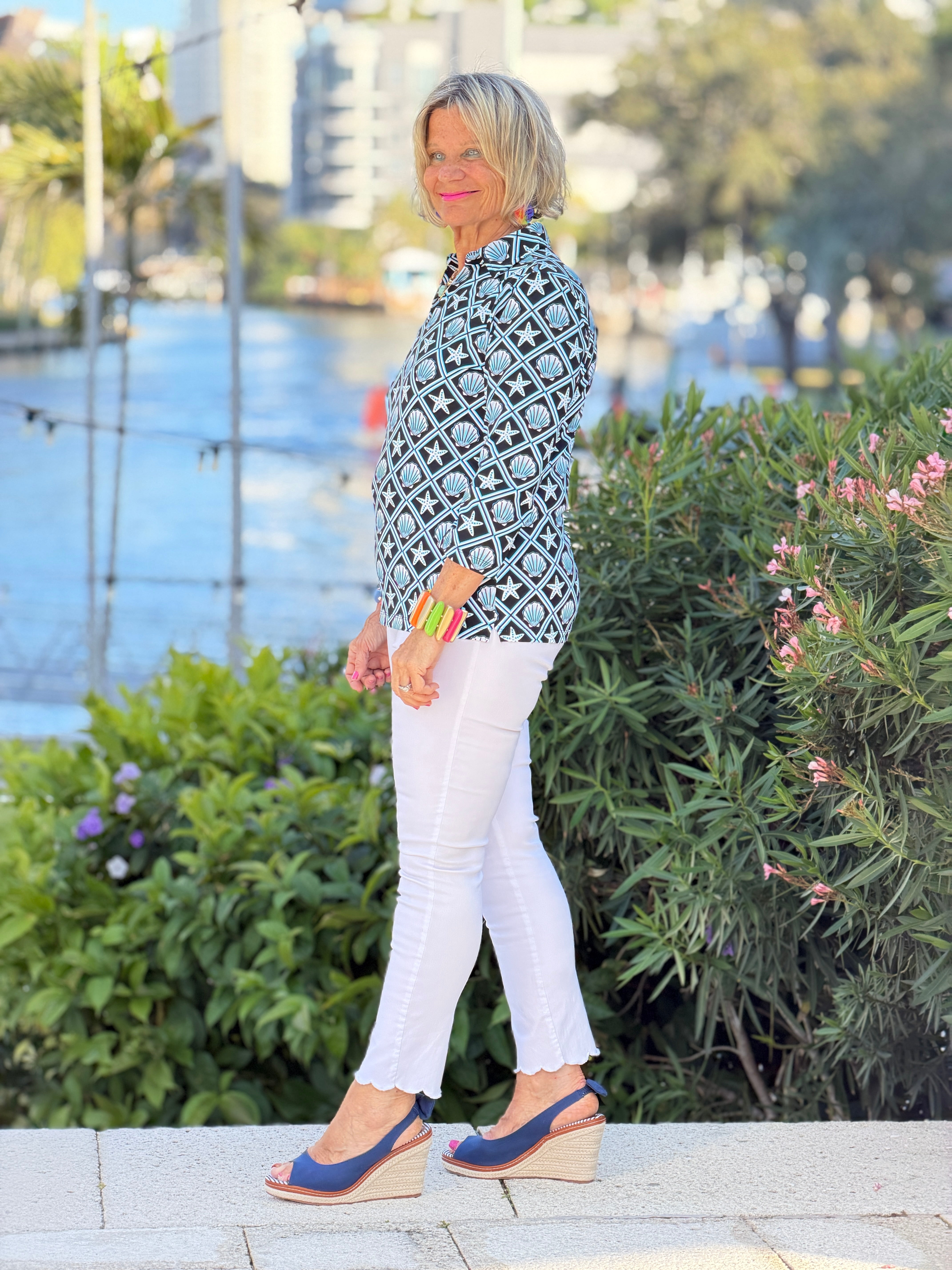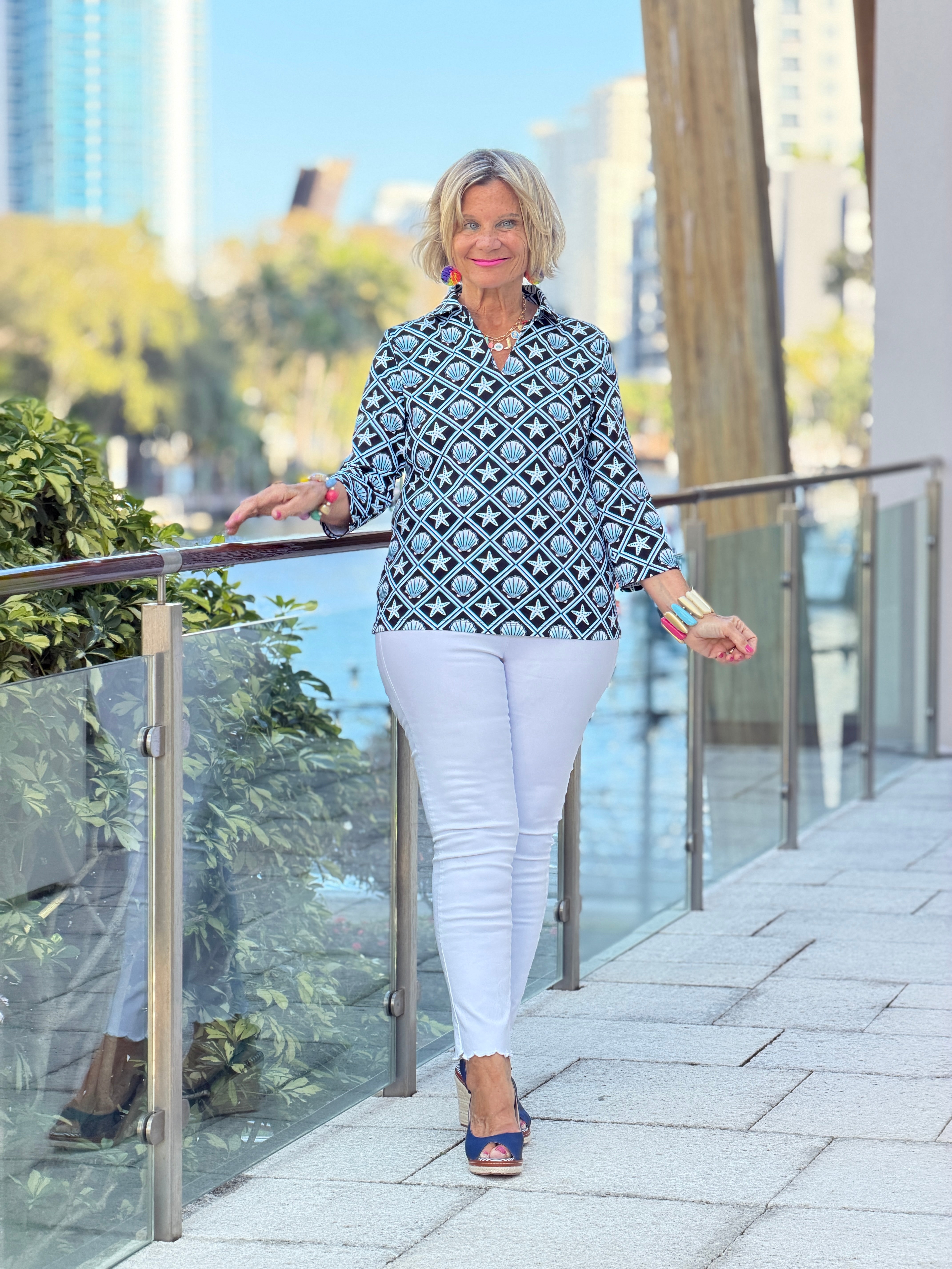 LULU B OCEAN TREASURES COLLAR SLEEVE TOP