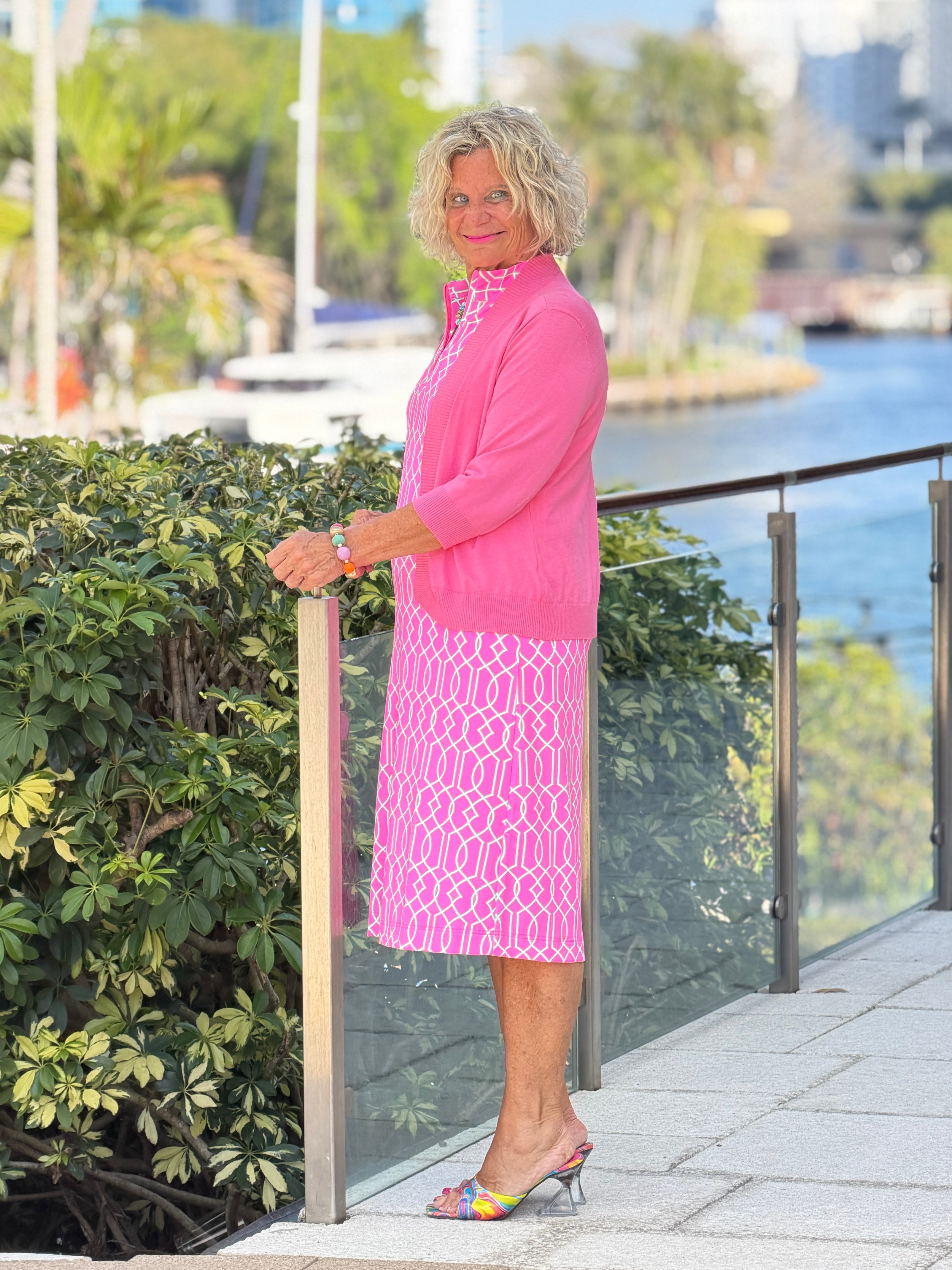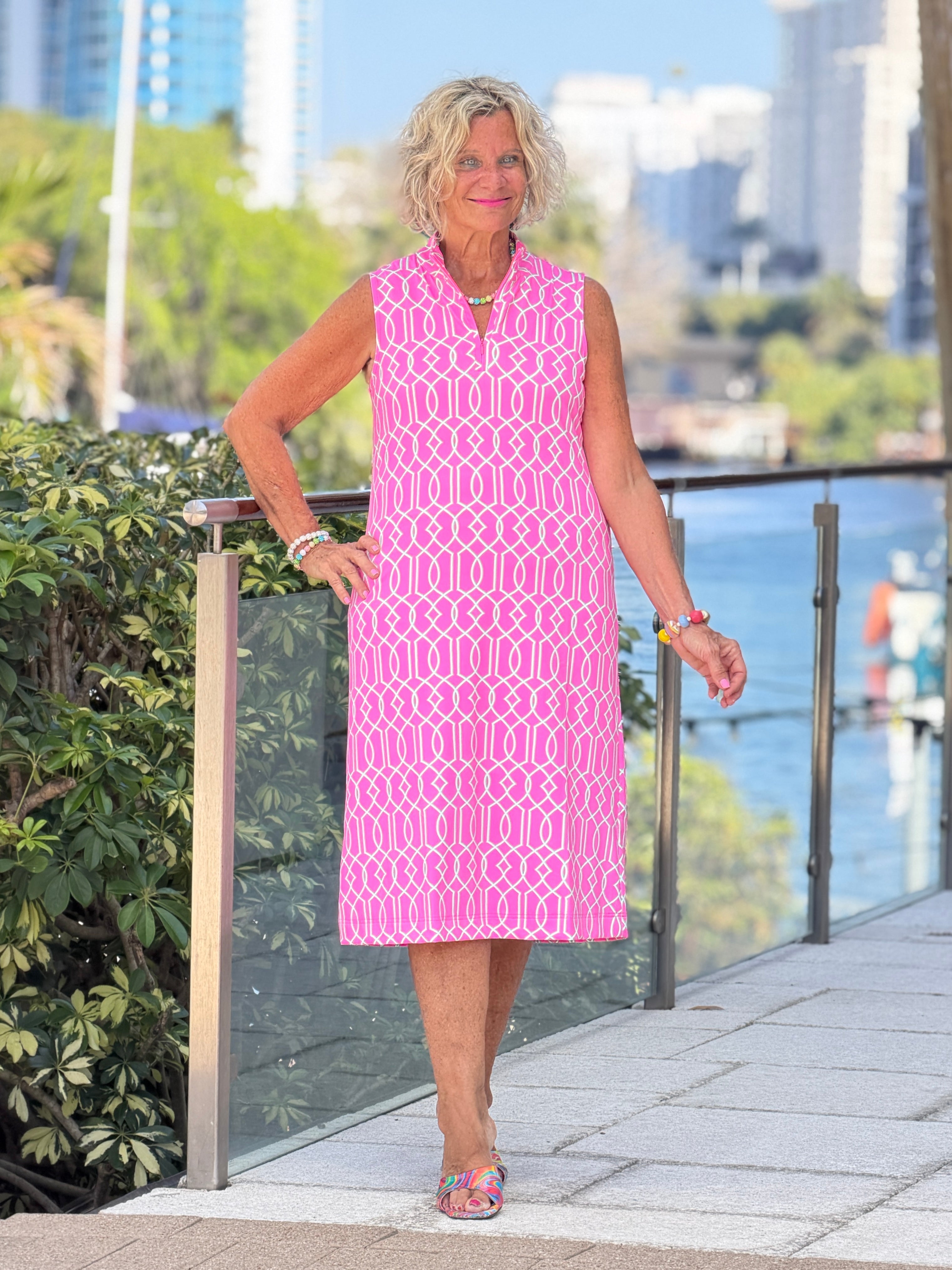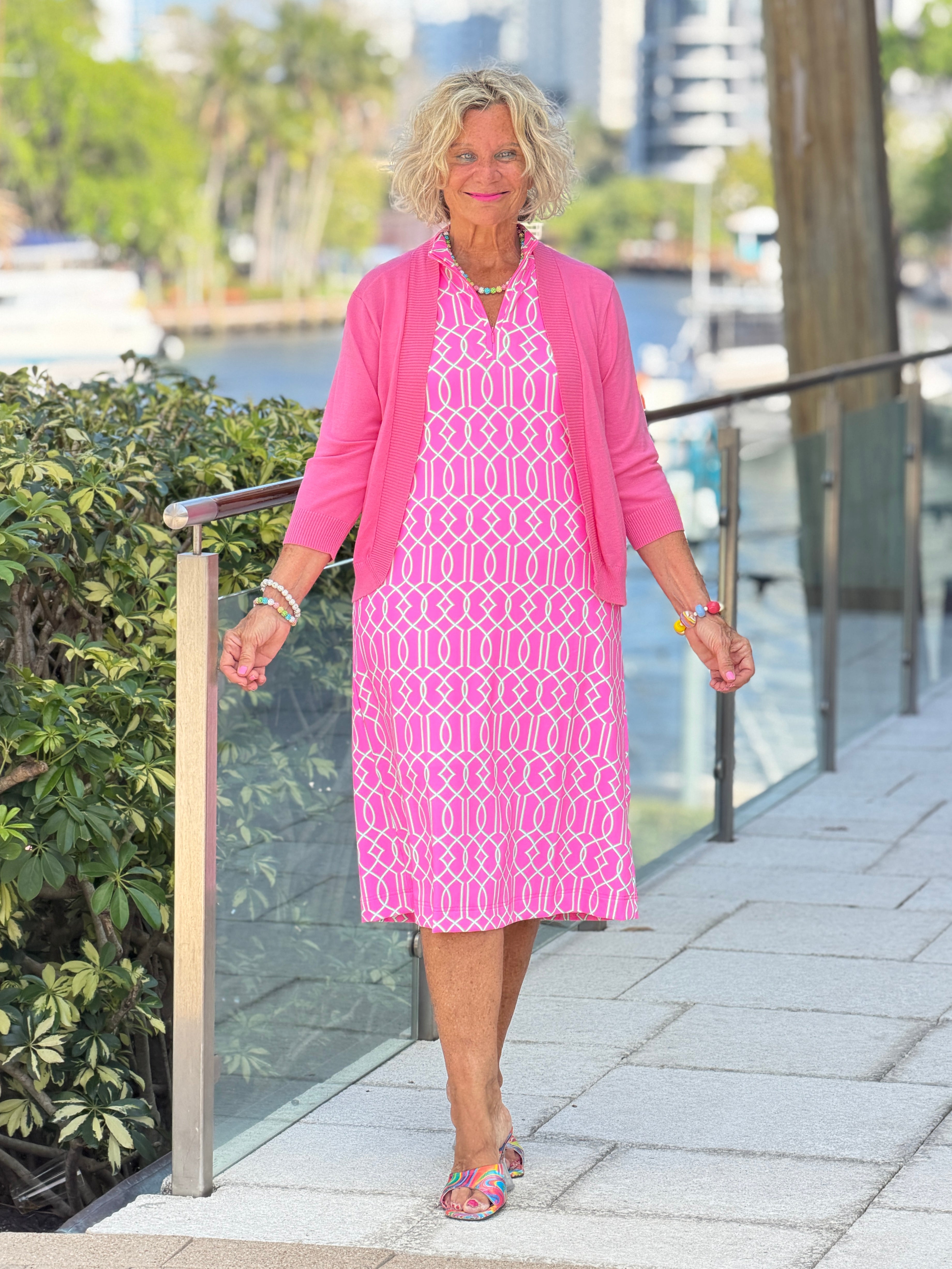 LULU B PALM BEACH LATTICE HALF ZIPPER MIDDY DRESS