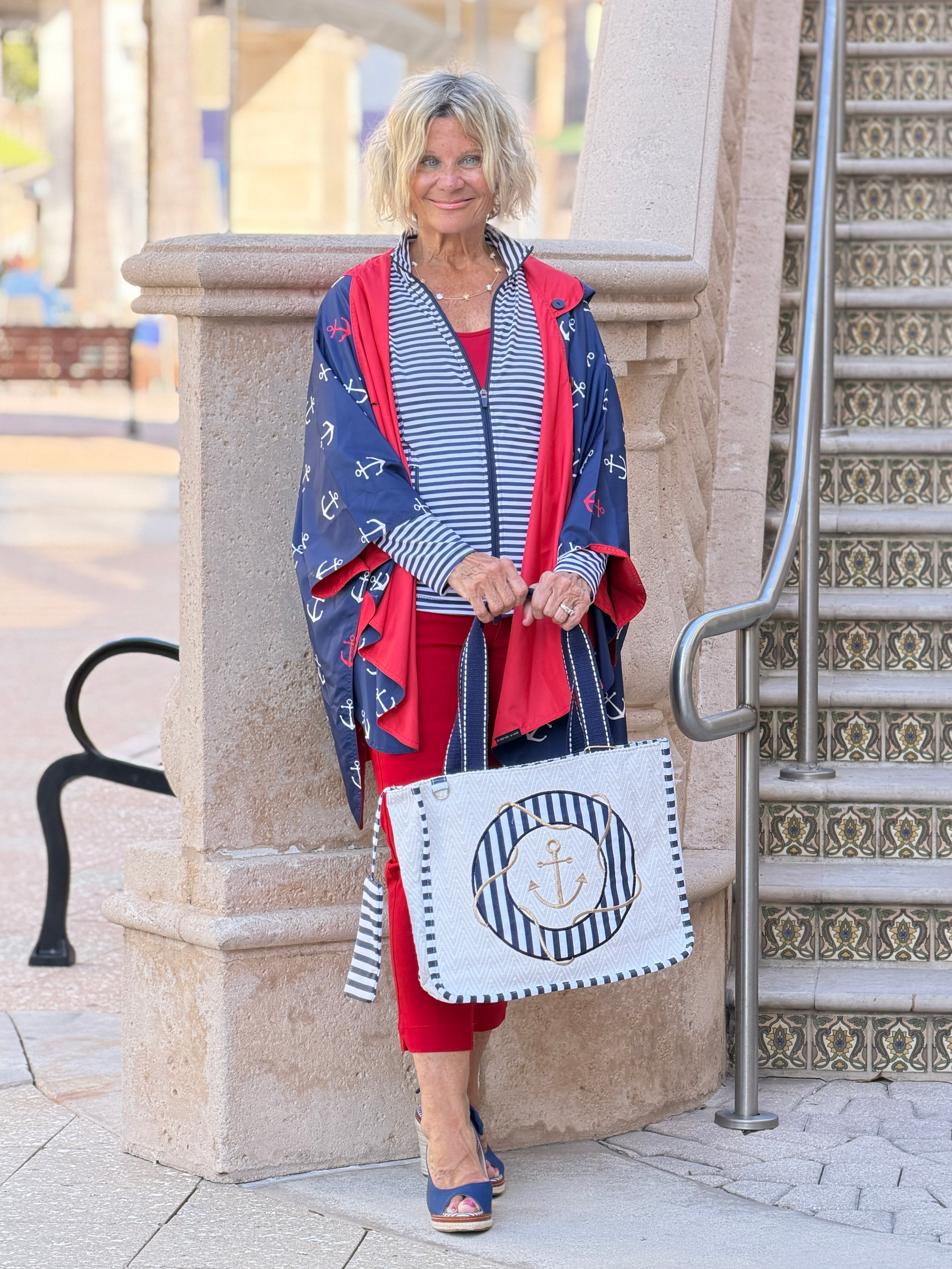Anchor, Gold Anchor Shoulder Tote| SNS6940 | Spot Clean Only | Made in India | Size: 15"x 4.75"x 12.5" Coin Purse: 7"x 4"