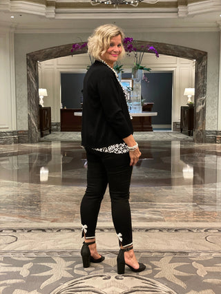 - Rhinestone and pearl embellishment near hem BOW TIE