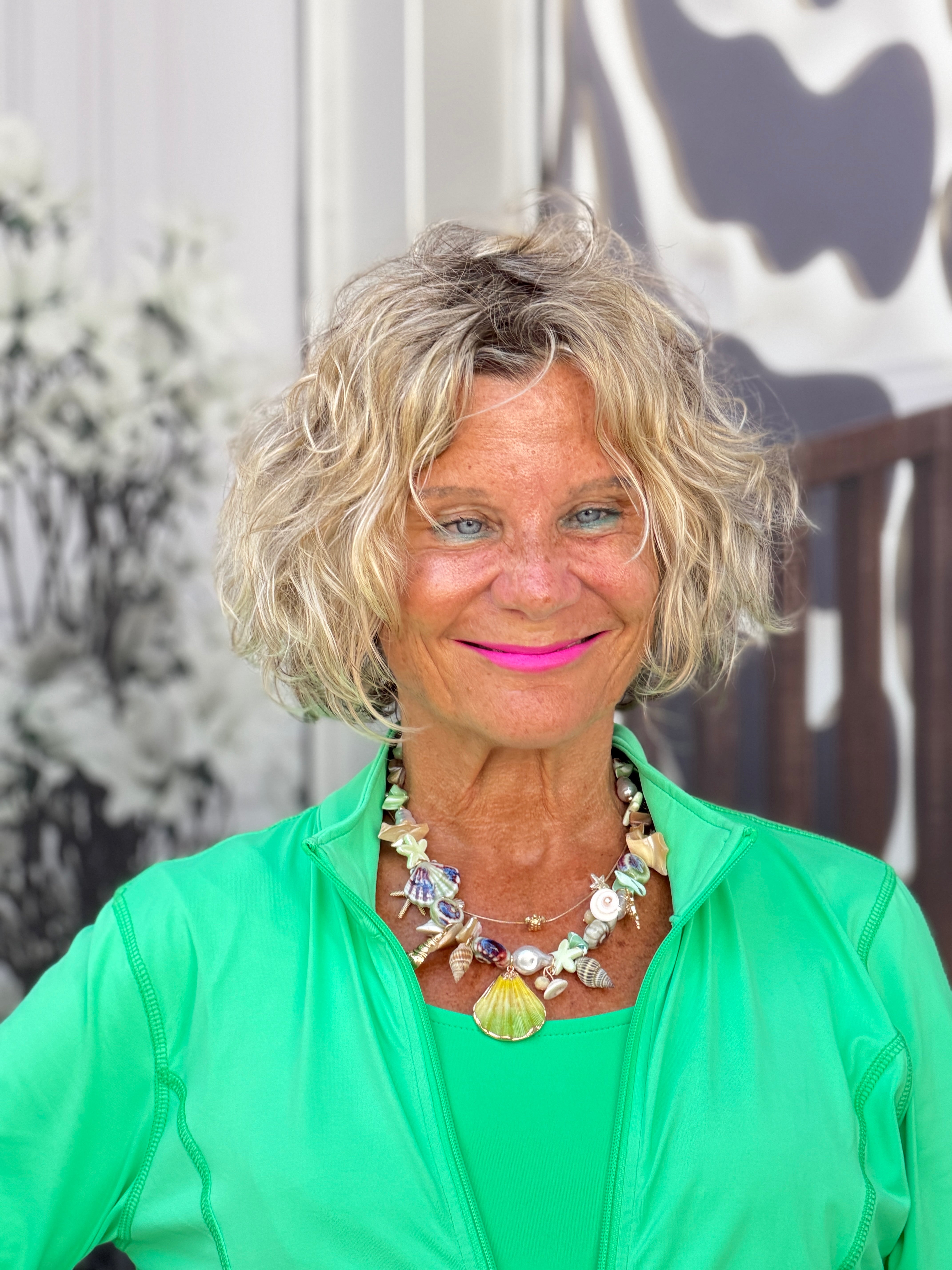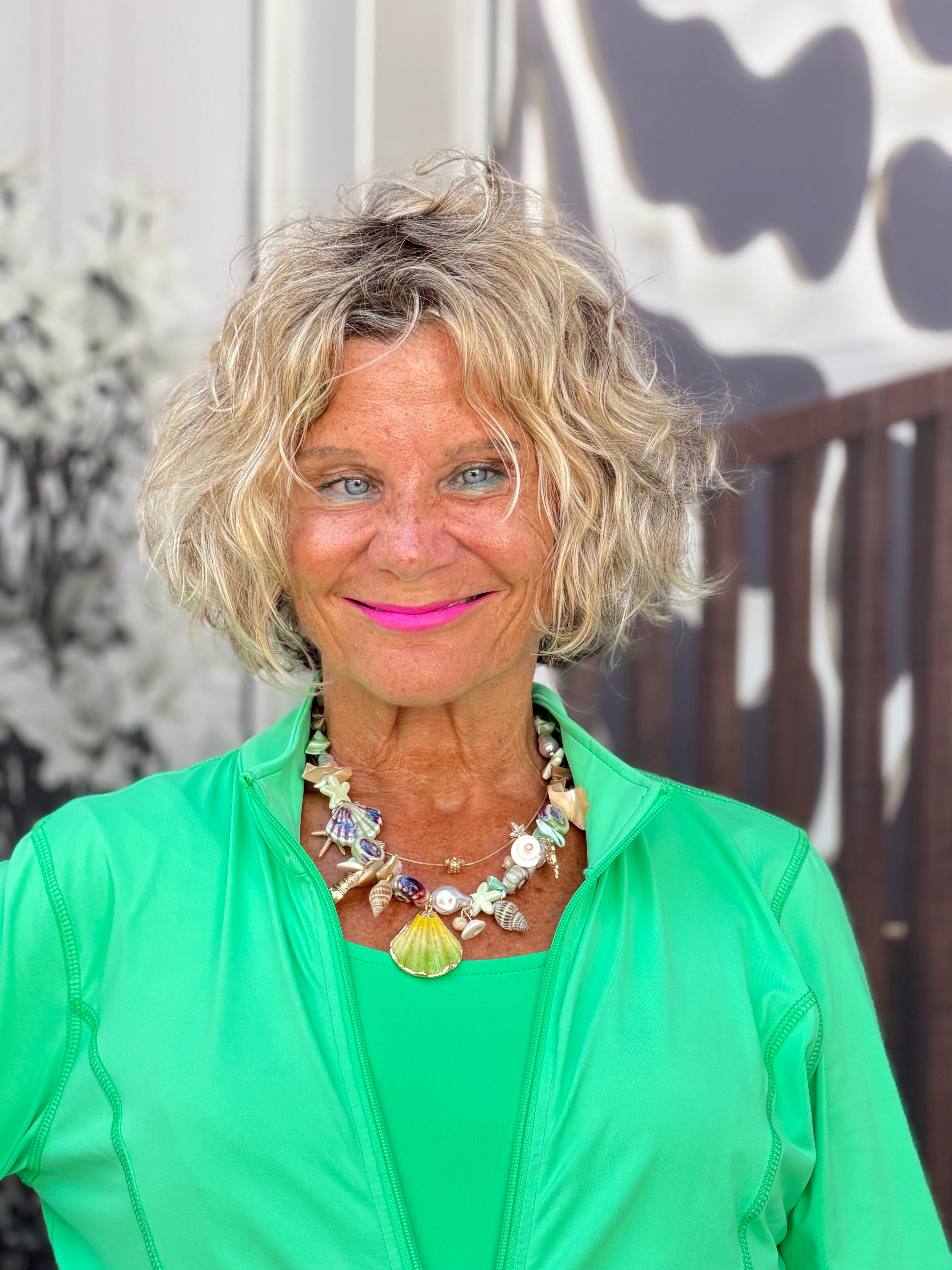 - Long sleeve full zip front jacket.