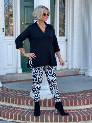 - Pull-on ankle-length legging.