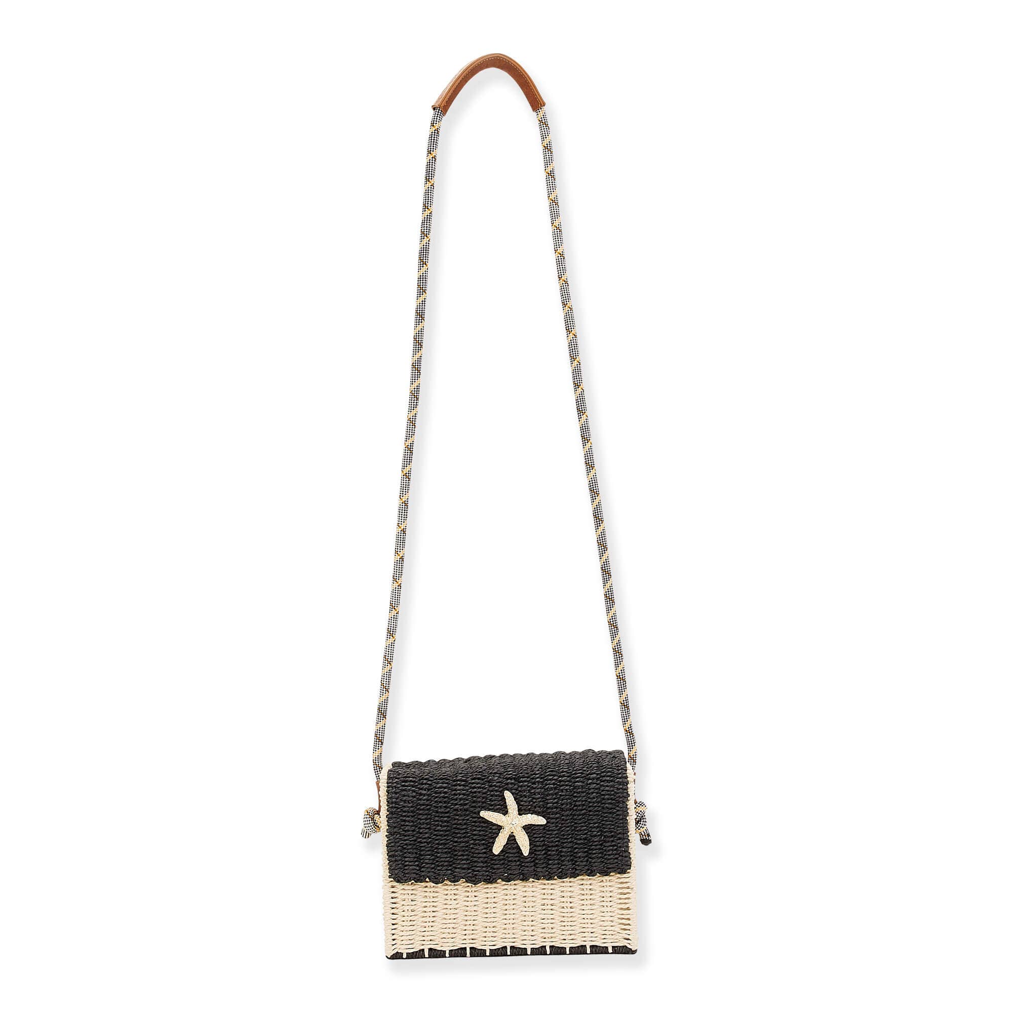 Black, Paper Straw Crossbody| CE6403 A | Spot Clean Only | Made in China | Size: 8.25"x 3.25"x 6.25"