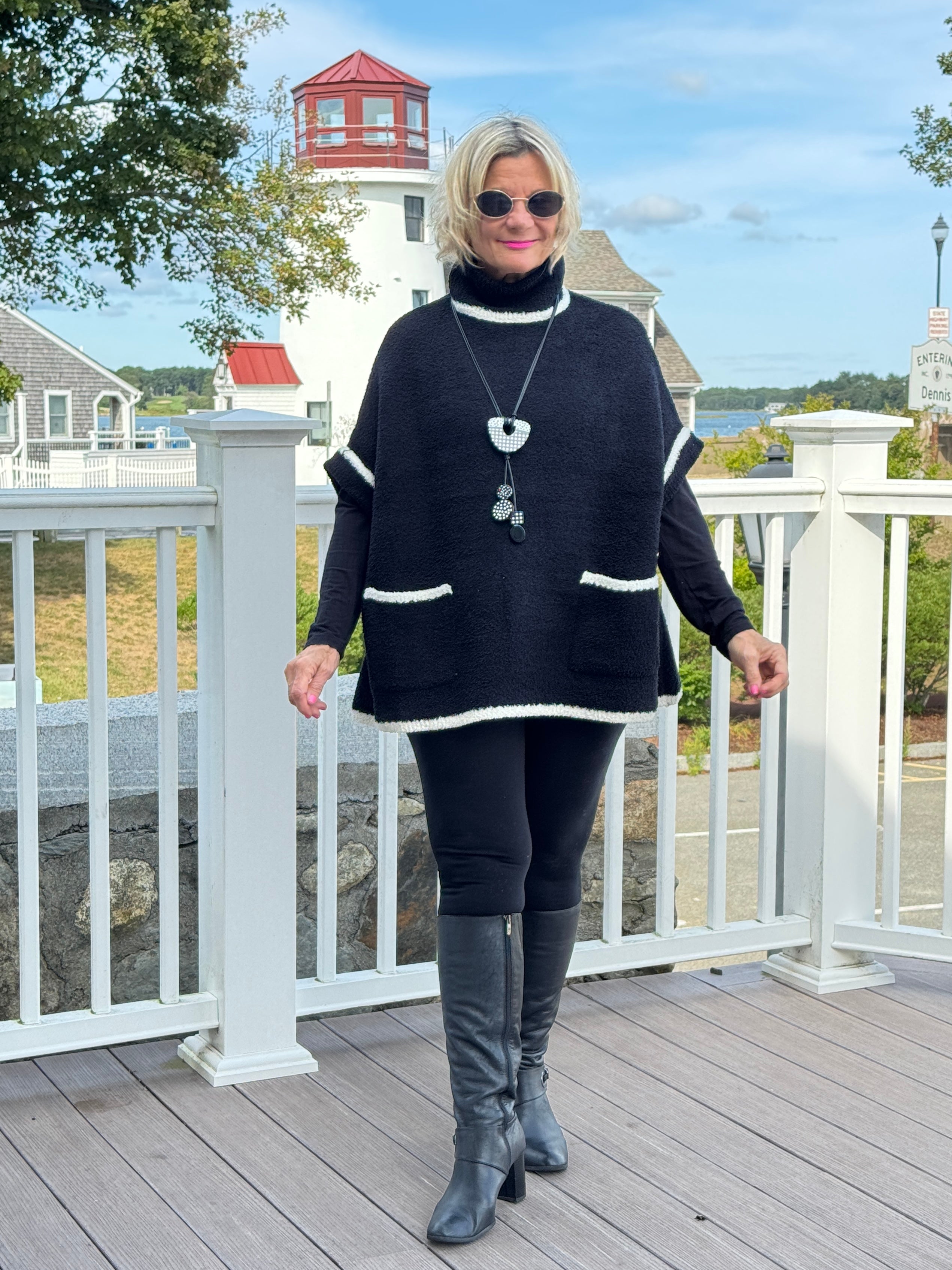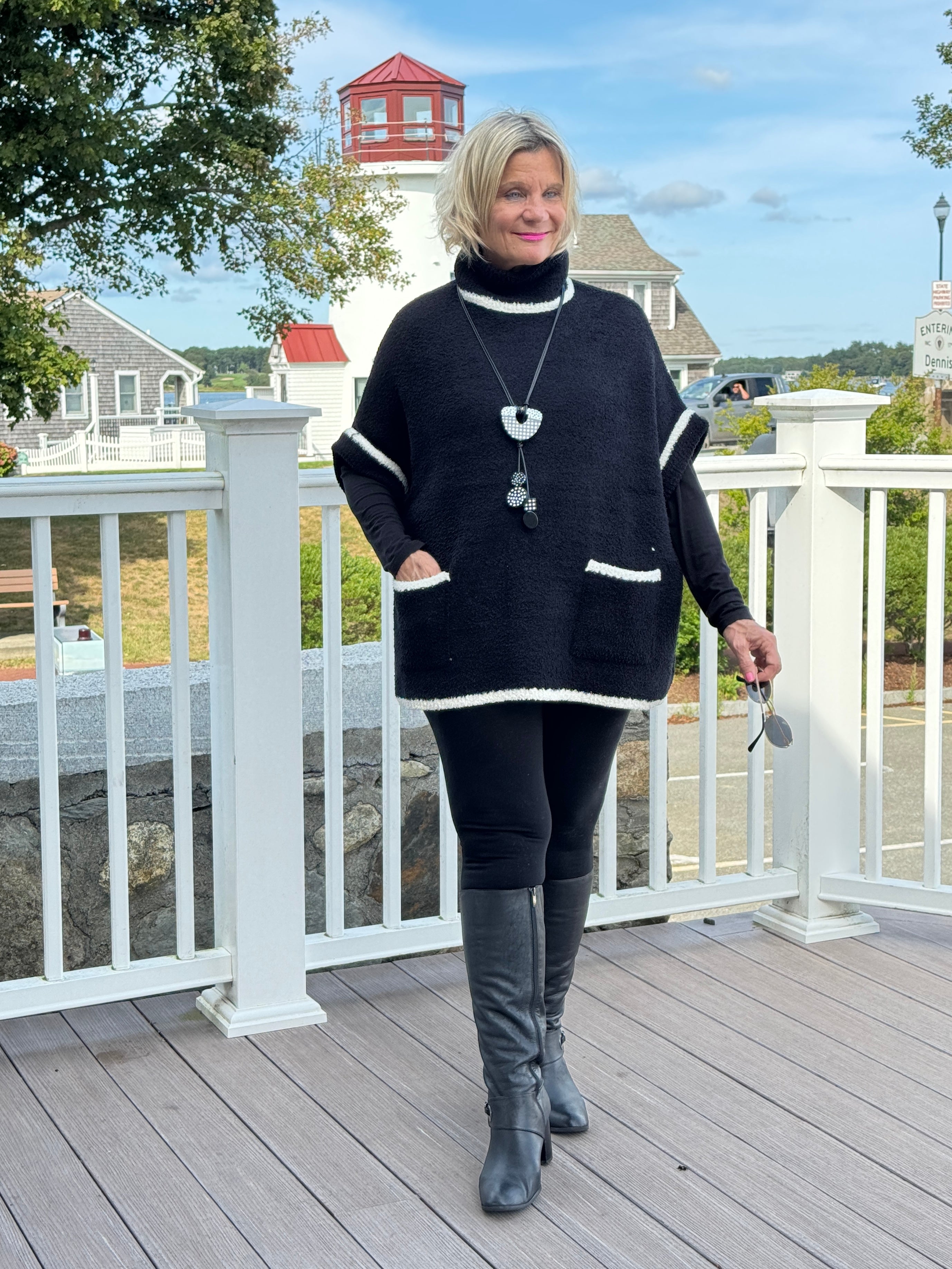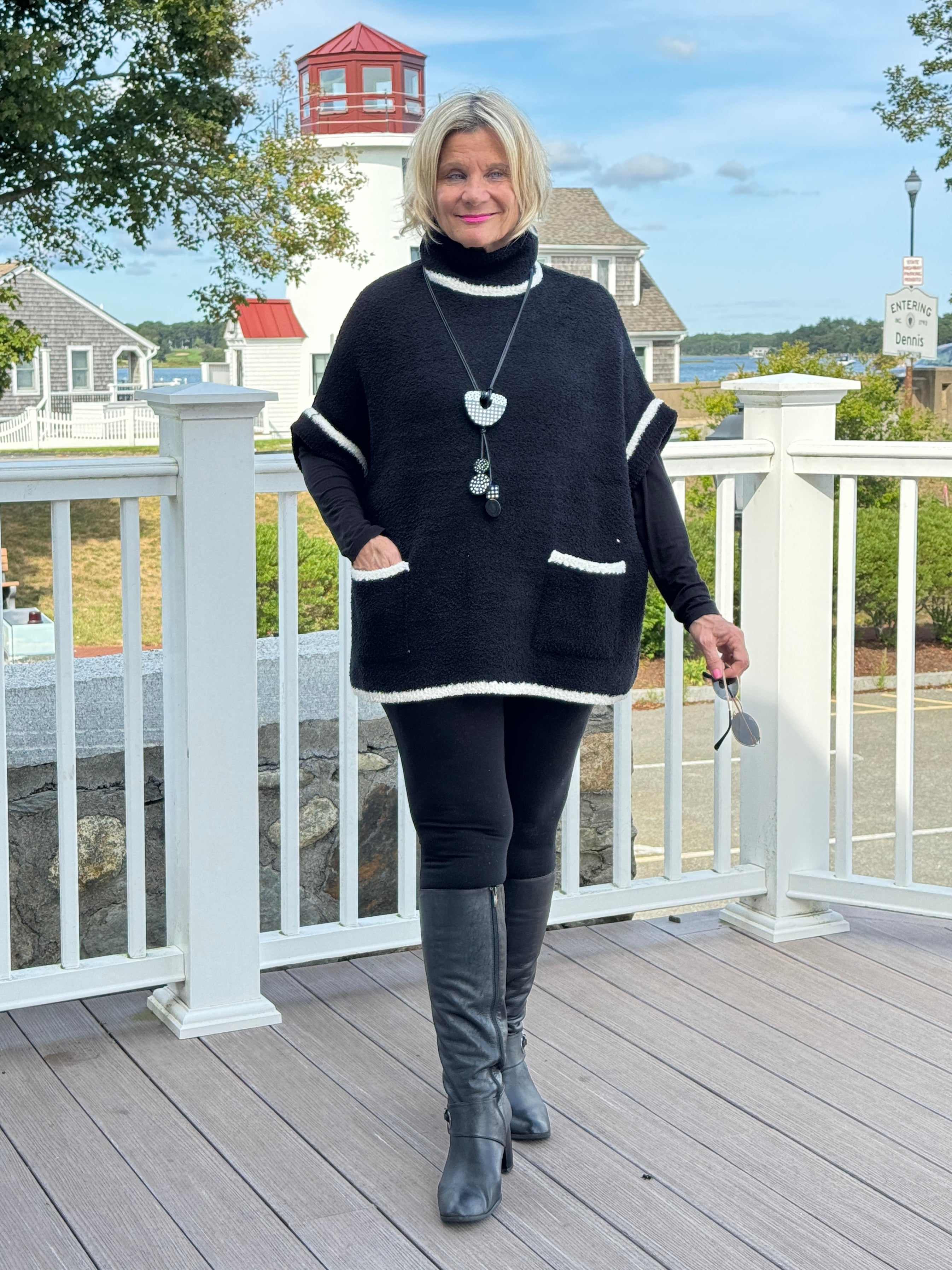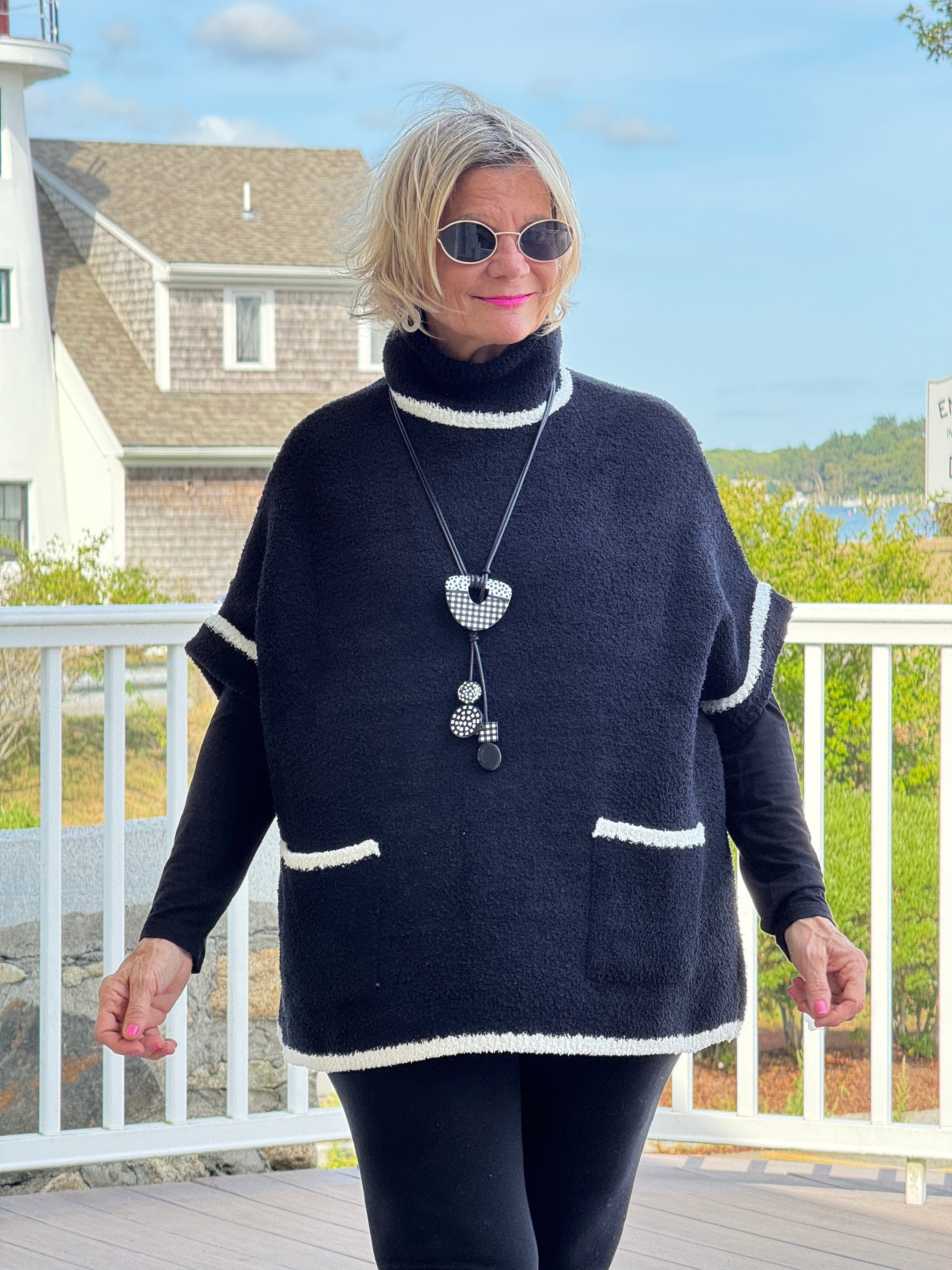 • Elevate your wardrobe with this cozy textured poncho featuring a relaxed turtleneck, short sleeves, and front pockets for style and convenience. Perfect for layering, it offers comfort and effortless chic appeal for casual days or cool-weather outings.