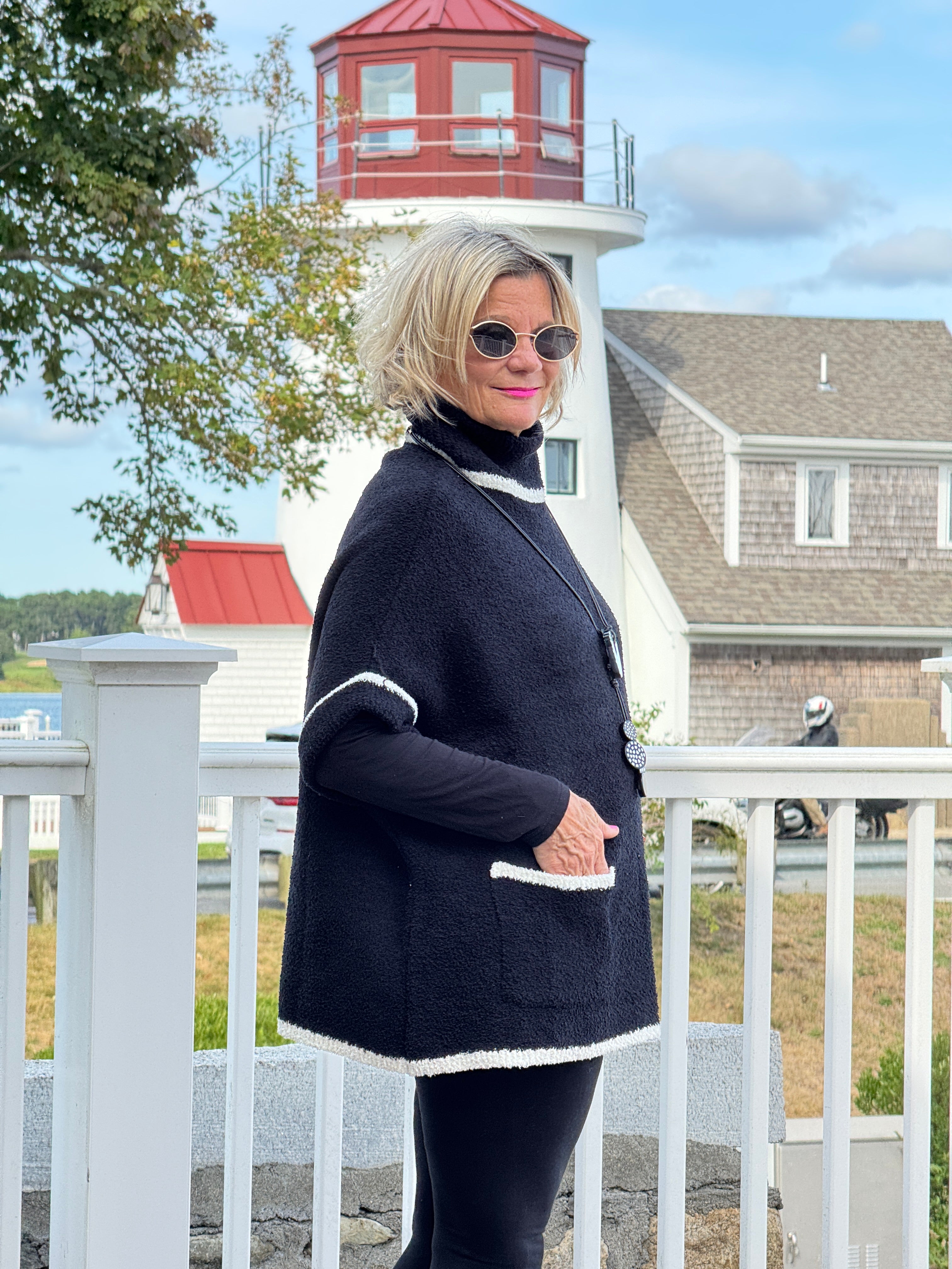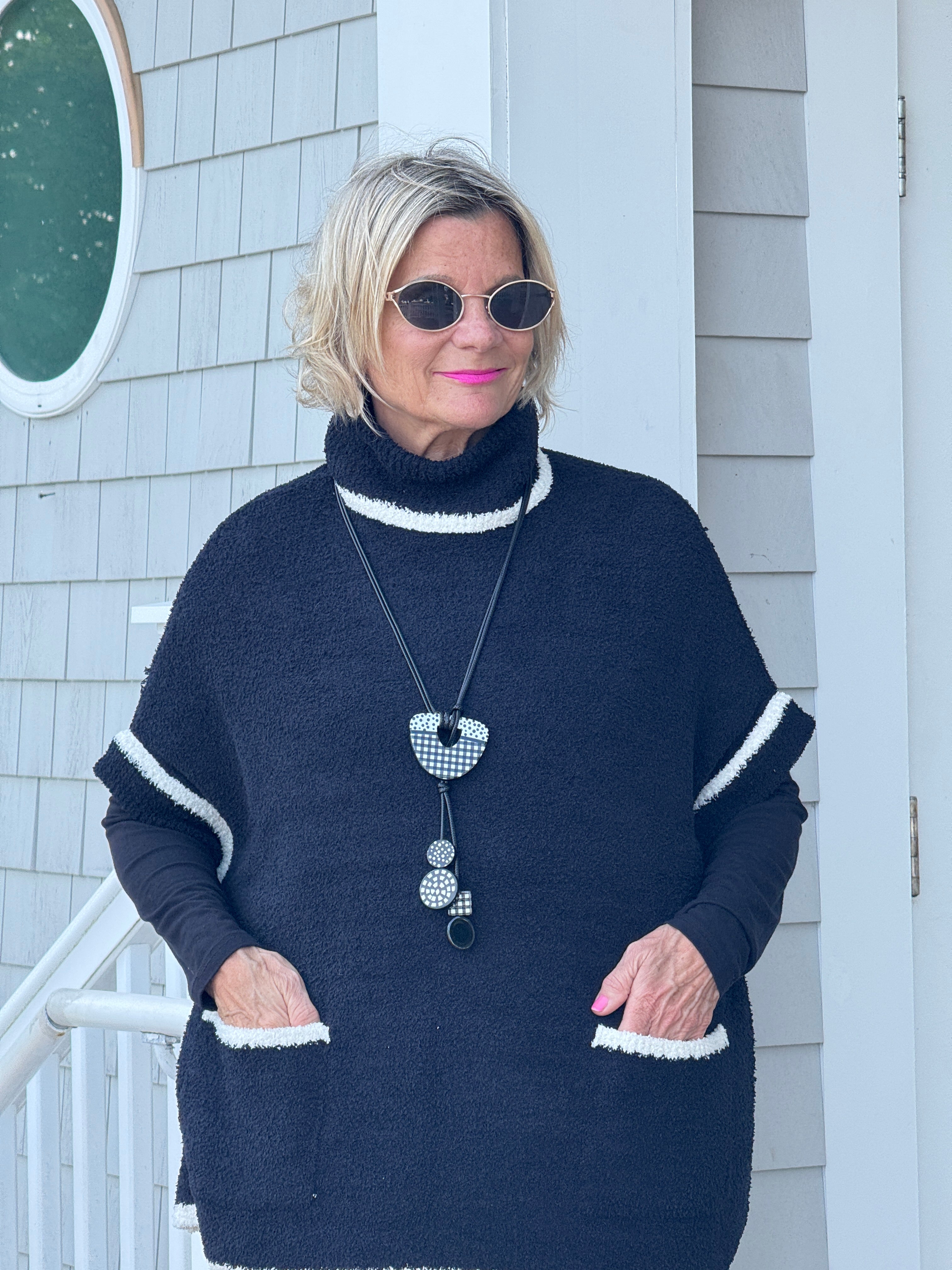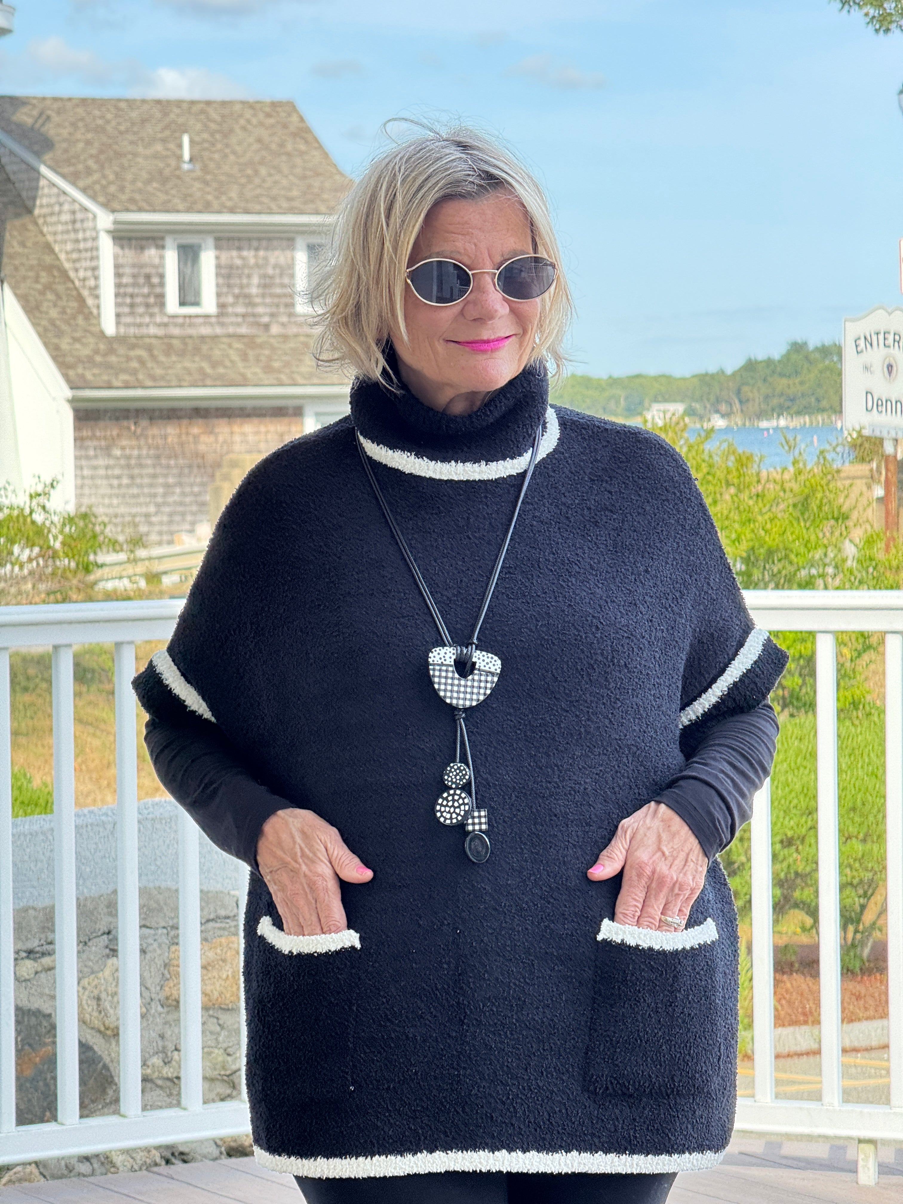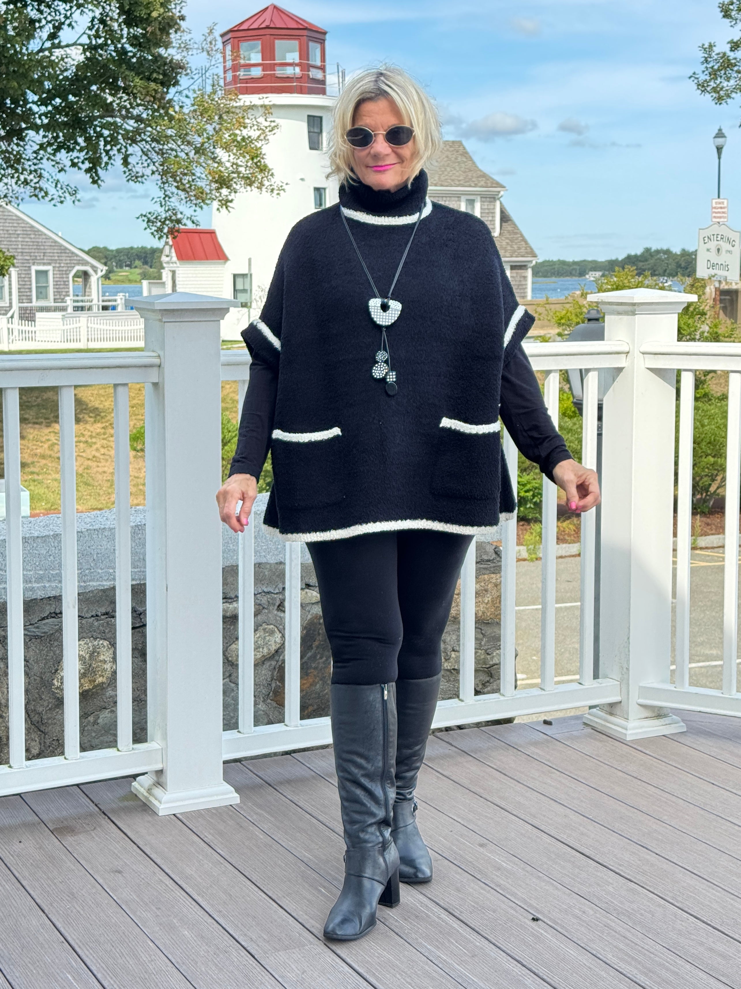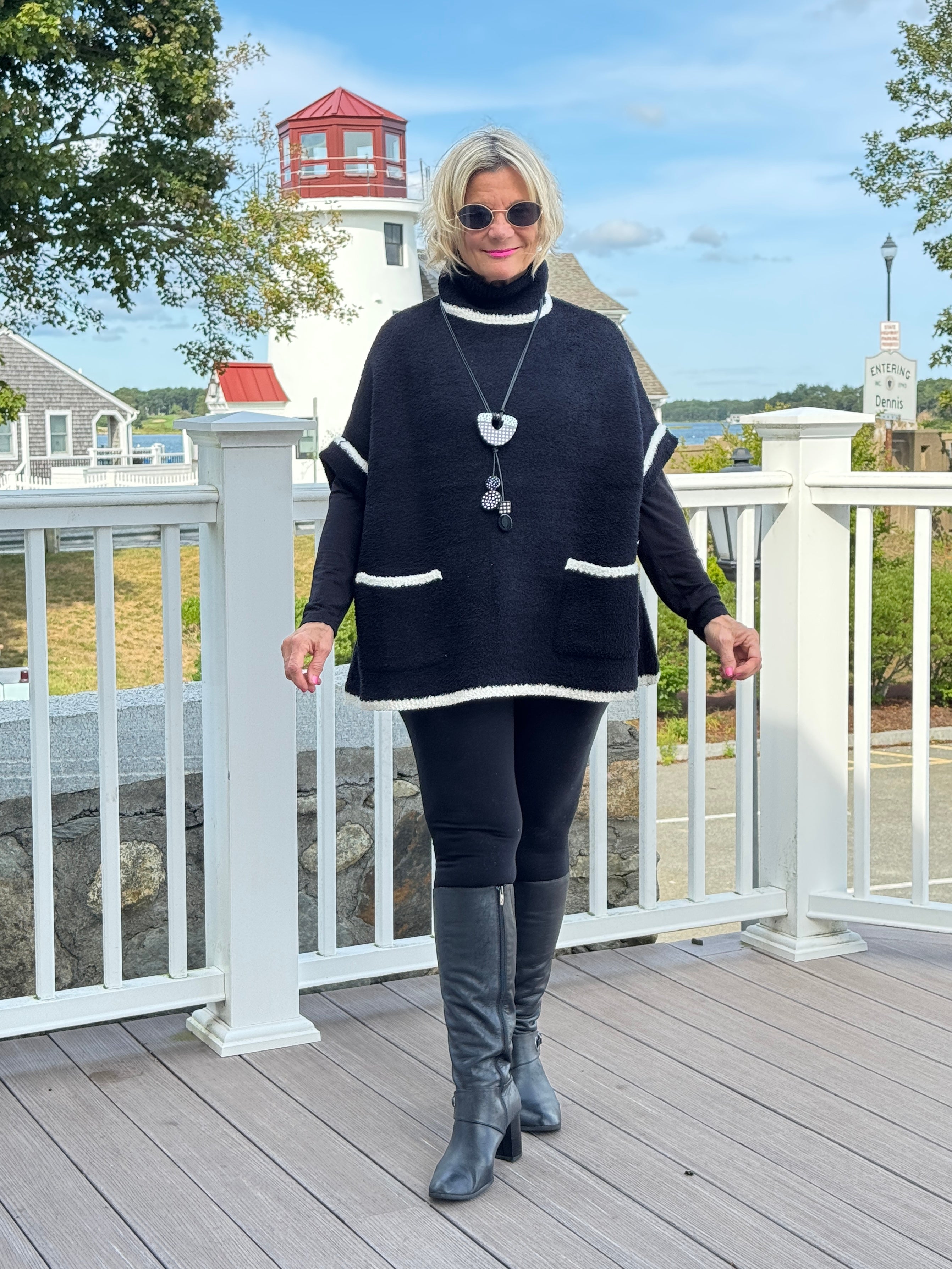 • Elevate your wardrobe with this cozy textured poncho featuring a relaxed turtleneck, short sleeves, and front pockets for style and convenience. Perfect for layering, it offers comfort and effortless chic appeal for casual days or cool-weather outings.