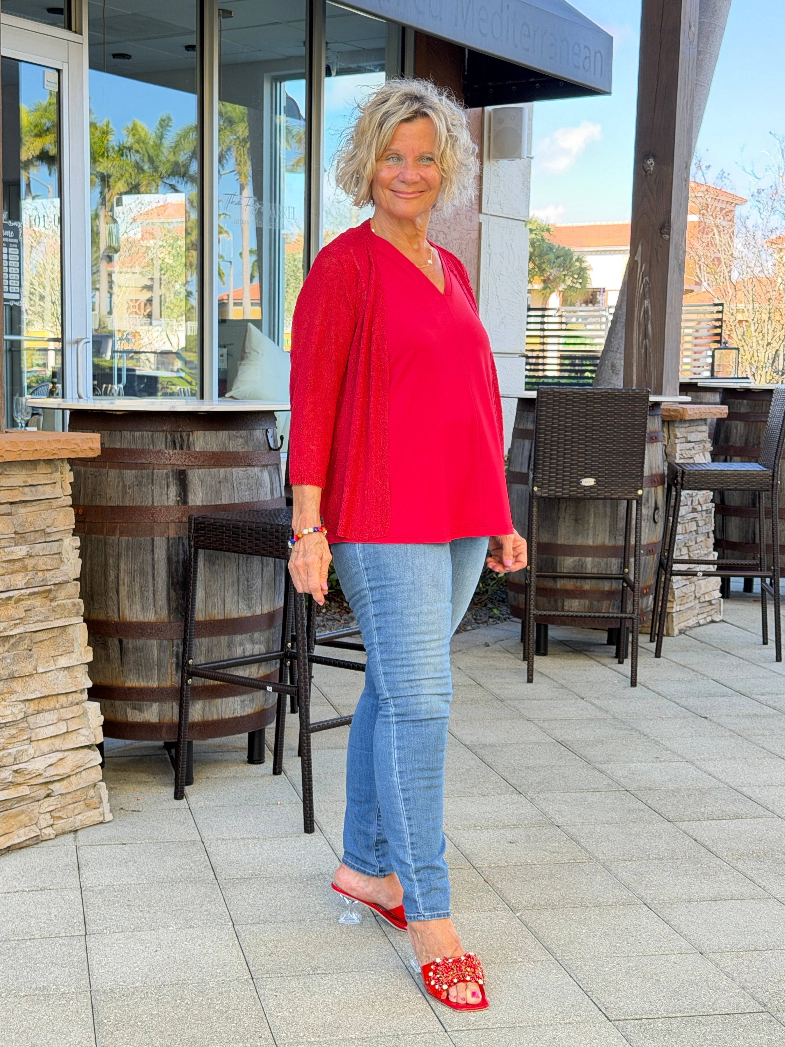 LULU B RED MESH RUFFLE WRAP