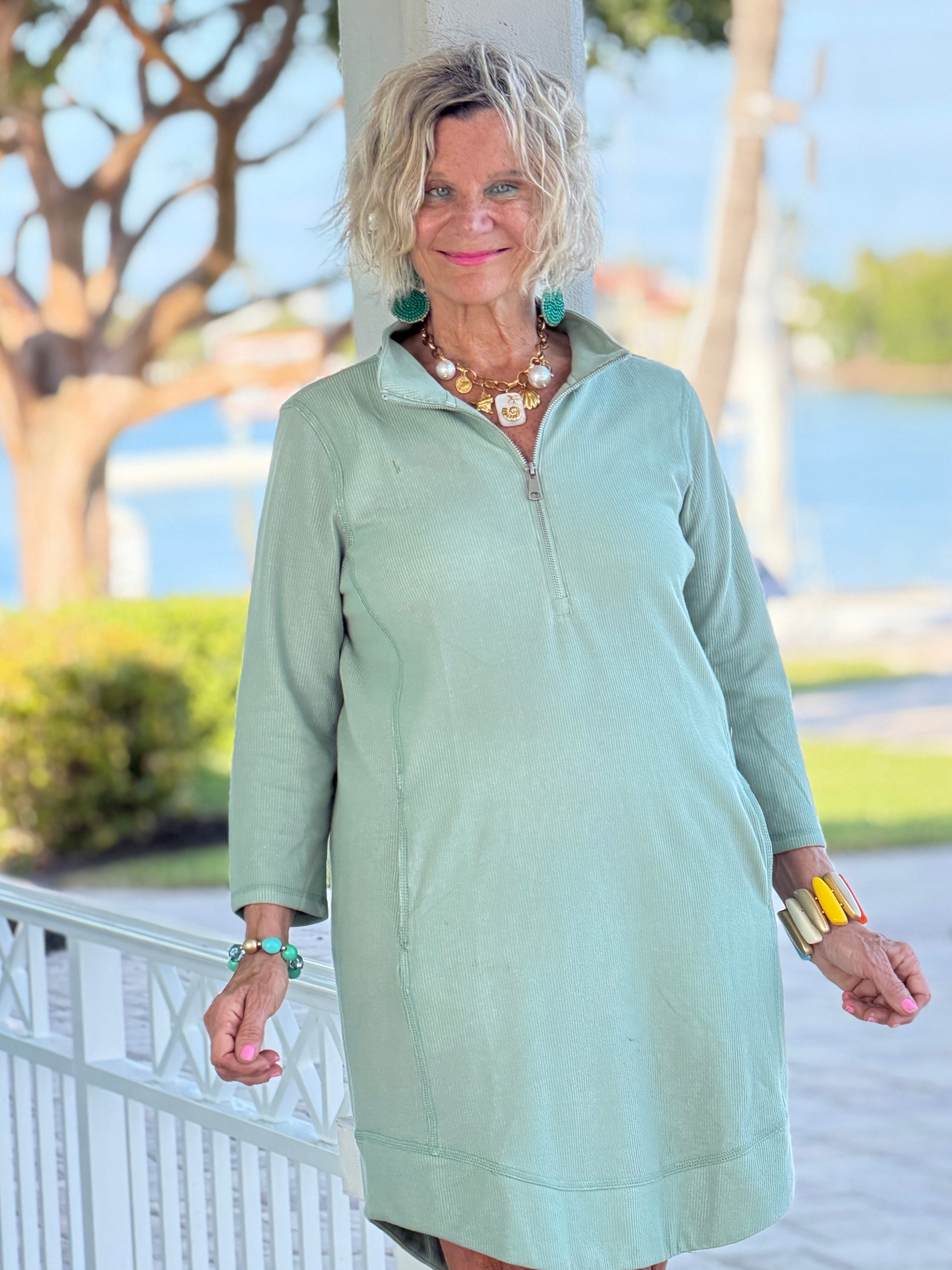 - Ribbed hemline.