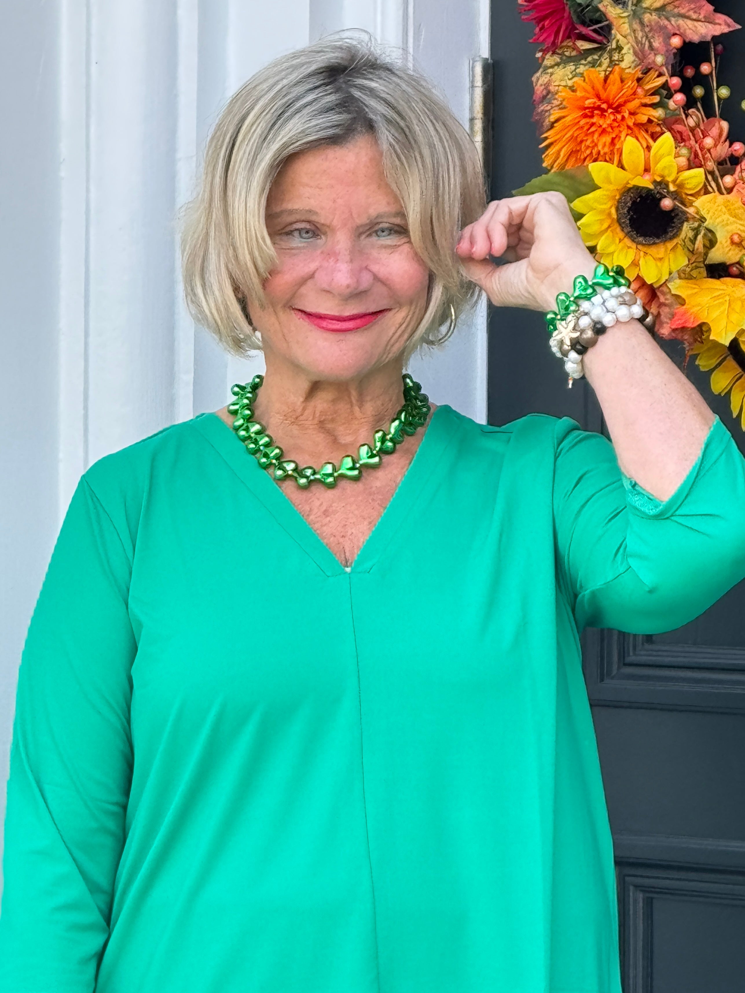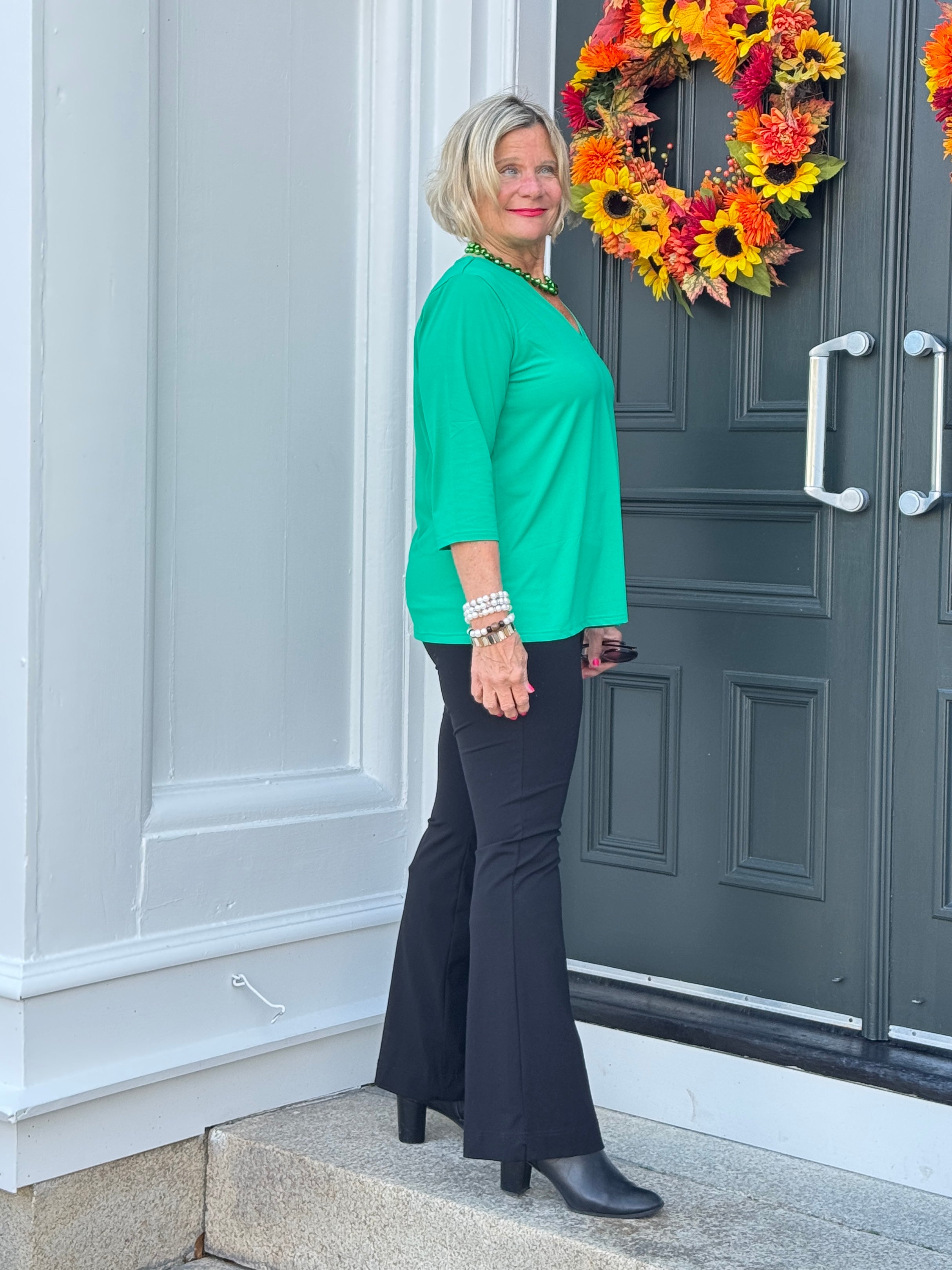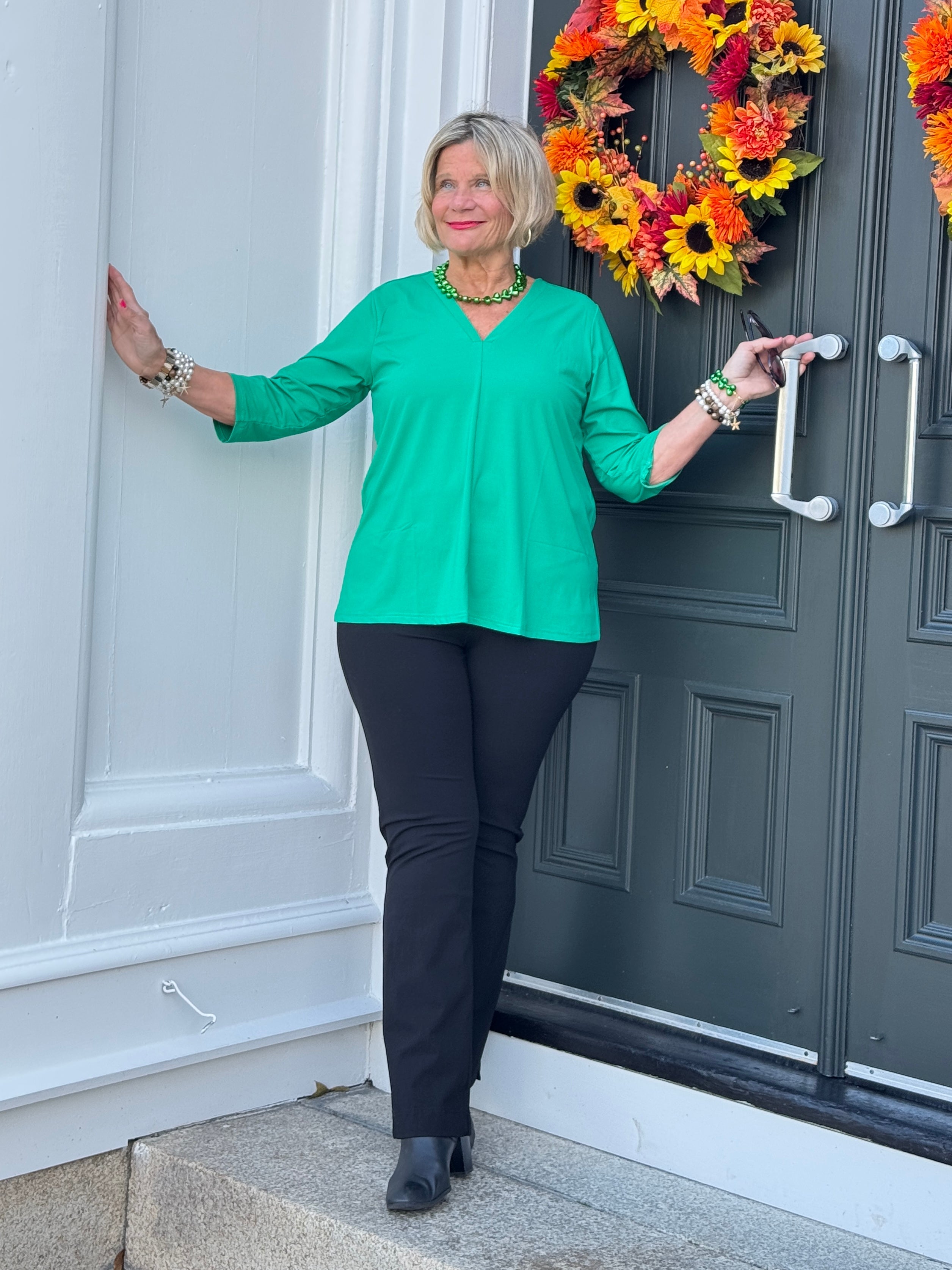 LULU-B TAILORED V EMERALD SLEEVE TOP