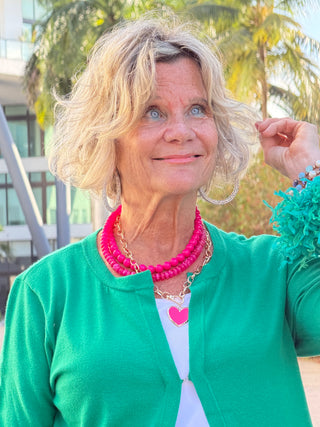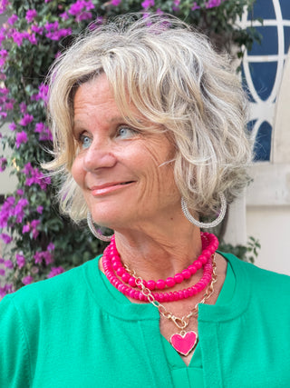 Pink Enamel Heart Pendant Accent Chunky Beaded Layered Statement Necklace