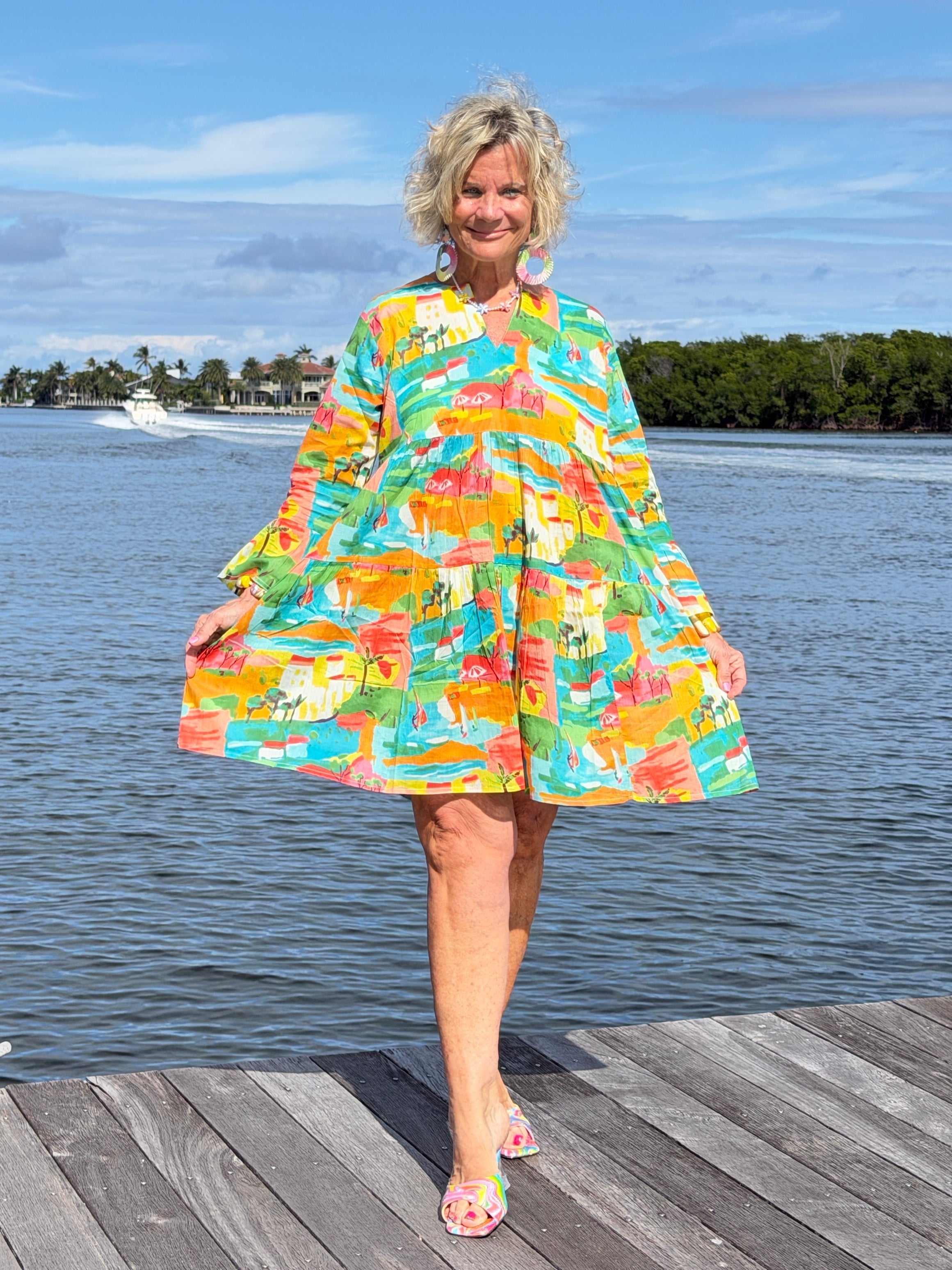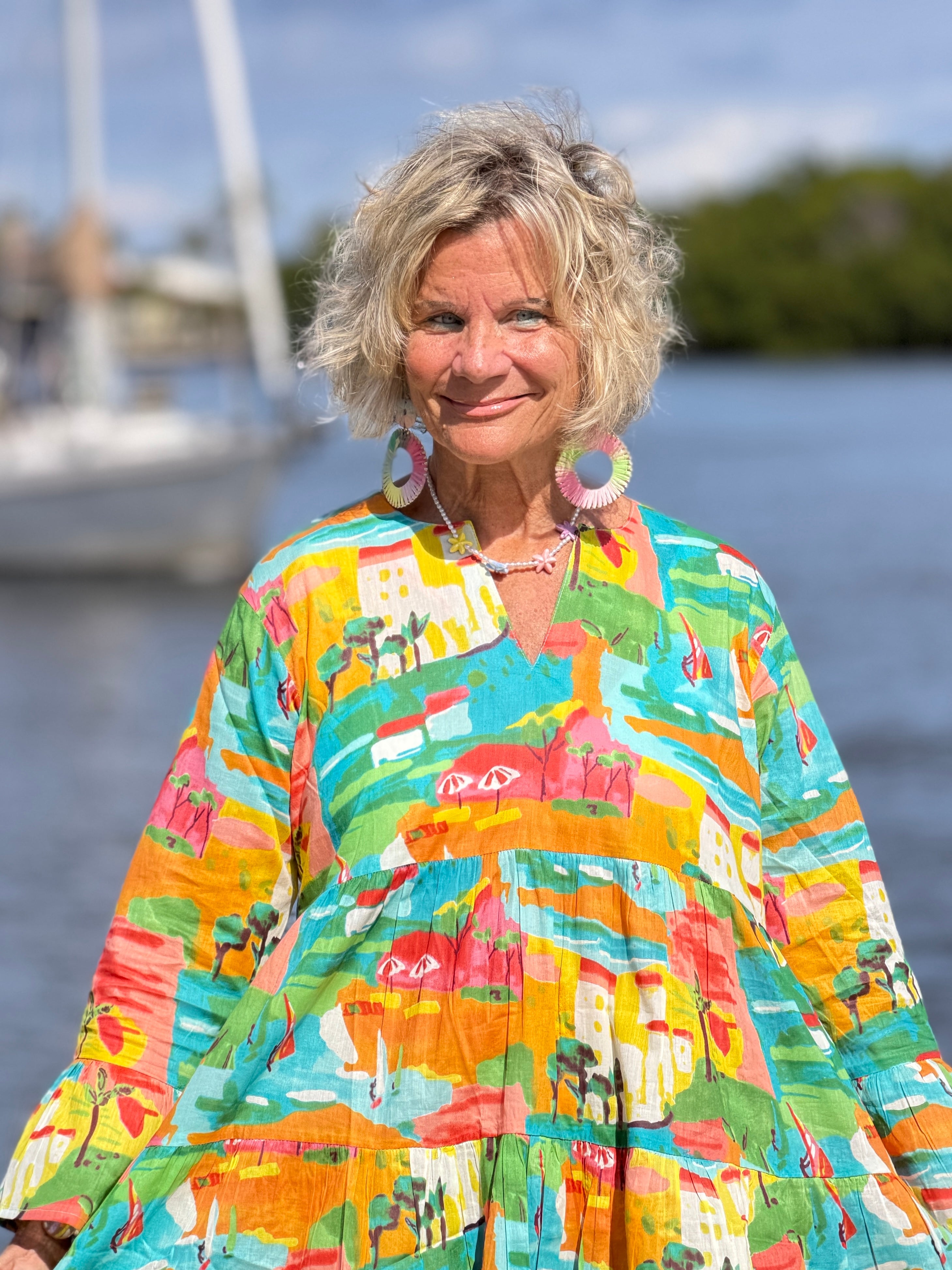 Immerse yourself in the fusion of urban chic and island charm with our Vacay 3 Ruffle Dress from Made from 100% cotton, this dress promises comfort and durability. Its vibrant color and ruffled design reflect the lively prints and easy flowing bodies synonymous with our brand, inspired by bustling cities and tranquil islands