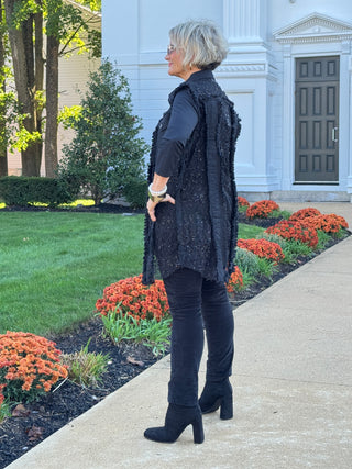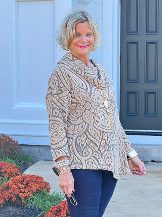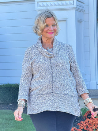 Women's Cowl Neck Spacedye Chenille Knit ToP BLACK MULTI