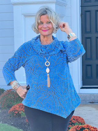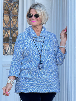 Women's Cowl Neck Spacedye Chenille Knit Top BLUEBELL MULTI