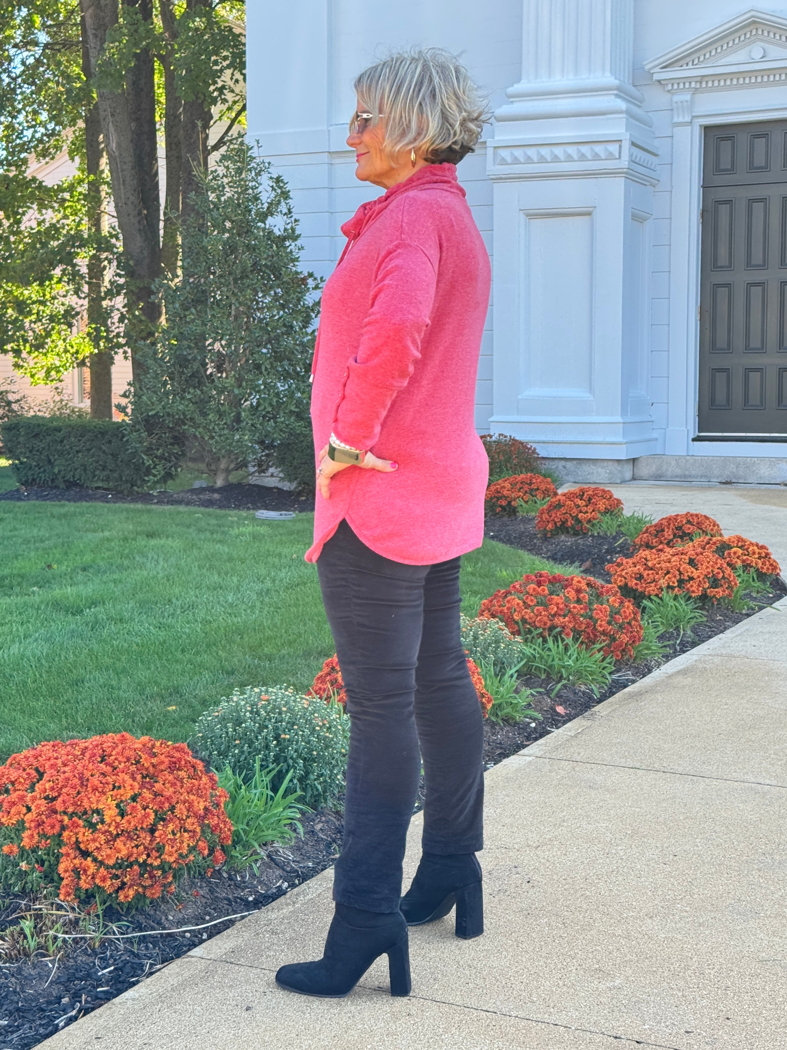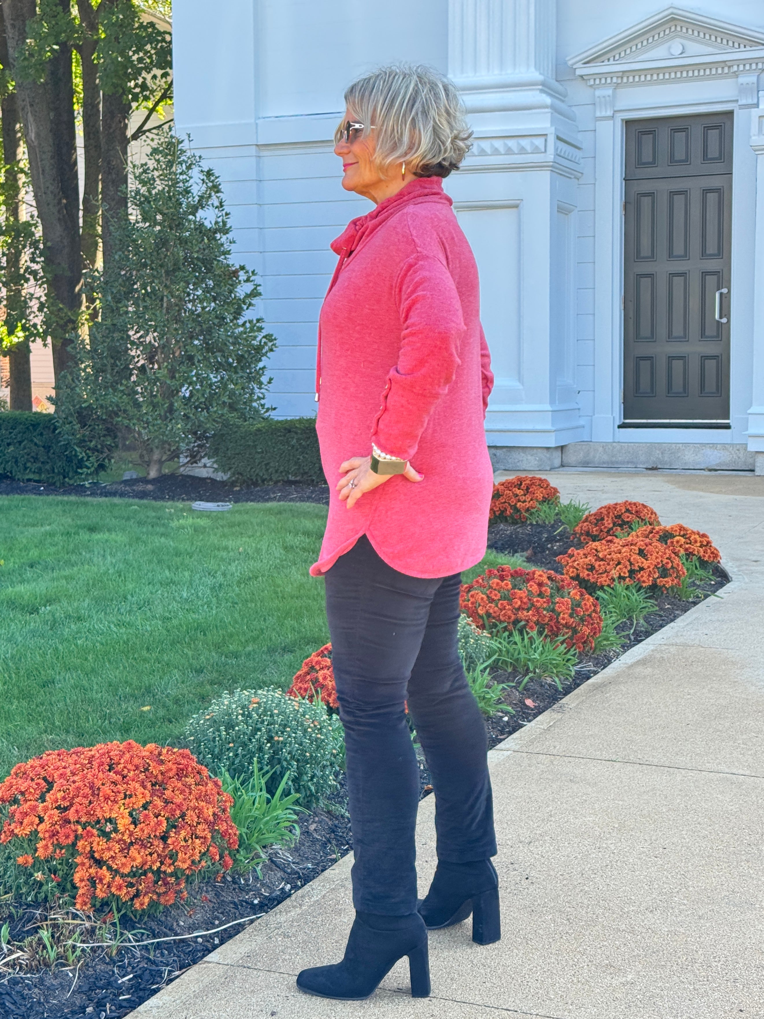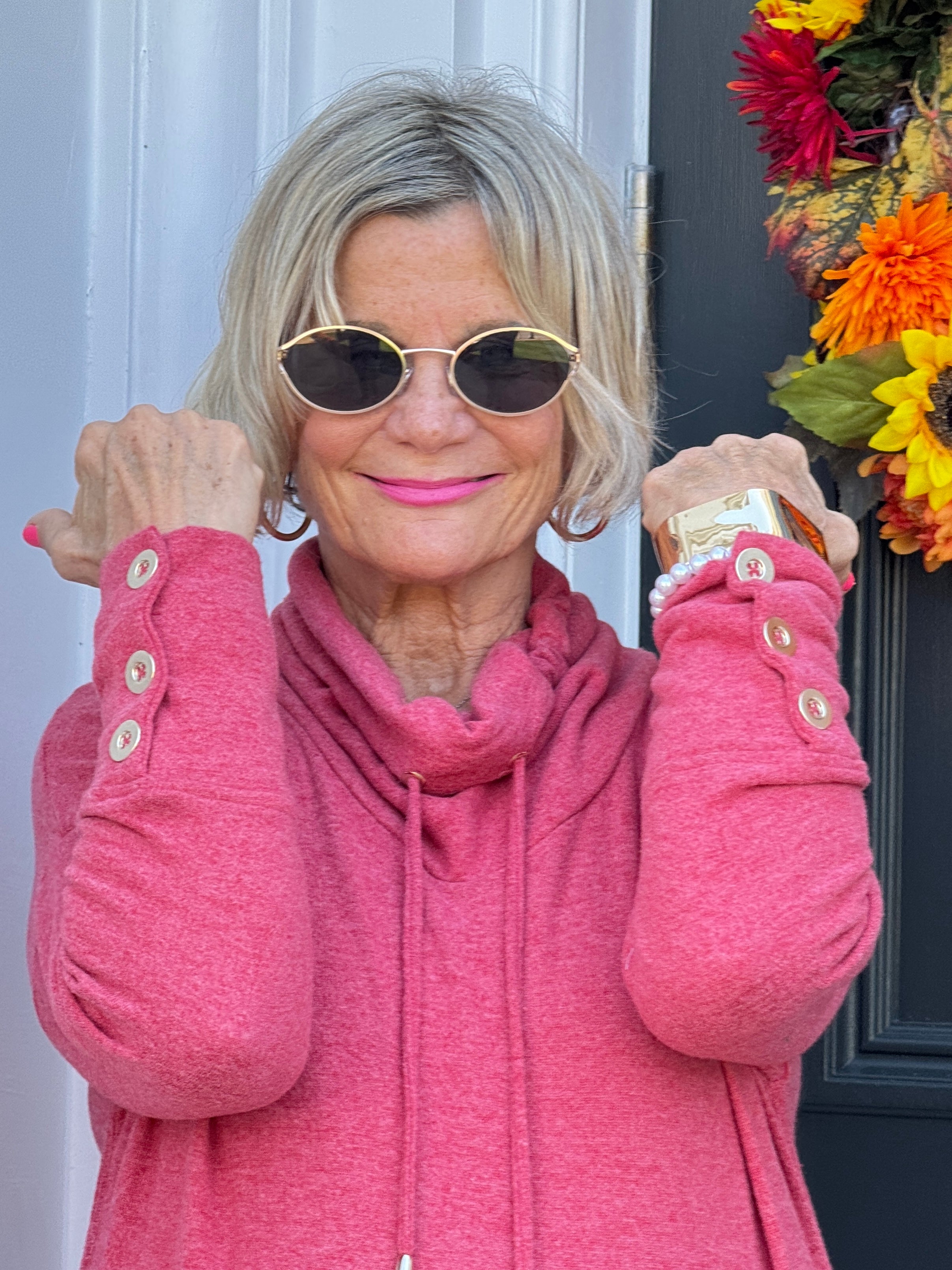 Women's Cowl Neck Cozy Hatchi Drawstring Top CHERRY