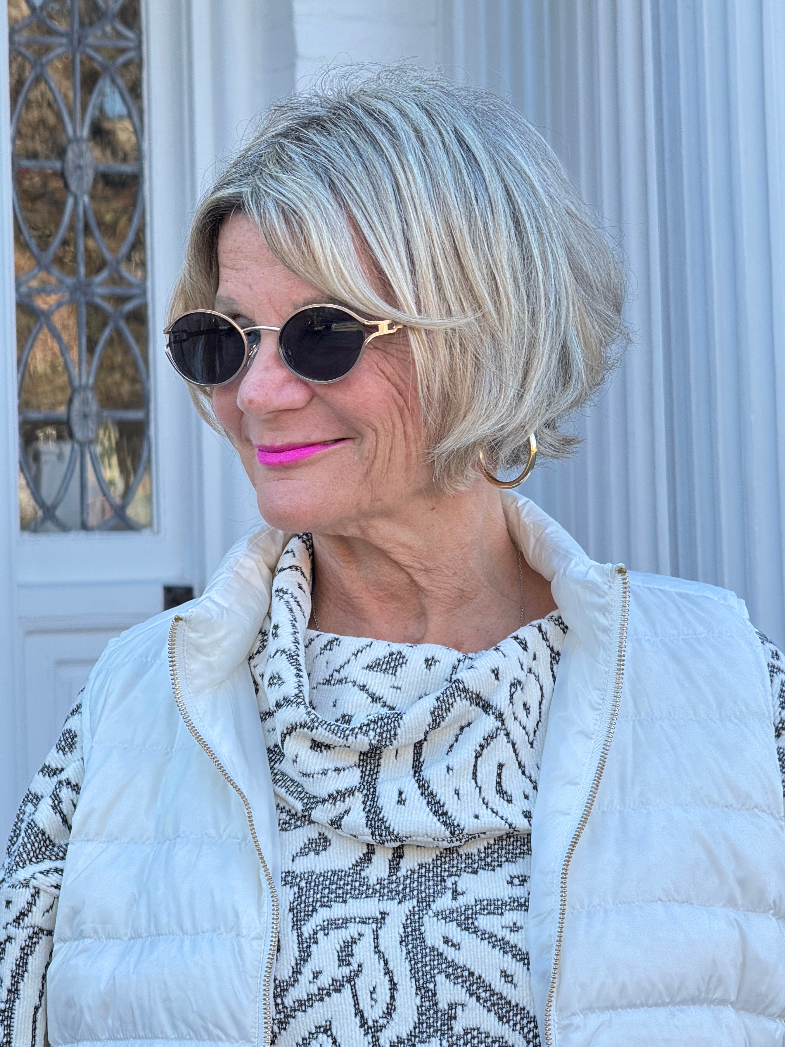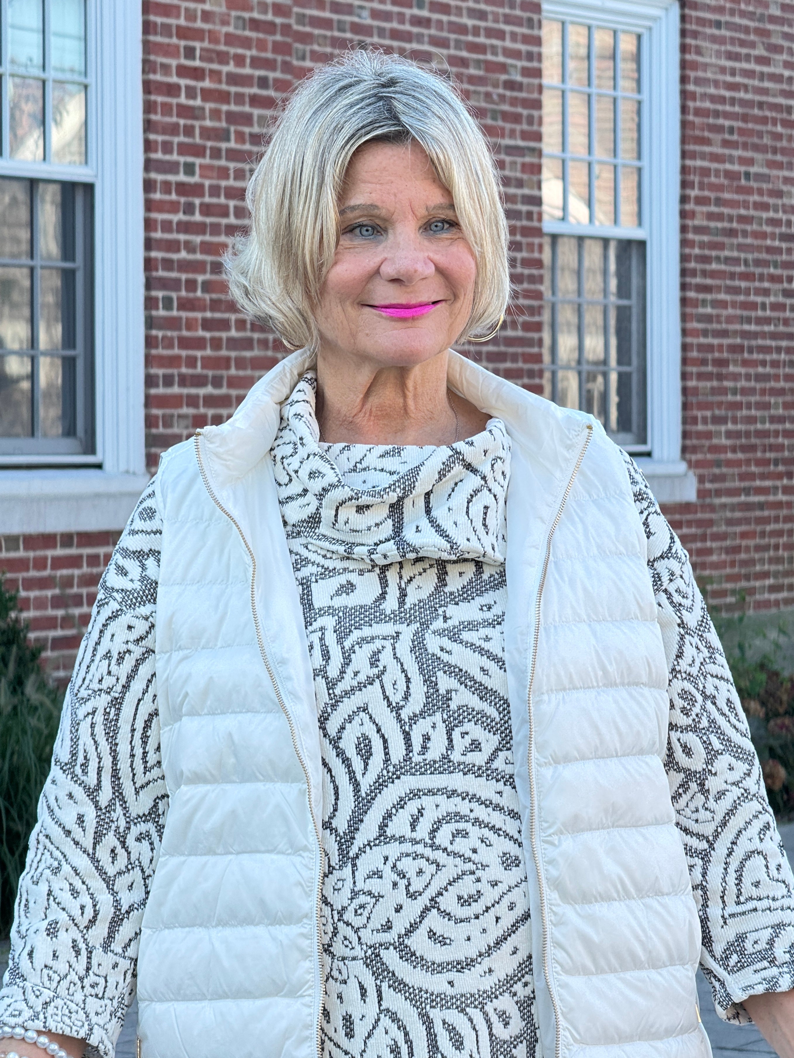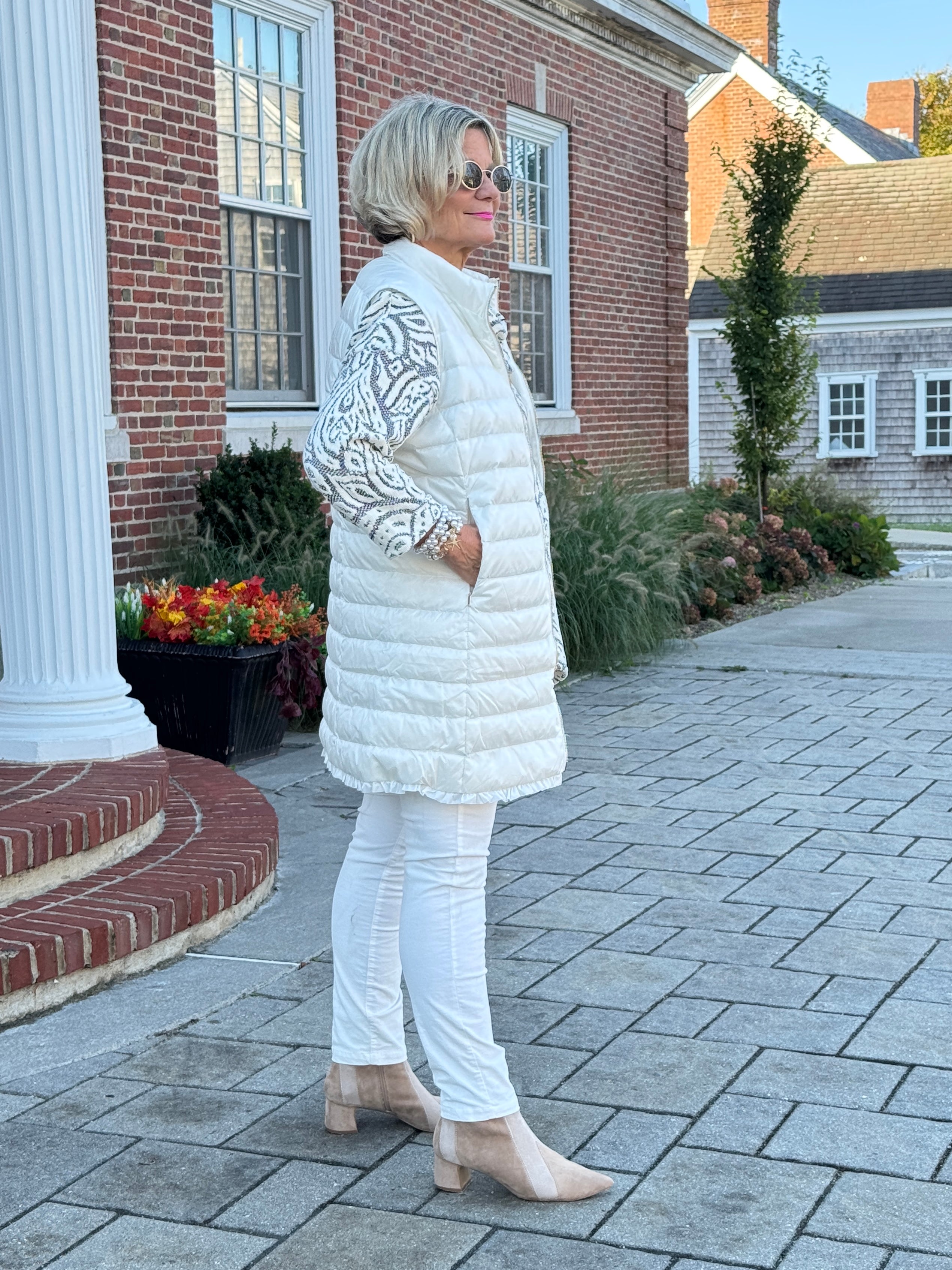 A fluffy high-pile fleece lining lends plush warmth to this recycled-nylon puffer vest that's equipped with water-repellent and antistatic properties.