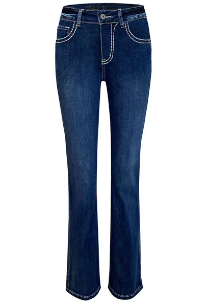Great times are ahead when you slip on these fun and flattering jeans. White , bolded stitching brings back memories of yesteryear. Soft denim and our signature stretch will help these jeans keep their shape and style wear after wear.