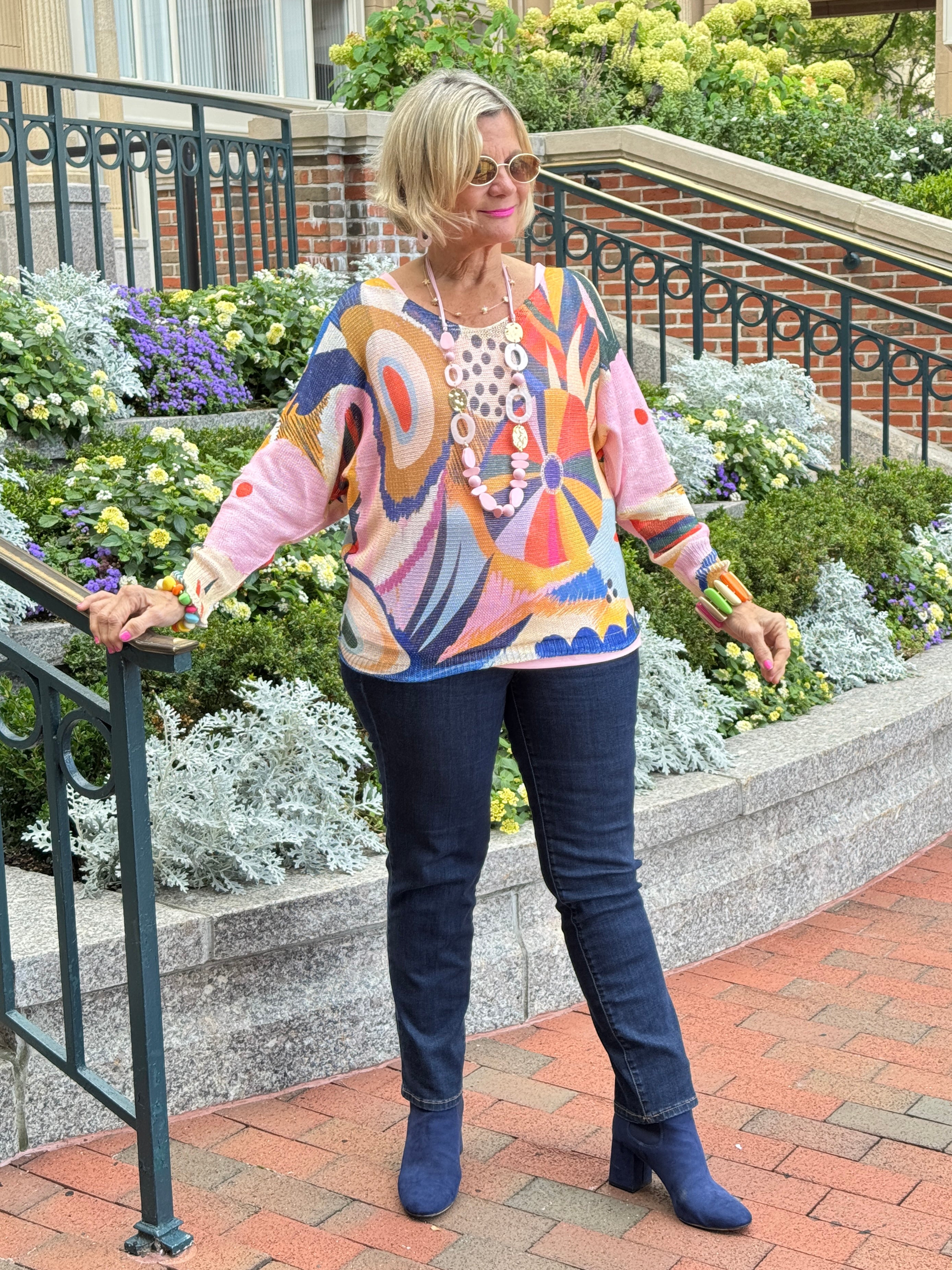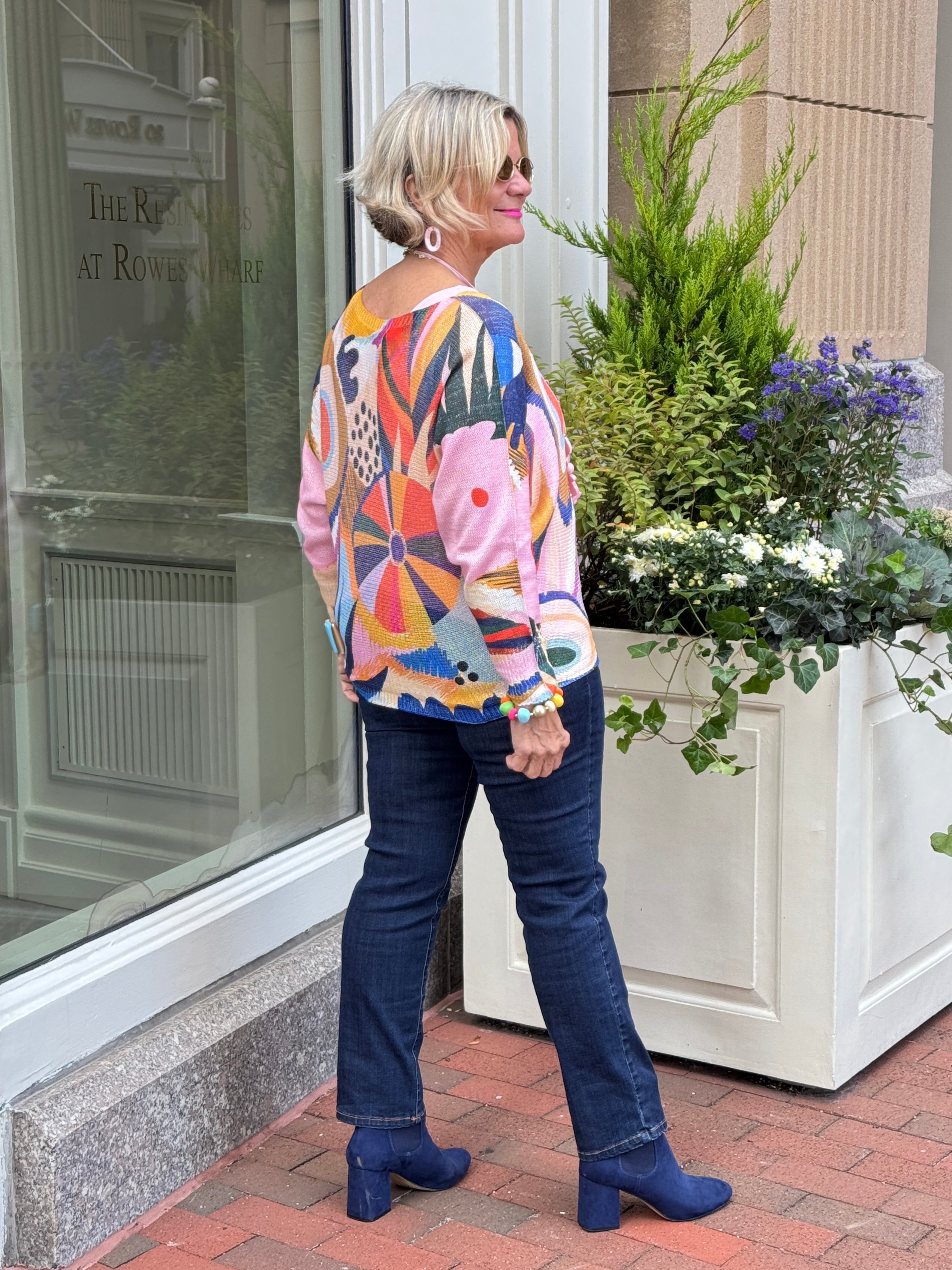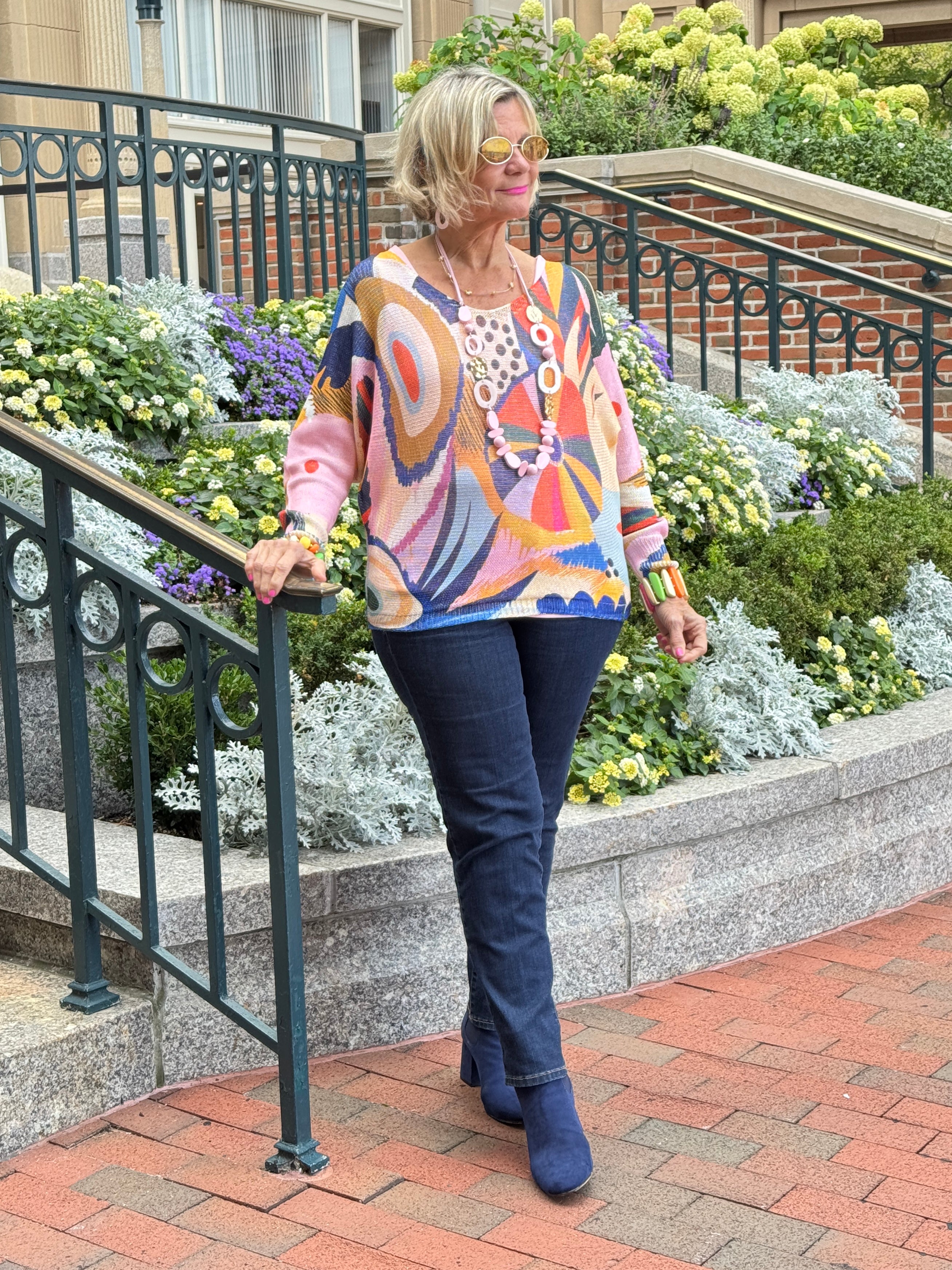 Multicolor Abstract Round Knit Printed Sweater