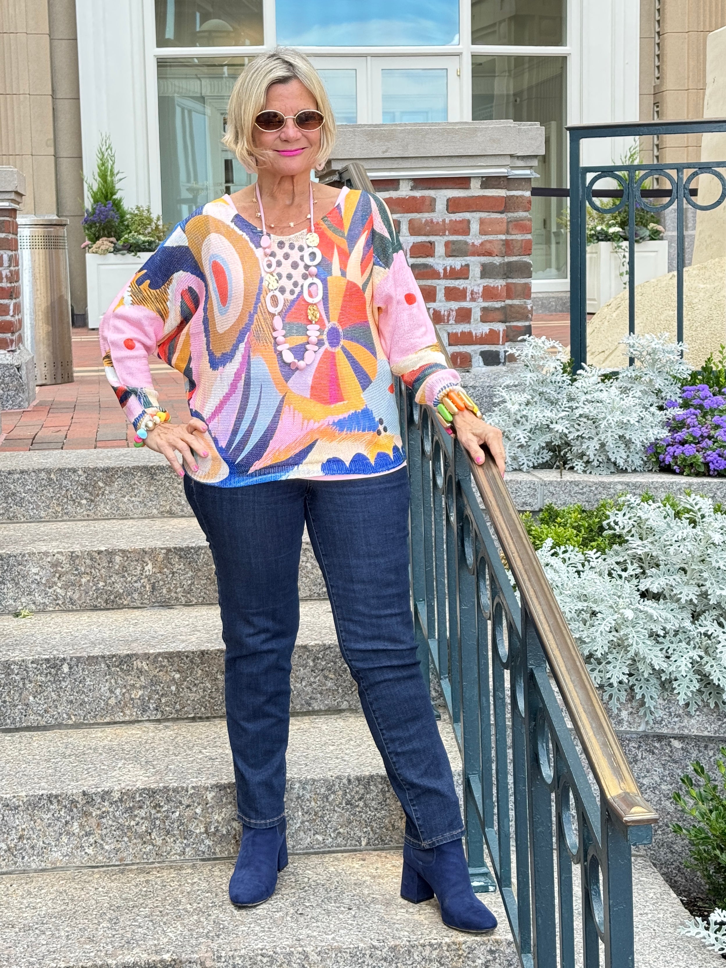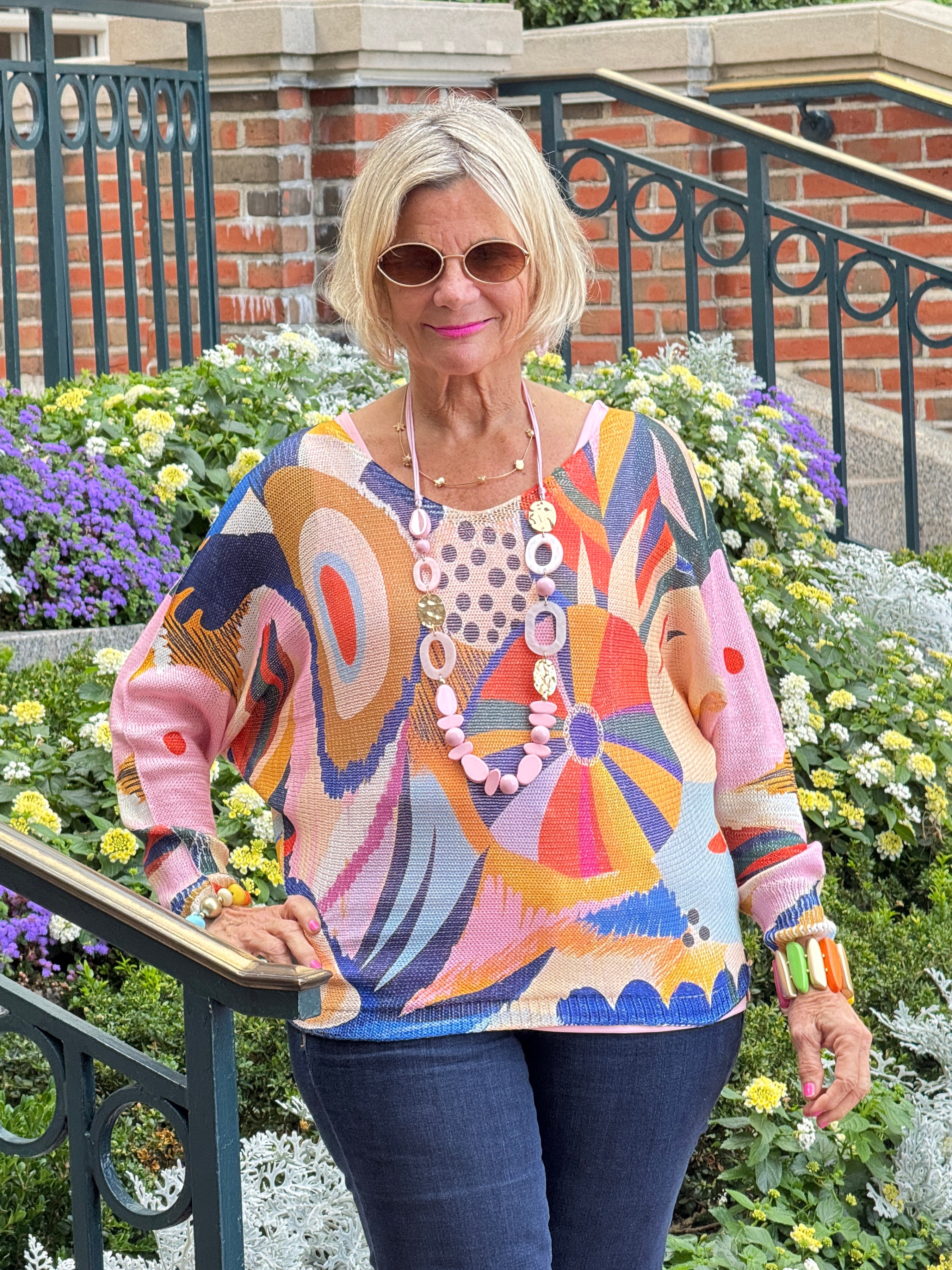 702 Multicolor Abstract Round Knit Printed Sweater LOOWIE One Size Made in Italy 62% Polyester 33% Viscose 5% Elastane