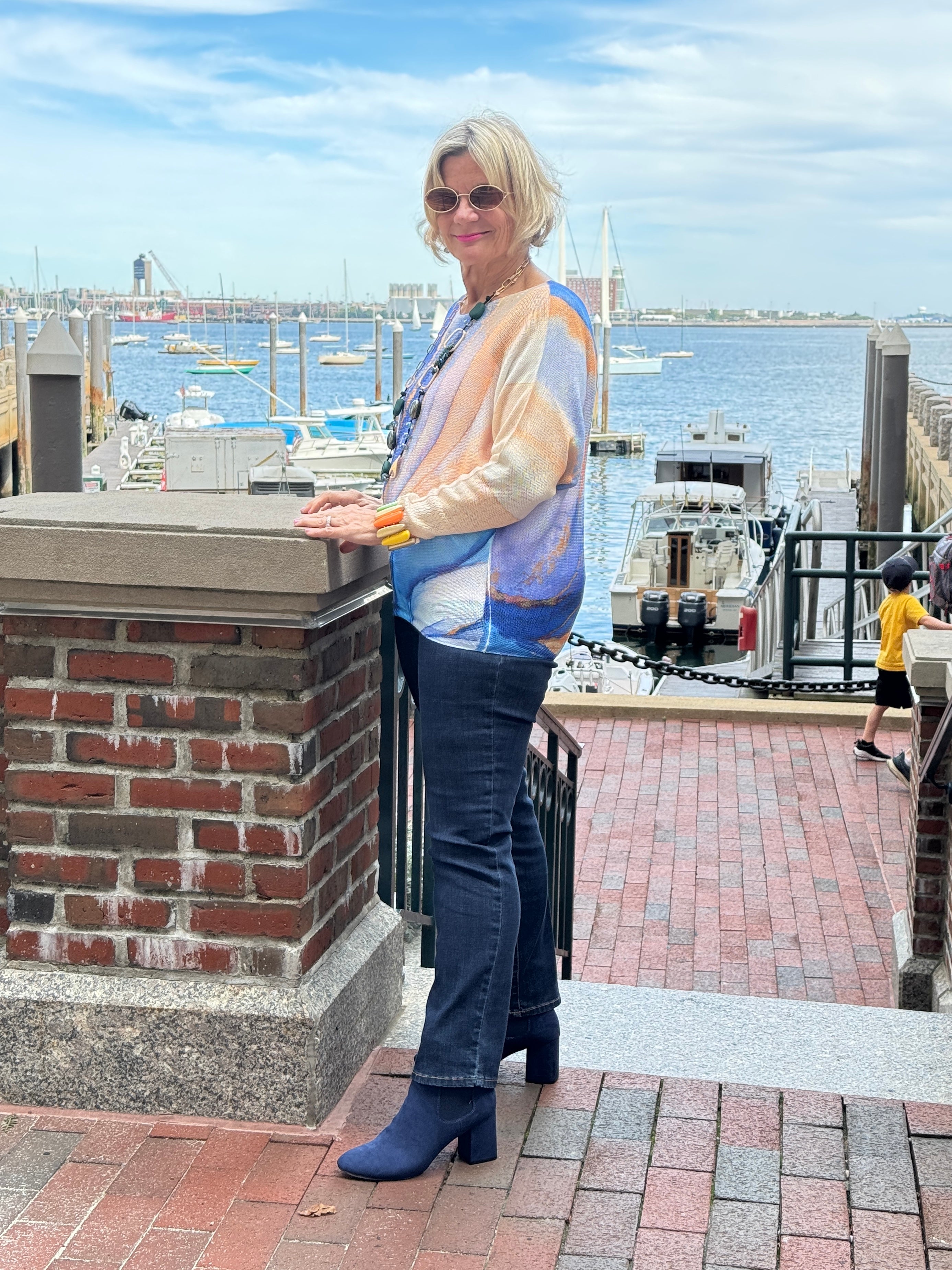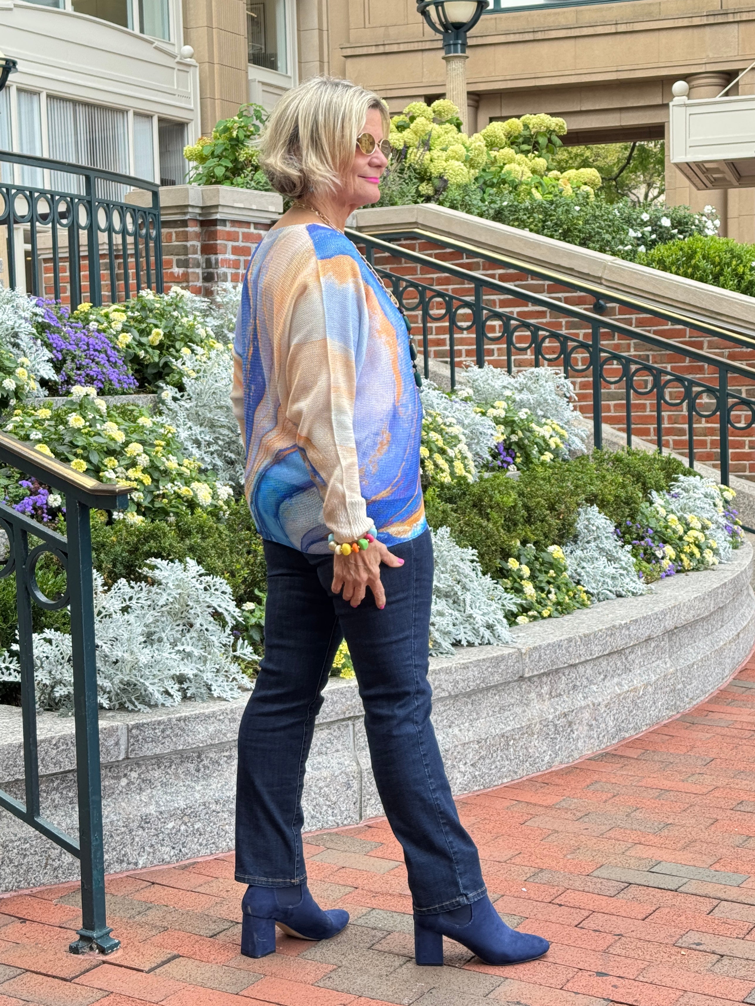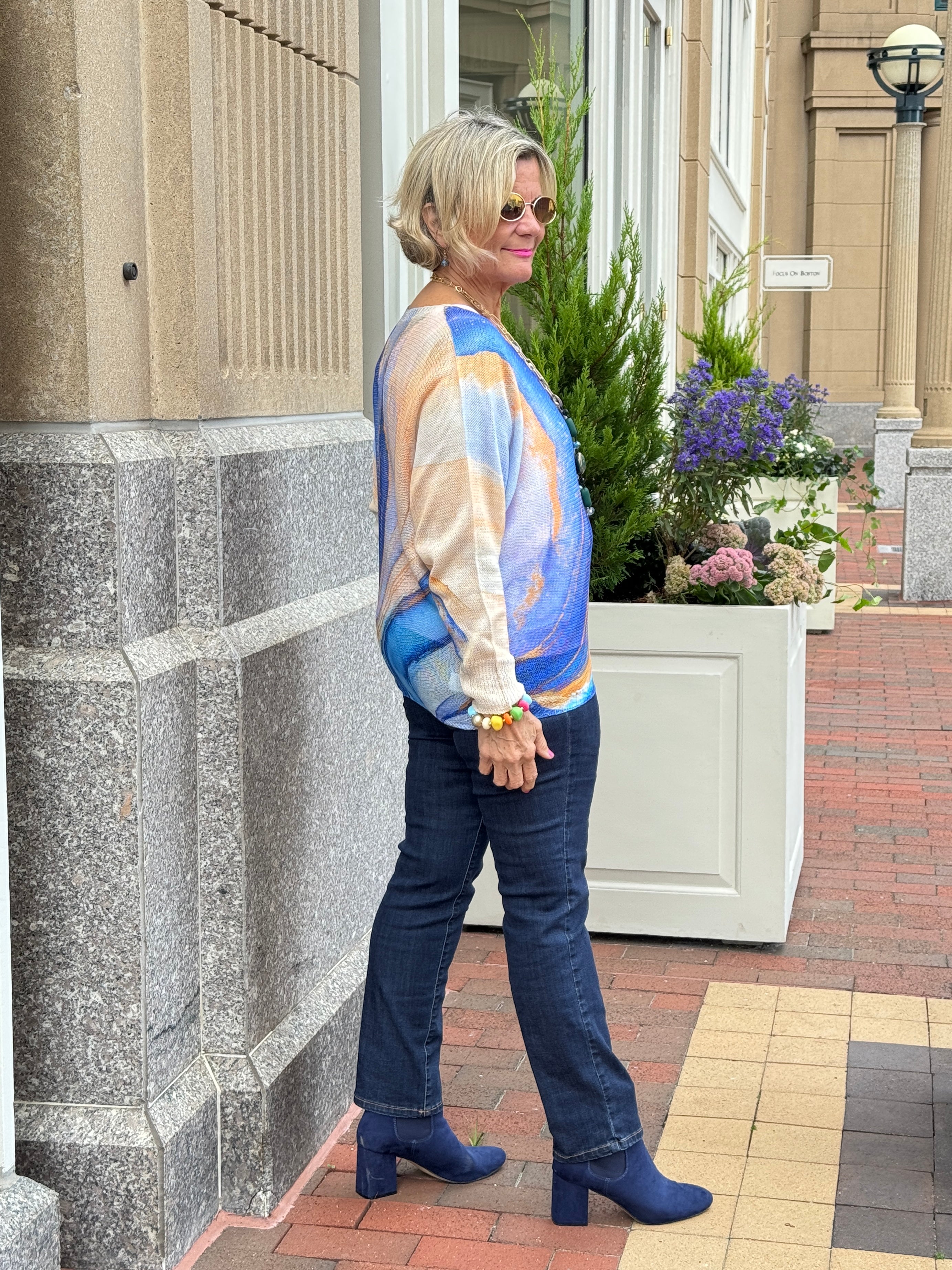 Blue Wavy Round Neck Knit Printed Sweater One Size Made in Italy 62% Polyester 33% Viscose 5% Elastane