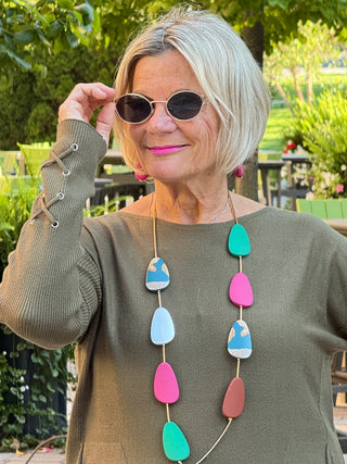 OLIVE Wavy Round Neck Knit Printed Sweater