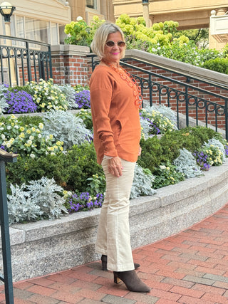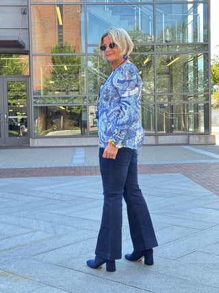 LEOPARD/FLORAL PRINT V-NECK SWEATER