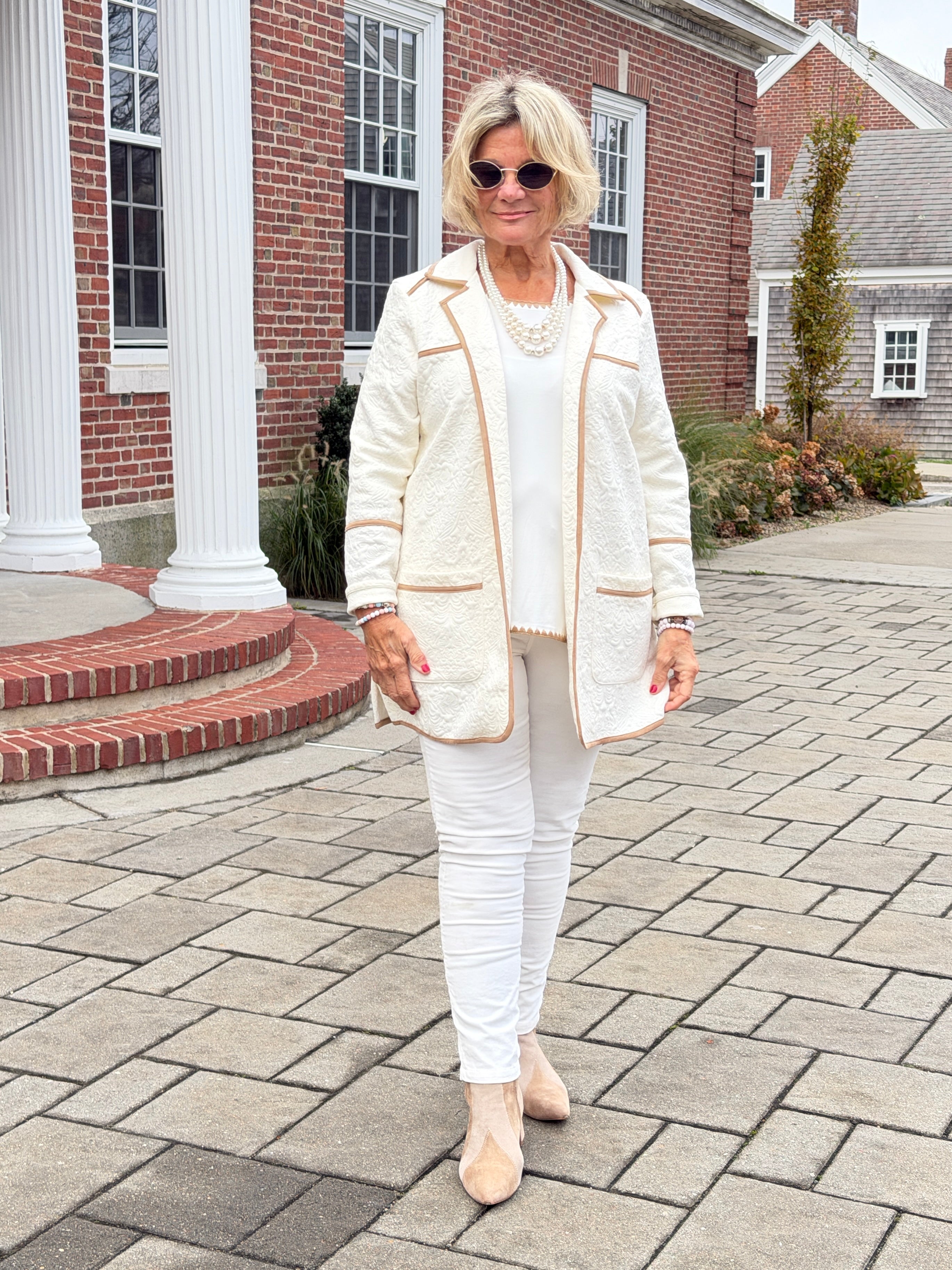 Cozy up in this embroidered shearling jacket, complete with quilted details, a zip front with patch pockets, and warm long sleeves. Stylish texture and toasty comfort in one statement layer.