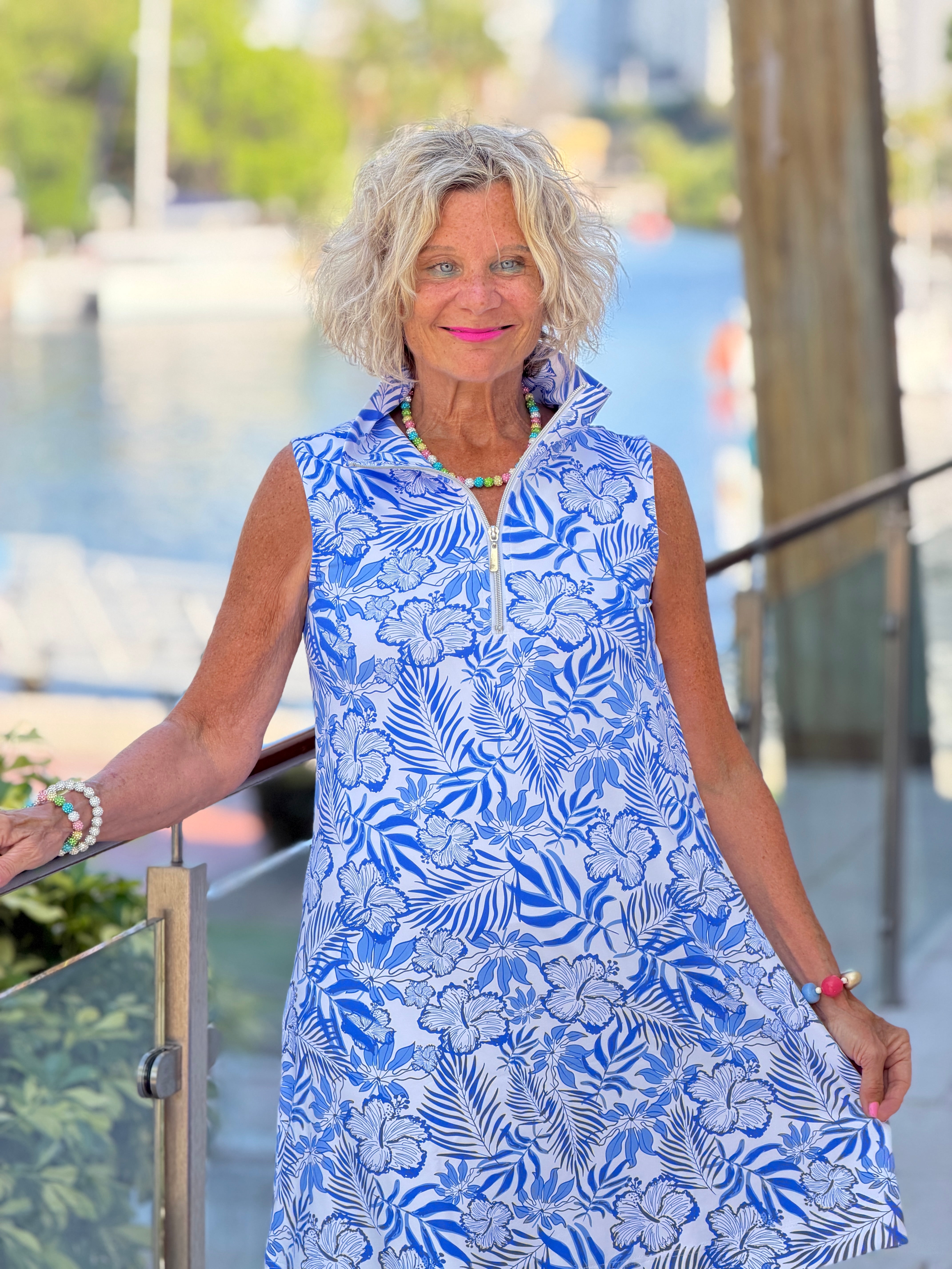 LULU B HIBISCUS COAST HALF ZIPPER DRESS
