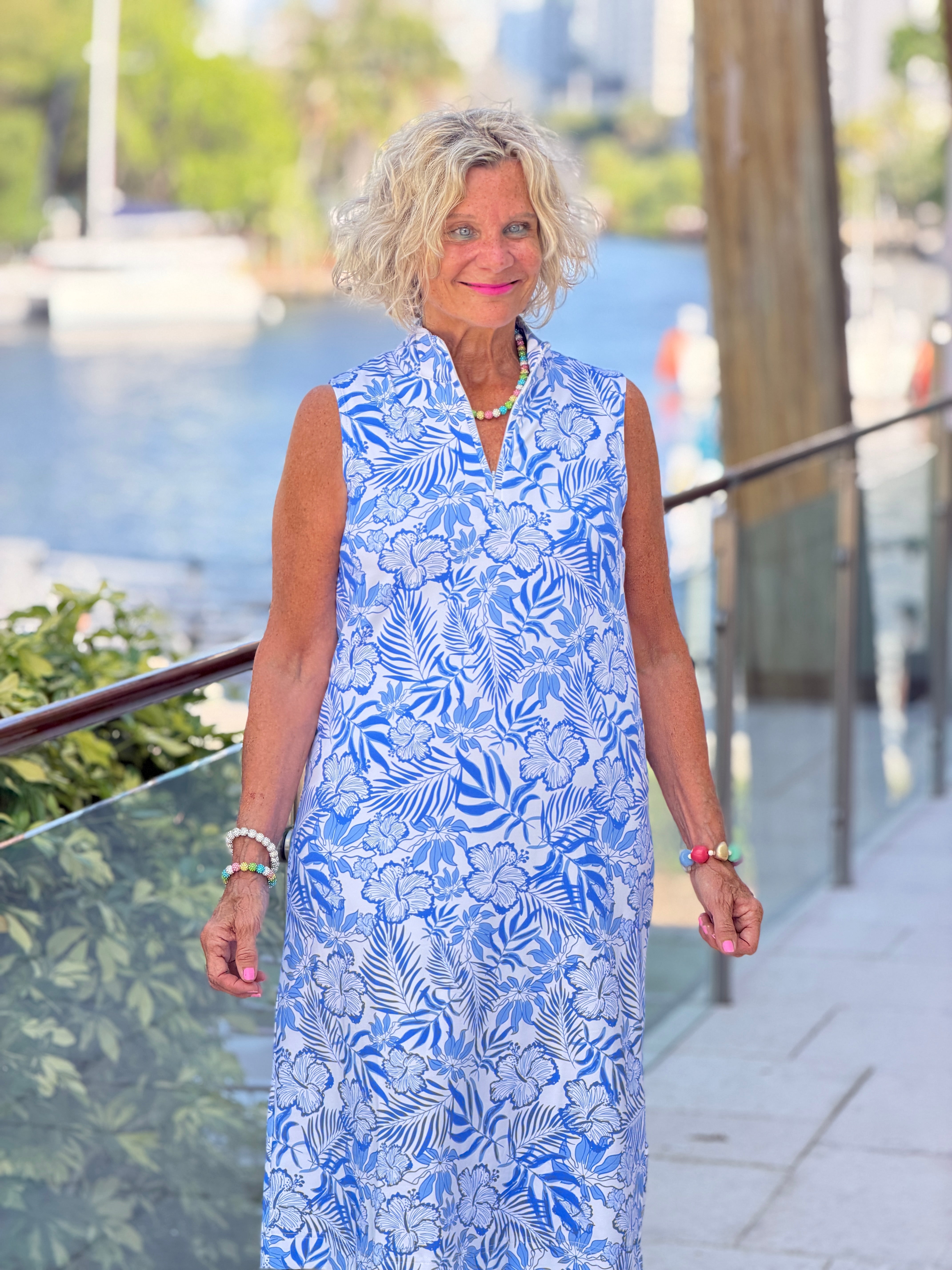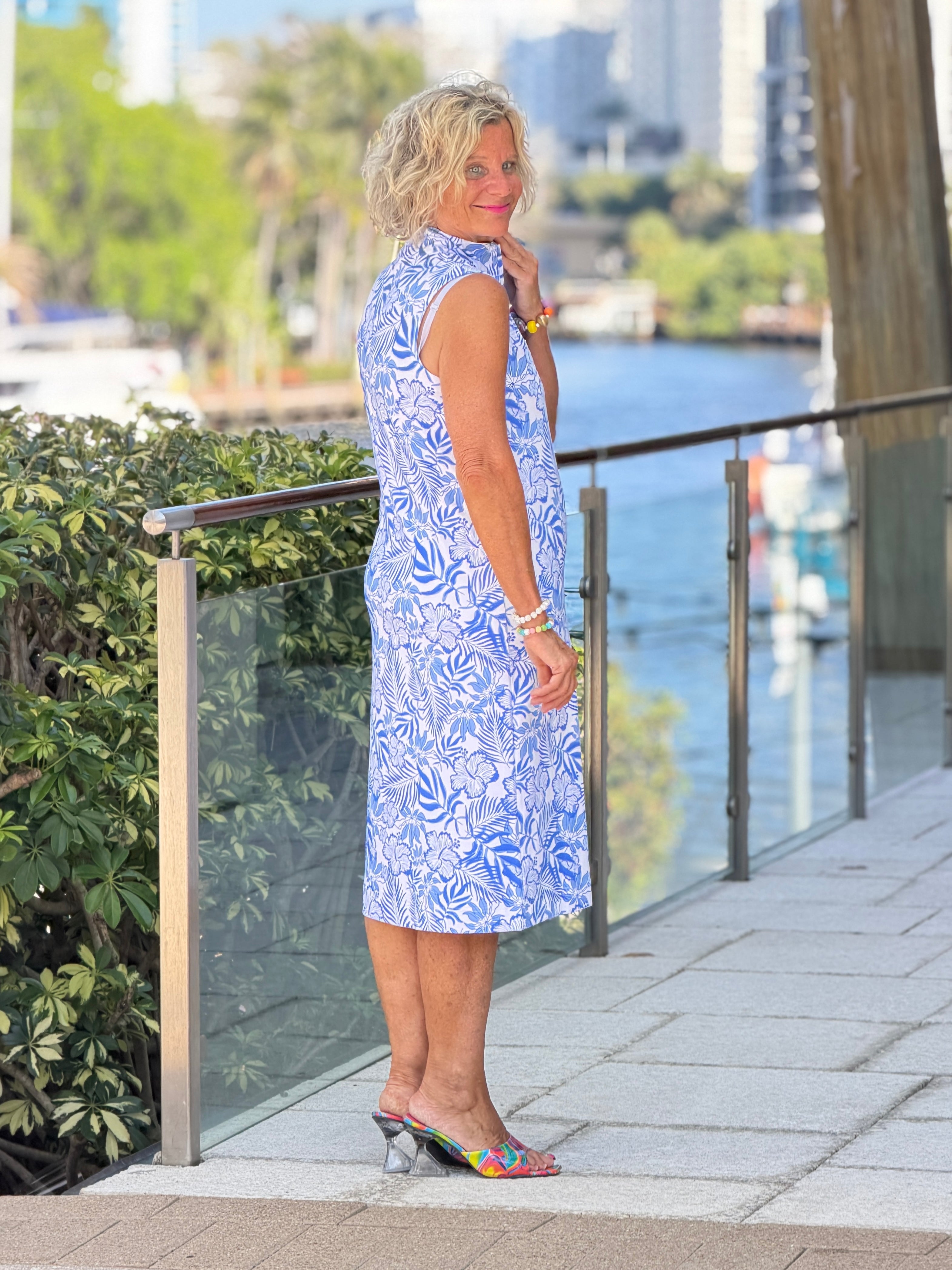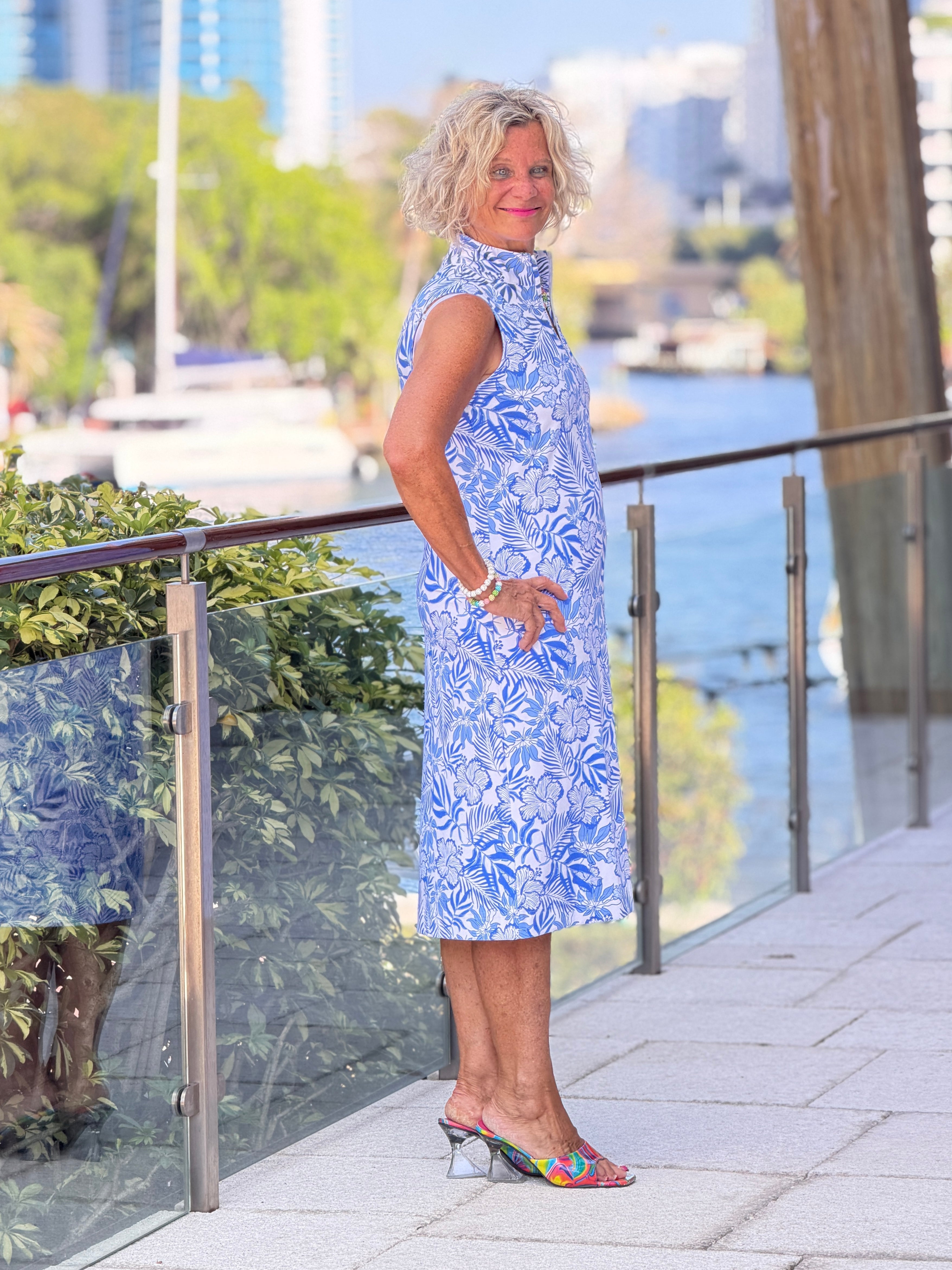 LULU B HIBISCUS COAST HALF ZIPPER MIDDY DRESS