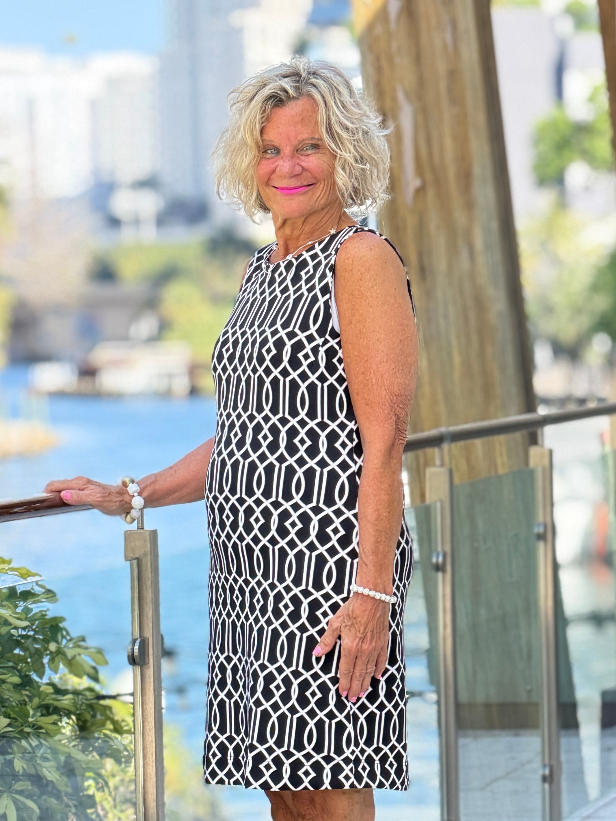 LULU B MIDNIGHT TRELLIS SHIFT DRESS