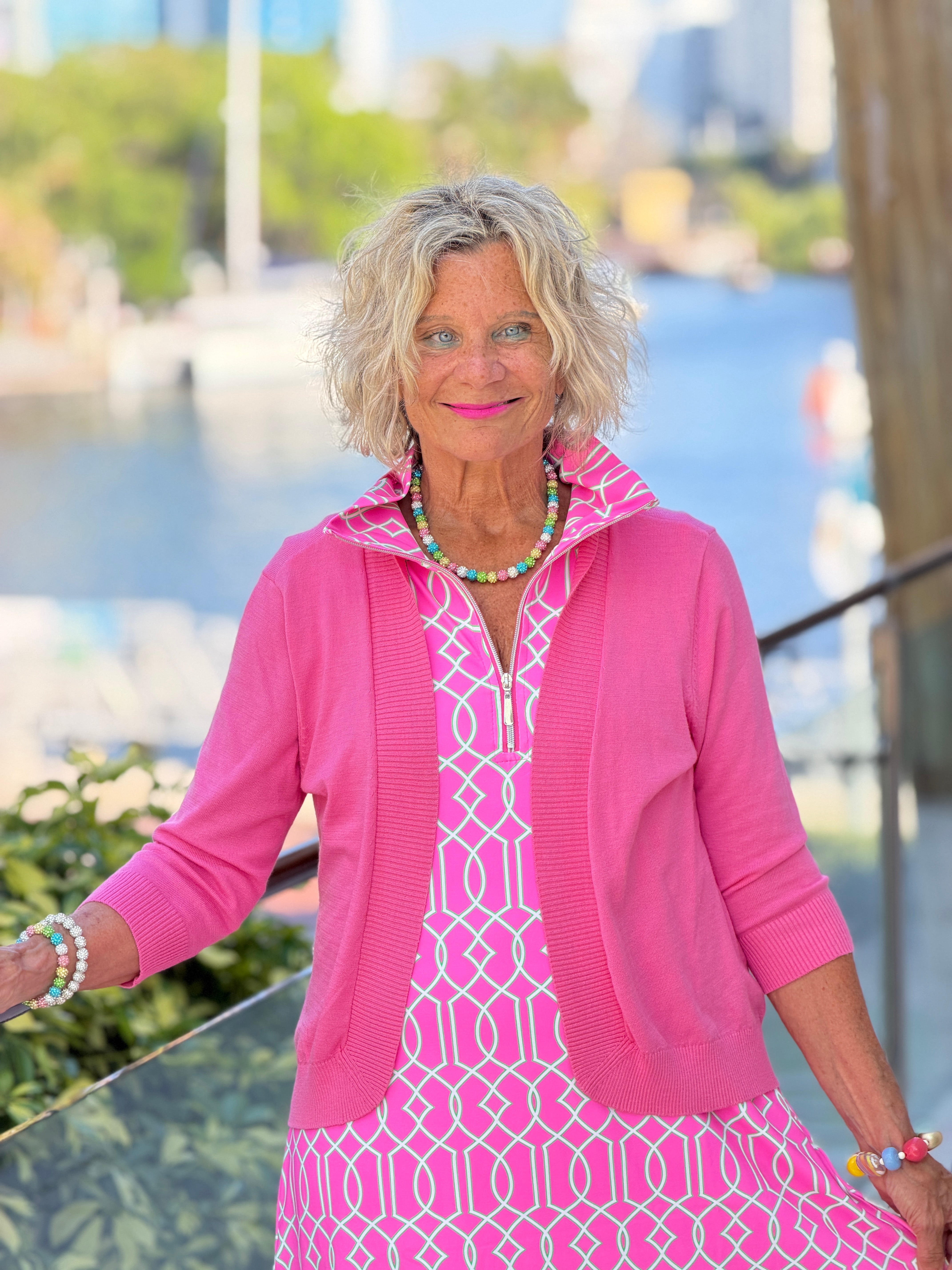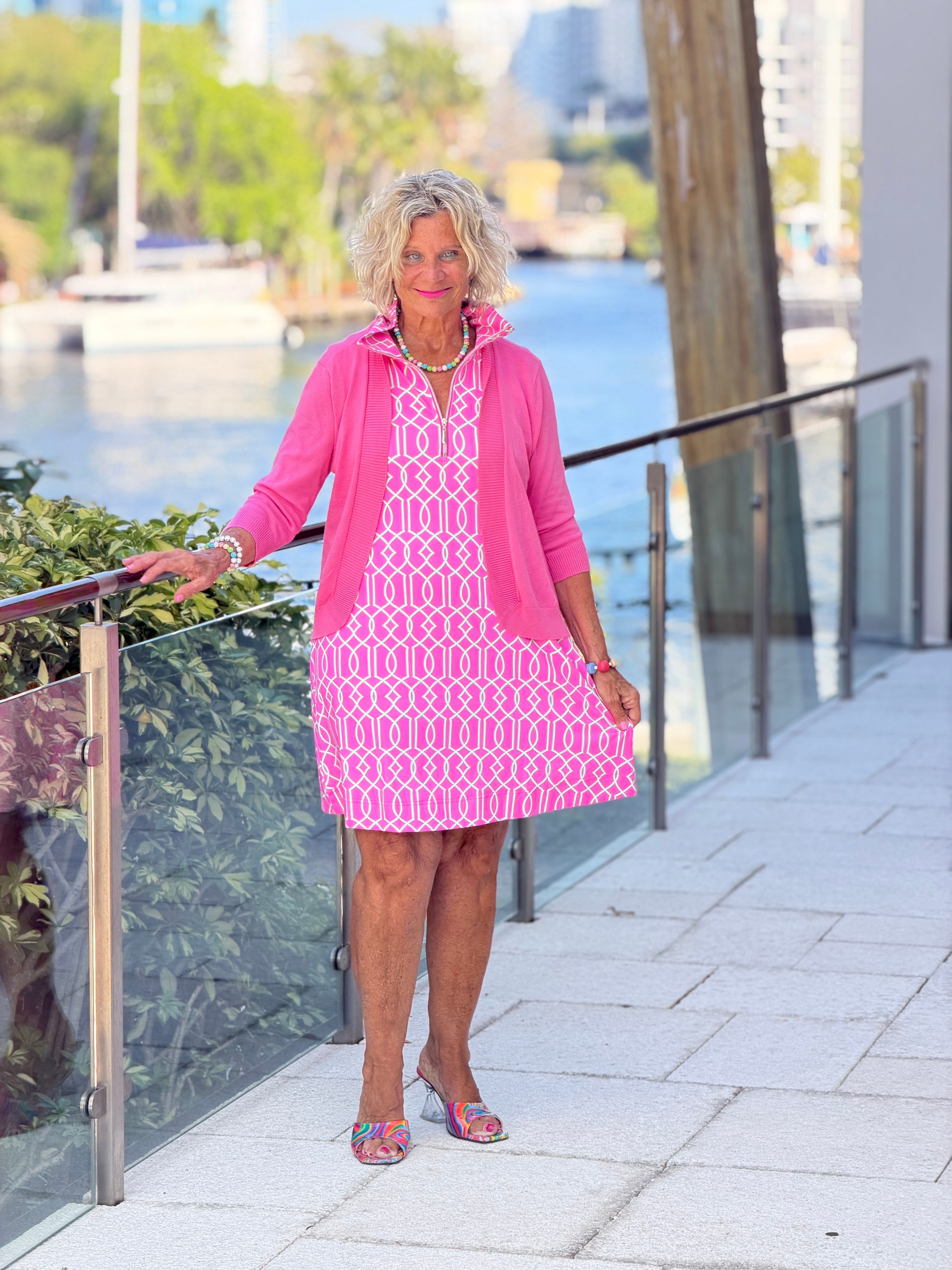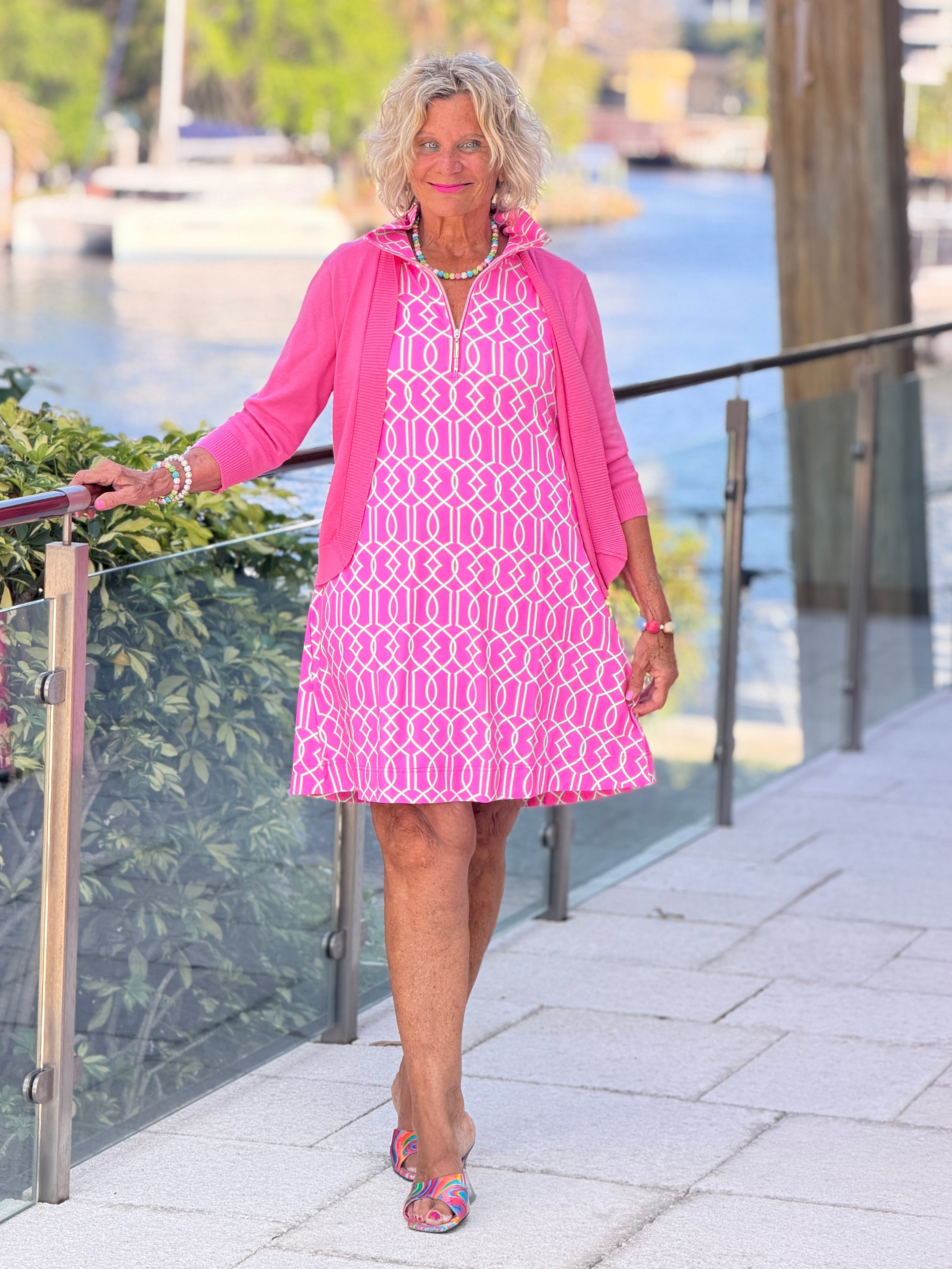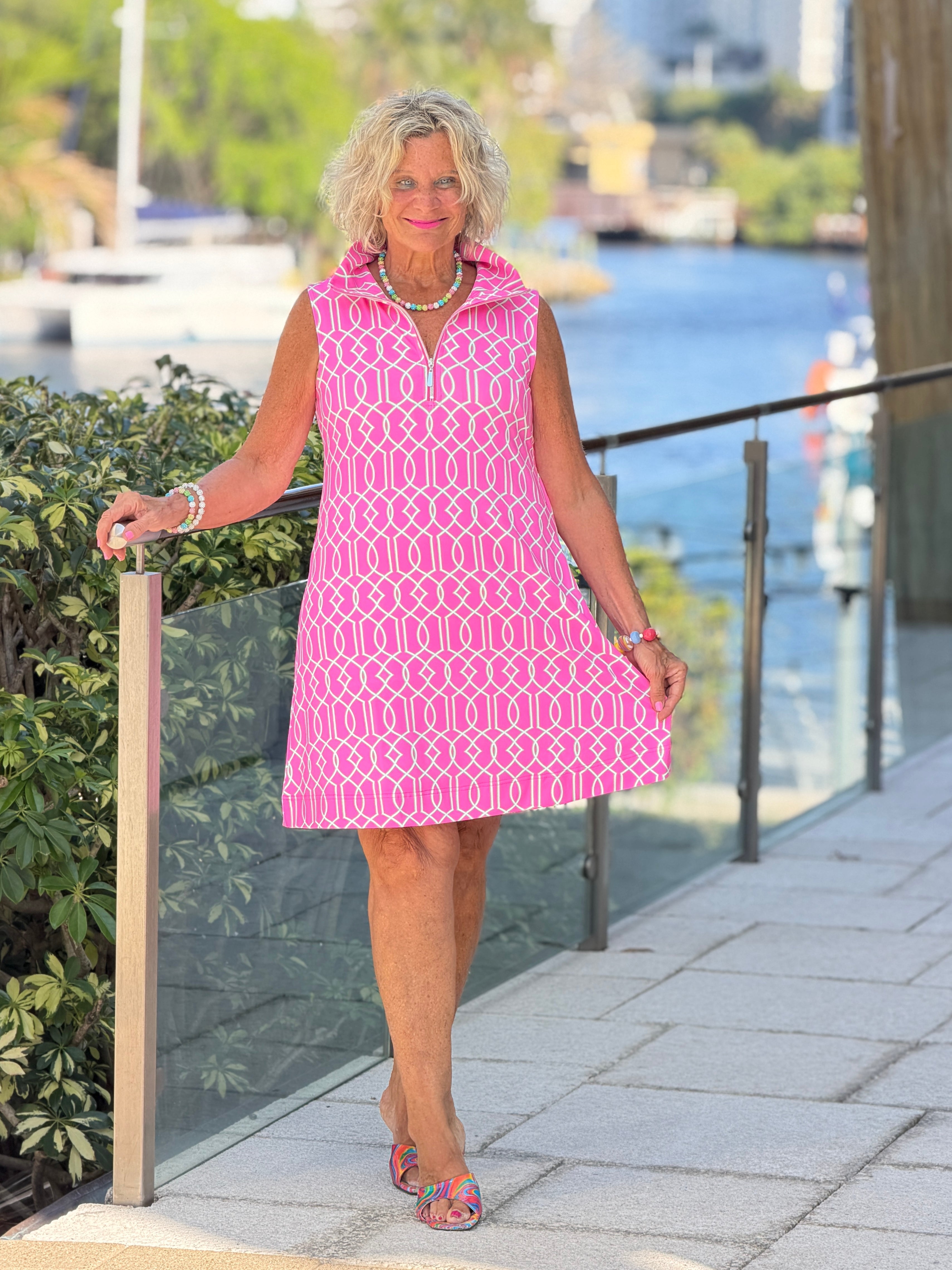 LULU B PALM BEACH LATTICE HALF ZIPPER DRESS