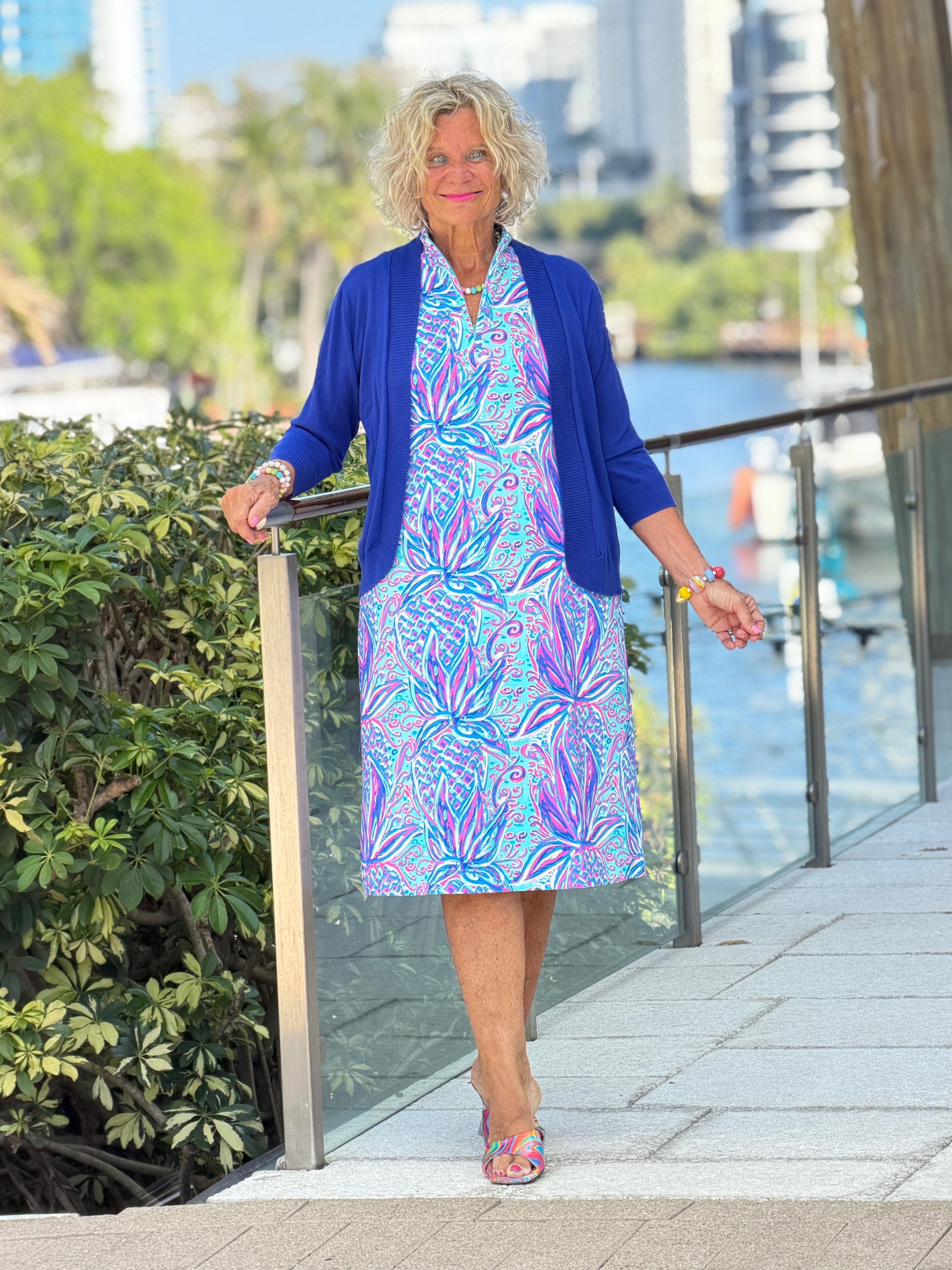 LULU B PALM ROYALE HALF ZIPPER MIDDY DRESS