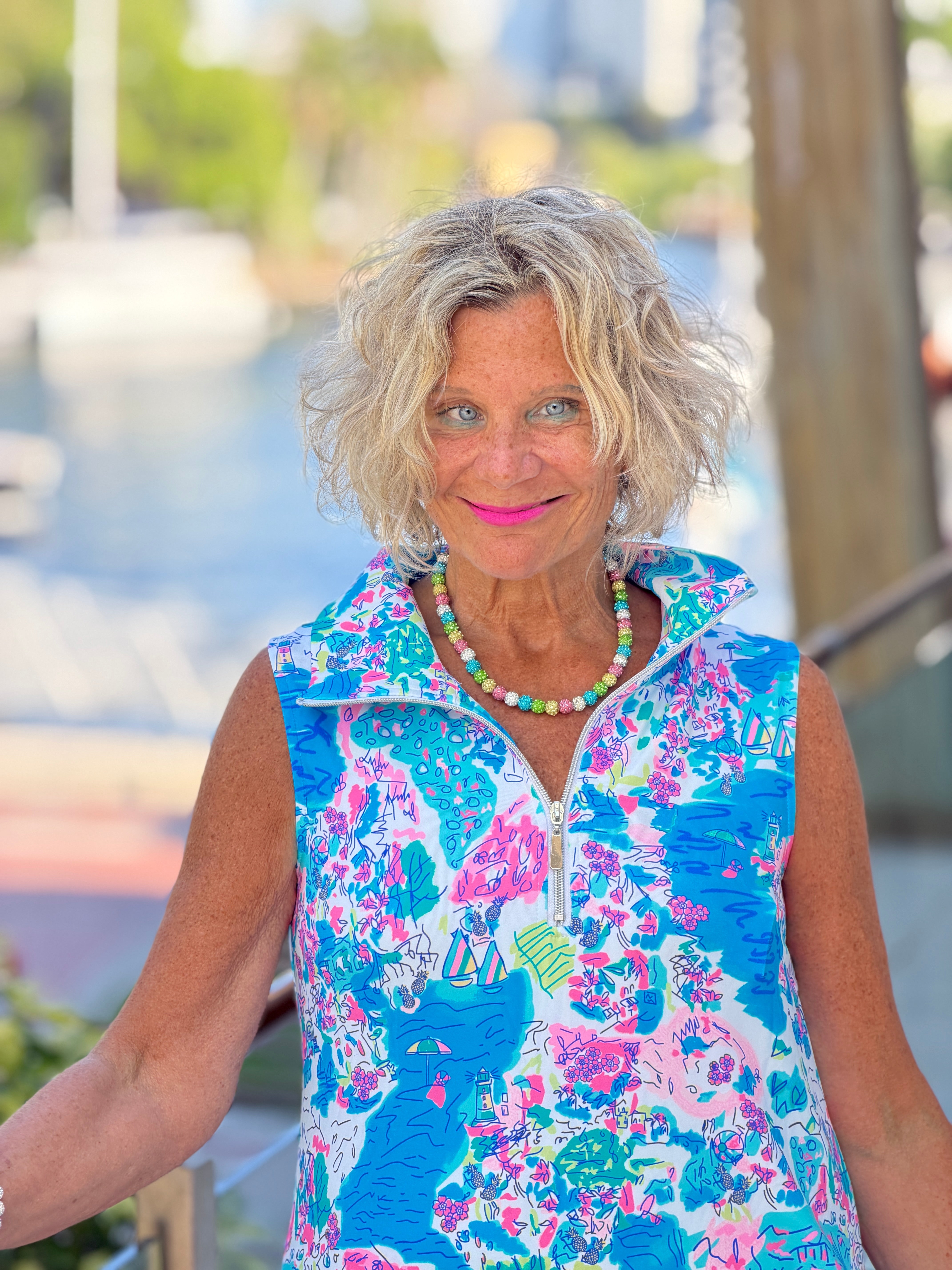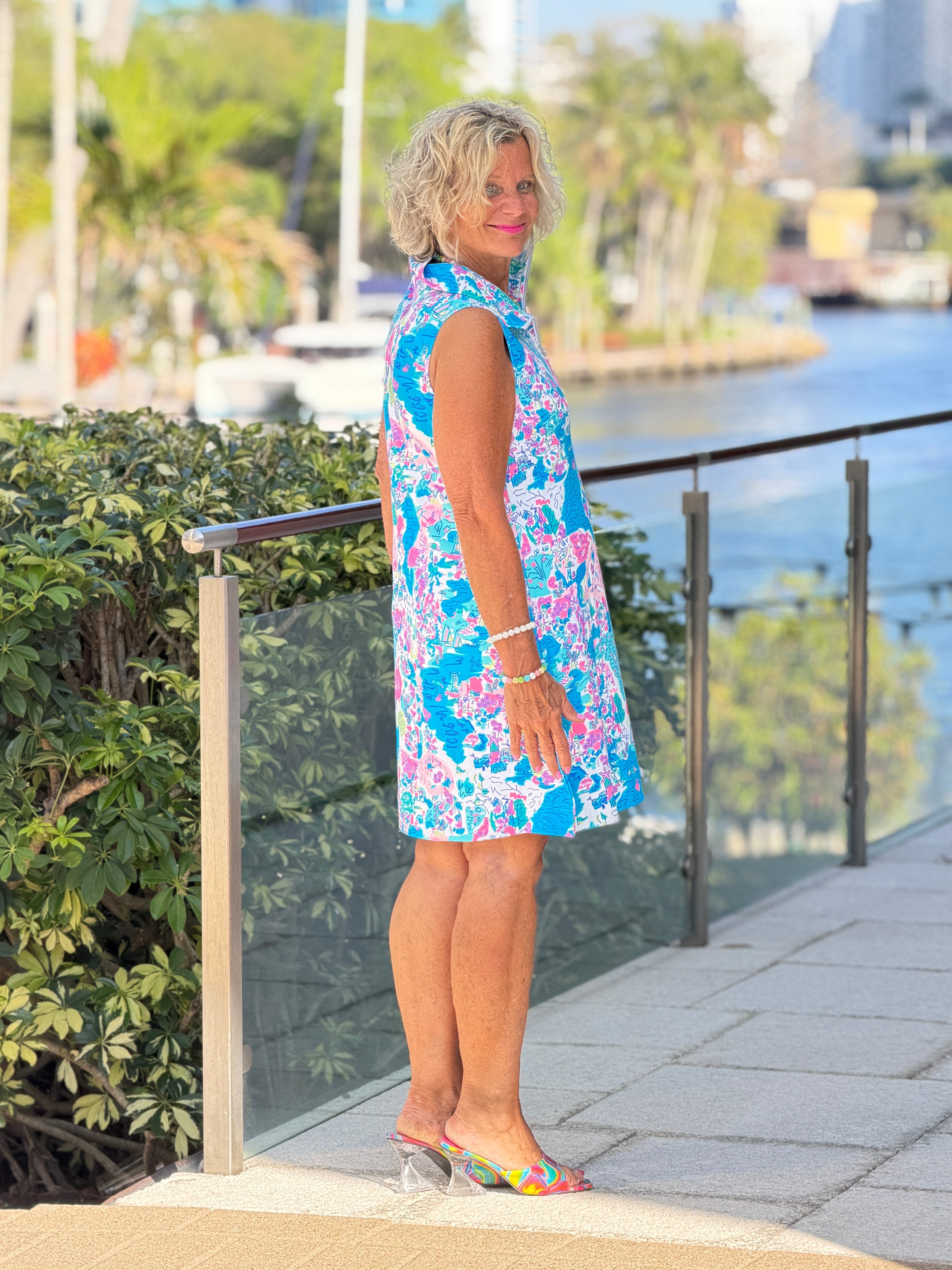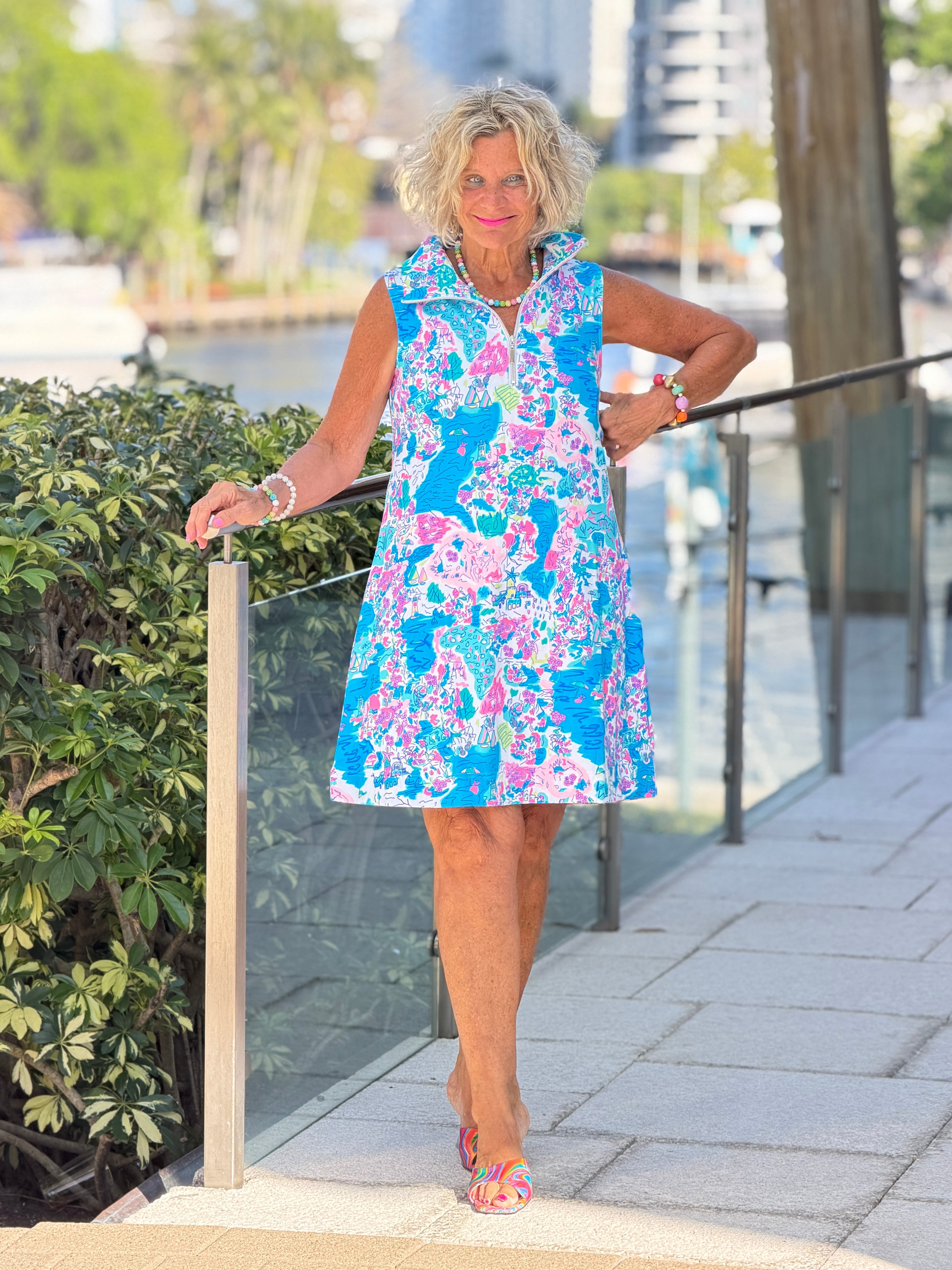 LULU B PALM BEACH SPLASH HALF ZIPPER DRESS