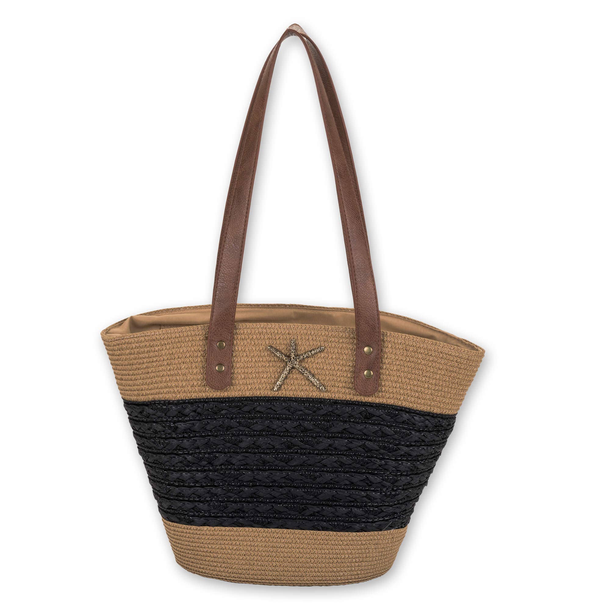 Tan, Paper Straw Shoulder Tote| CE6800 B | Spot Clean Only | Made in China | Size: 17.5"x 5.25"x 11"
