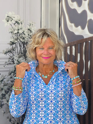 LULU B COASTAL BLOOM 3/4 SLEEVE V-NECK COLLAR SHIRT