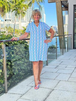 LULU B COASTAL BLOOM SHORT SLEEVE DRESS