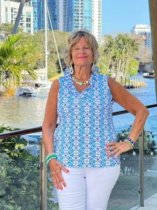 LULU B COASTAL BLOOM SLEEVELESS RUFFLE TOP