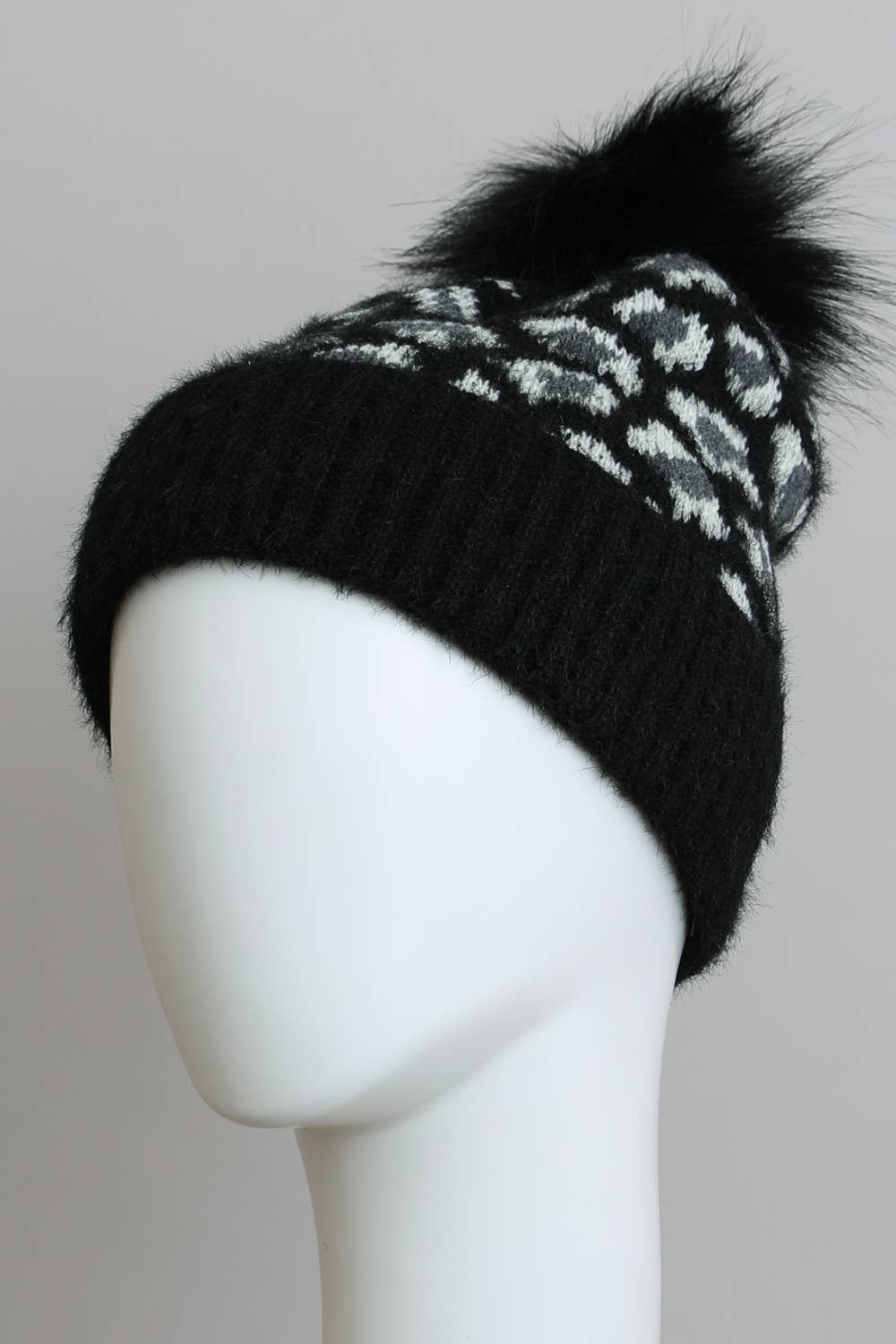 🐆 Leopard Knit Beanie with Pom Pom - 5 Colors