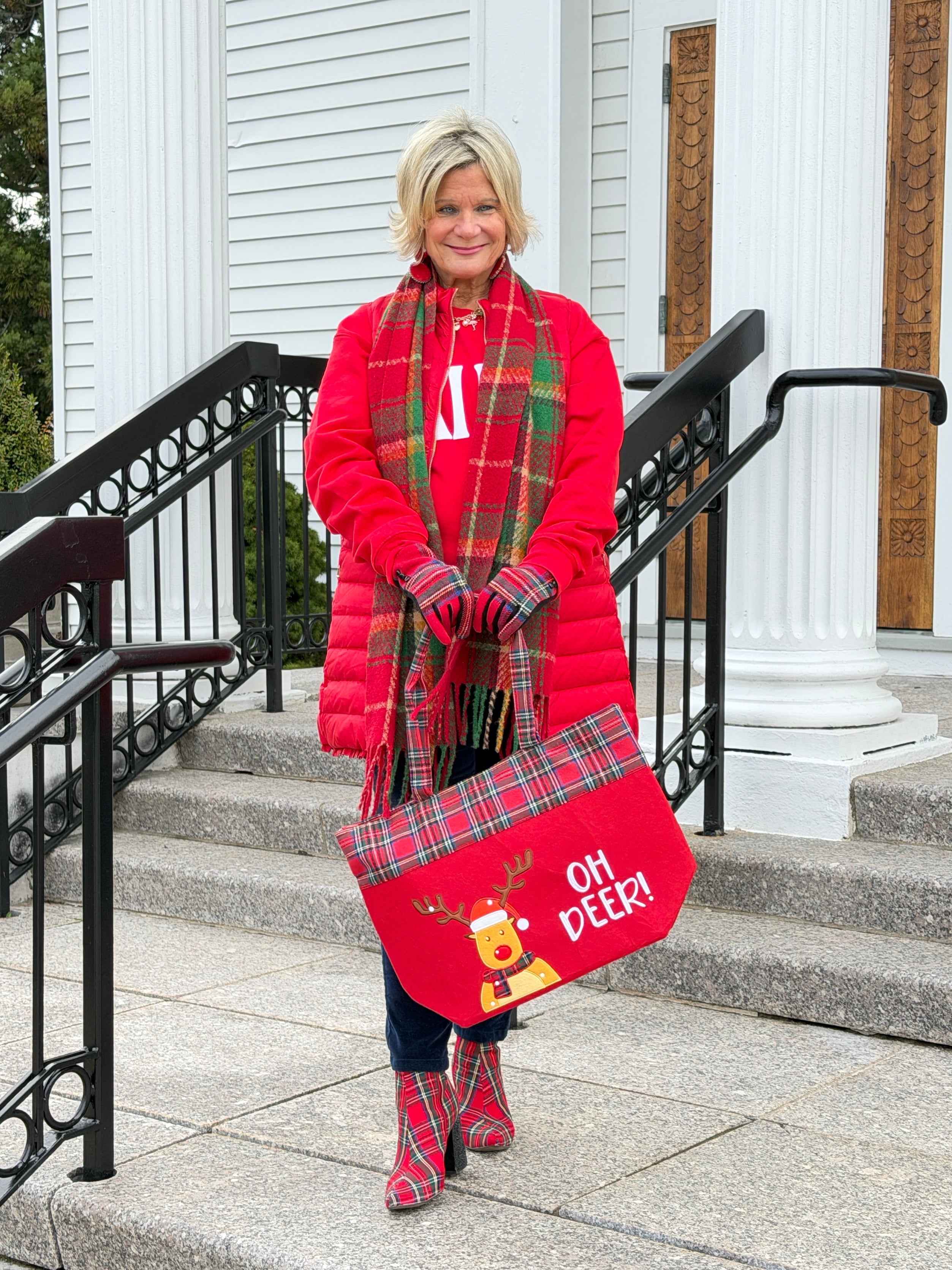 * Introducing the "Oh Deer Letter Reindeer Christmas Tote Bag" – a festive and stylish accessory that perfectly captures the spirit of the season. This eye-catching red tote bag, features a charming Reindeer design adorned with playful lettering, is not just a fashion statement, it's a delightful way to spread holiday cheer wherever you go. Elevate your Christmas shopping experience with this charming piece from H&D Accessories.