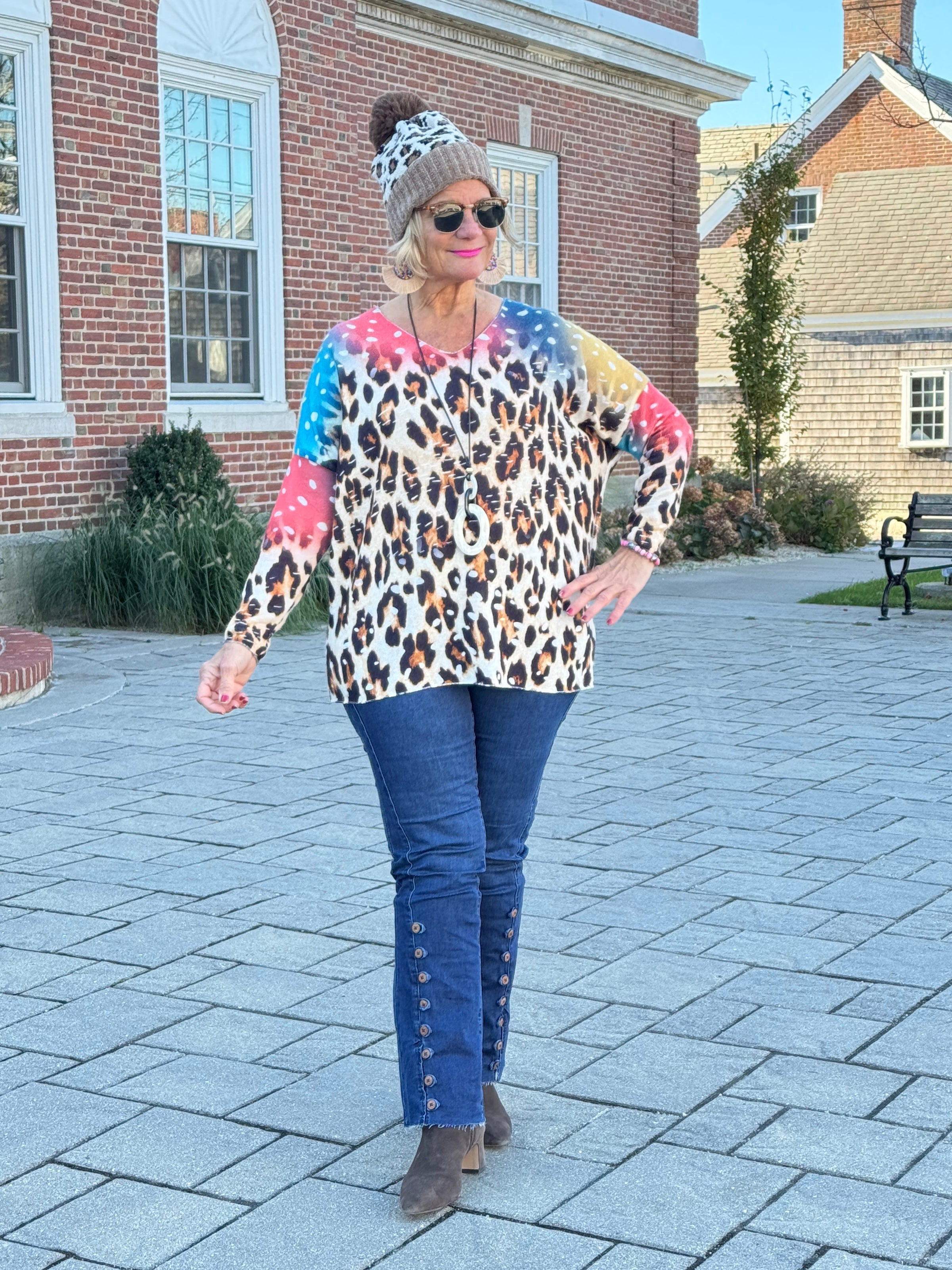 Italian Cozy Leopard Sweater One Size LOOWIE One Size fits S TO L Fabric: 62% Polyester 33% Viscose 5% Elastane Made in Italy